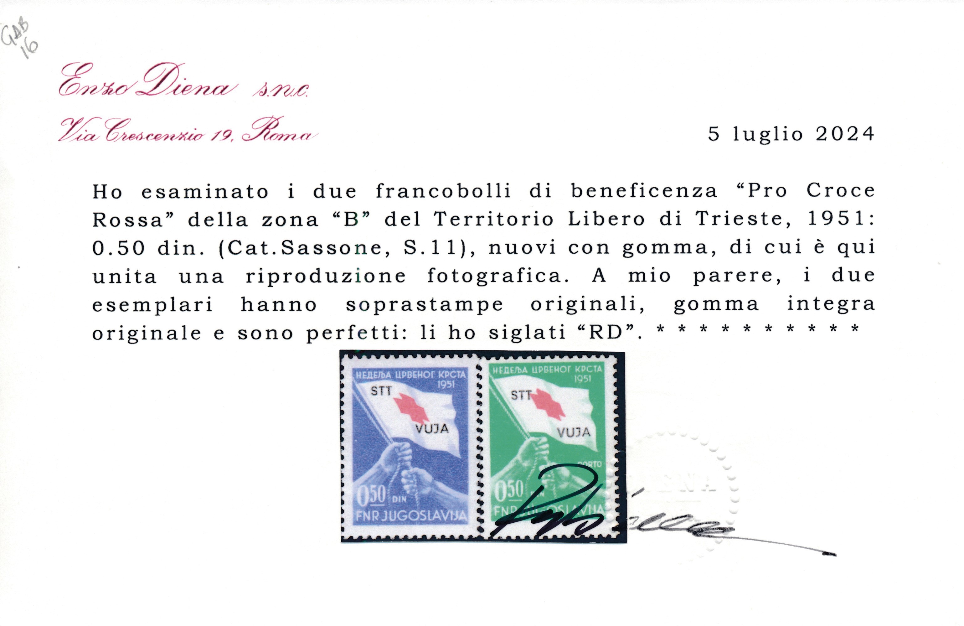 1951 - Territorio libero di Trieste – Zona B – “Pro Croce Rossa”, serie completa (Sass. S.11).
