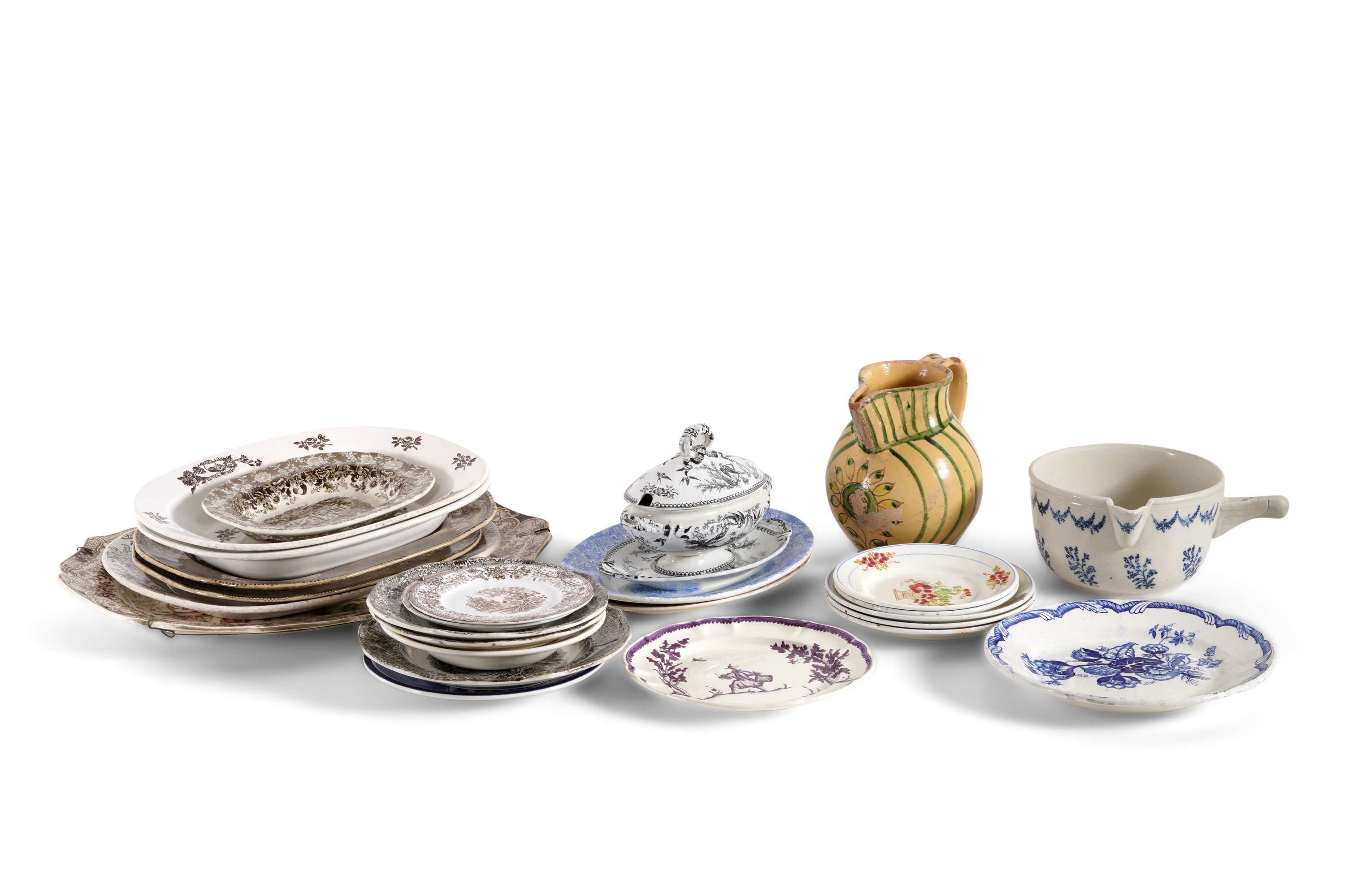 Collezione di vassoi, piatti e pezzi per la tavola in ceramica, manifatture differenti