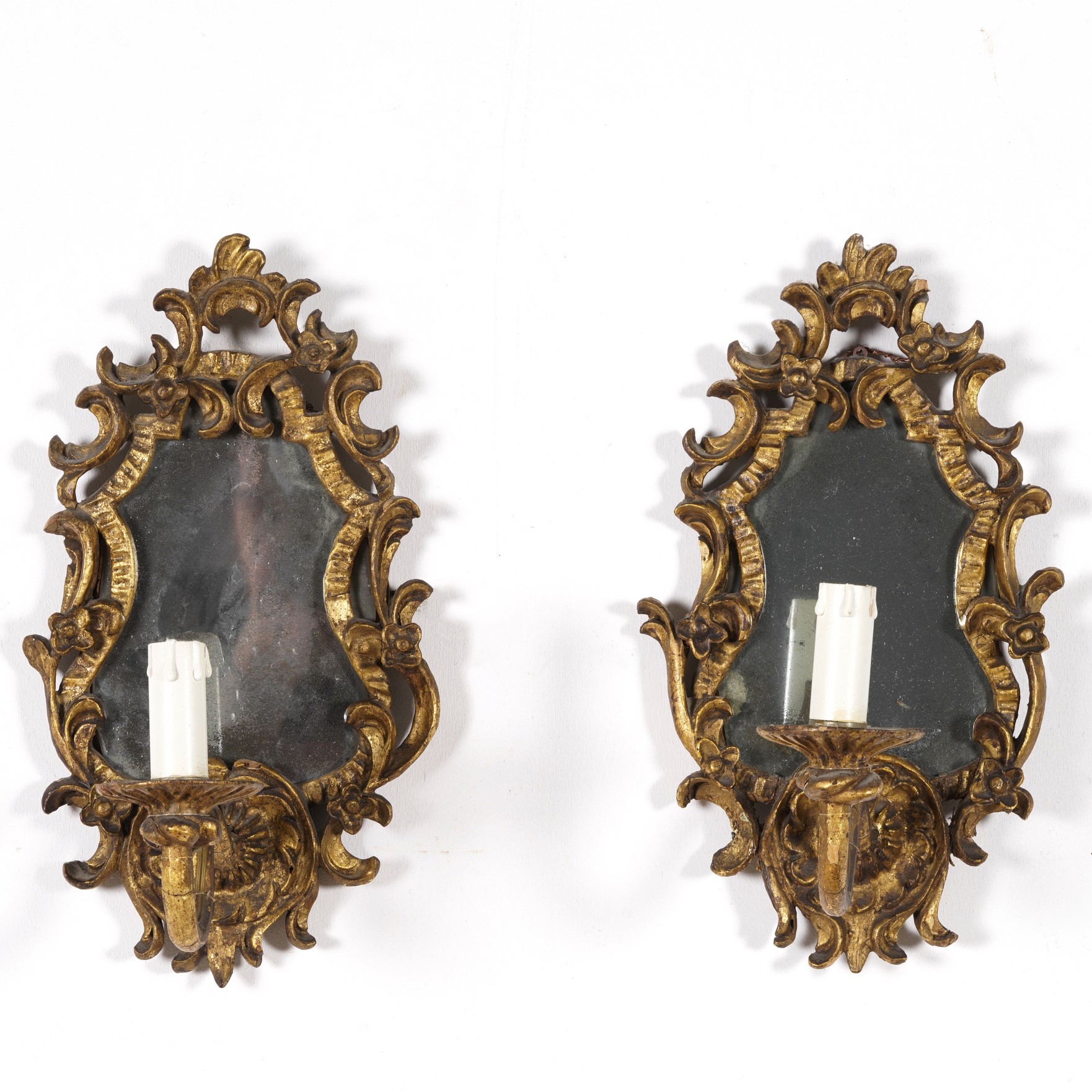 Coppia di specchiere in legno intagliato e dorato. XIX secolo
