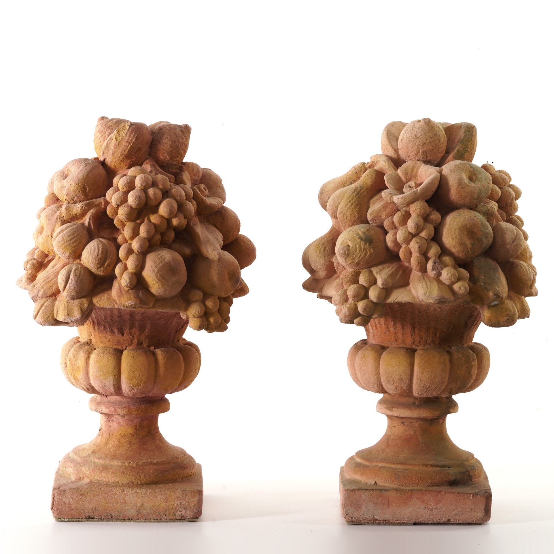 Coppia di vasi con frutta in terracotta. Toscana, XX secolo