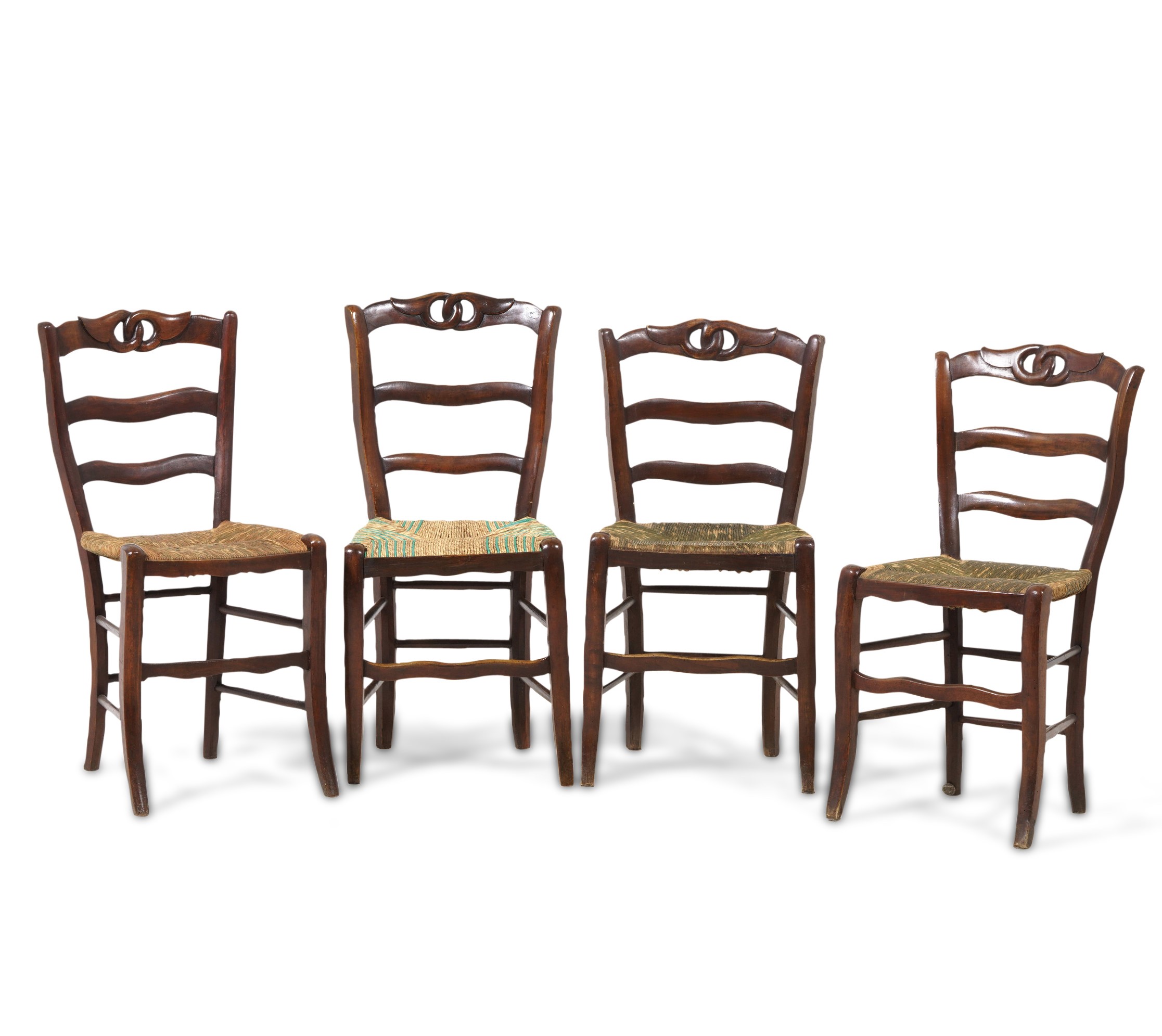 Schienale intagliato a nodo d'amore, seduta impagliata
