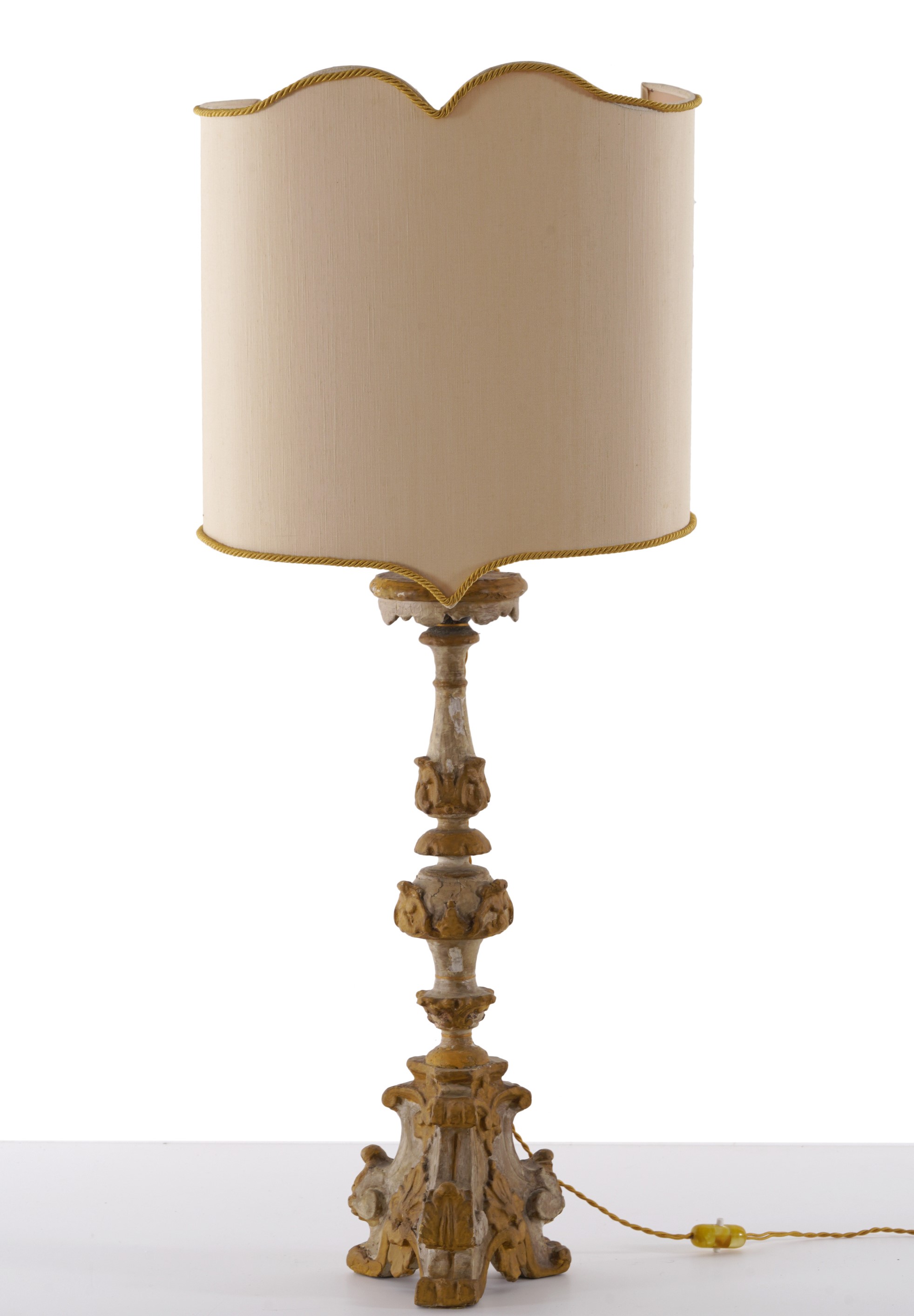 Torciera in legno intagliato, laccato e dorato. XVIII secolo
