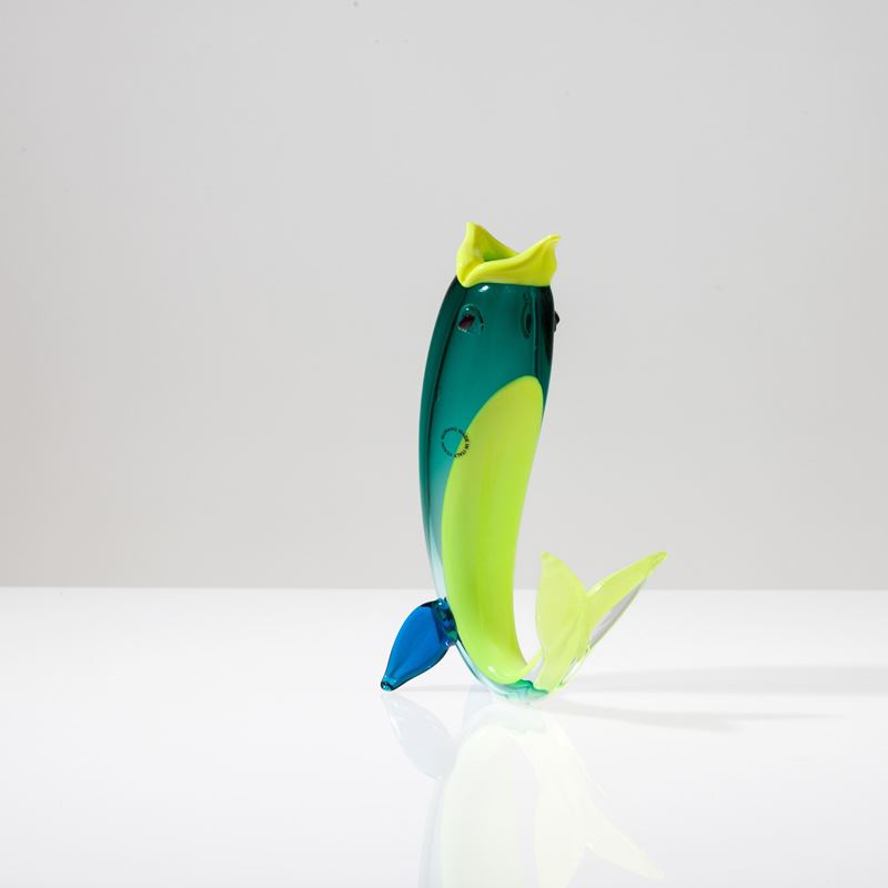 Soprammobile in forma di pesce in vetro soffiato multicolore.
