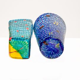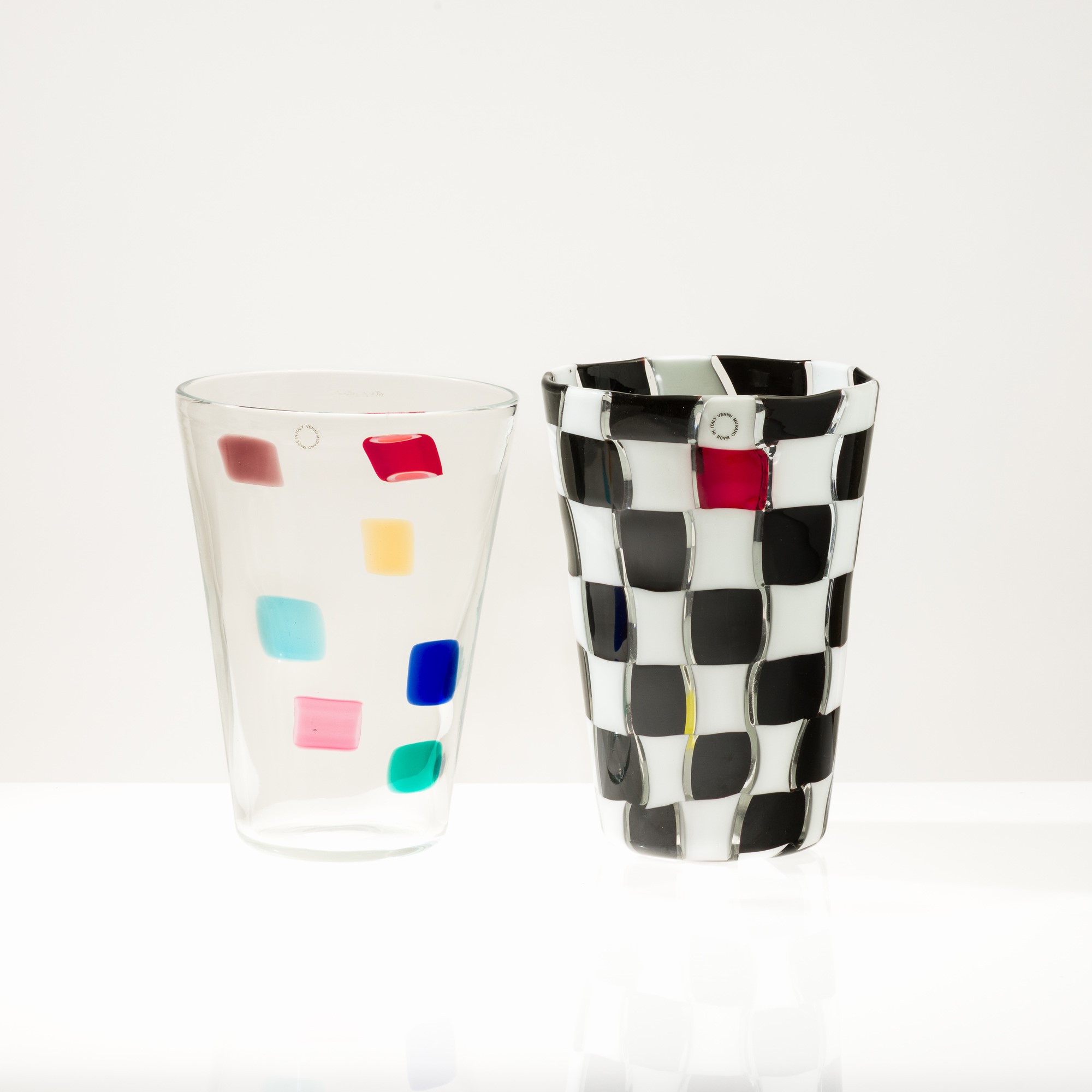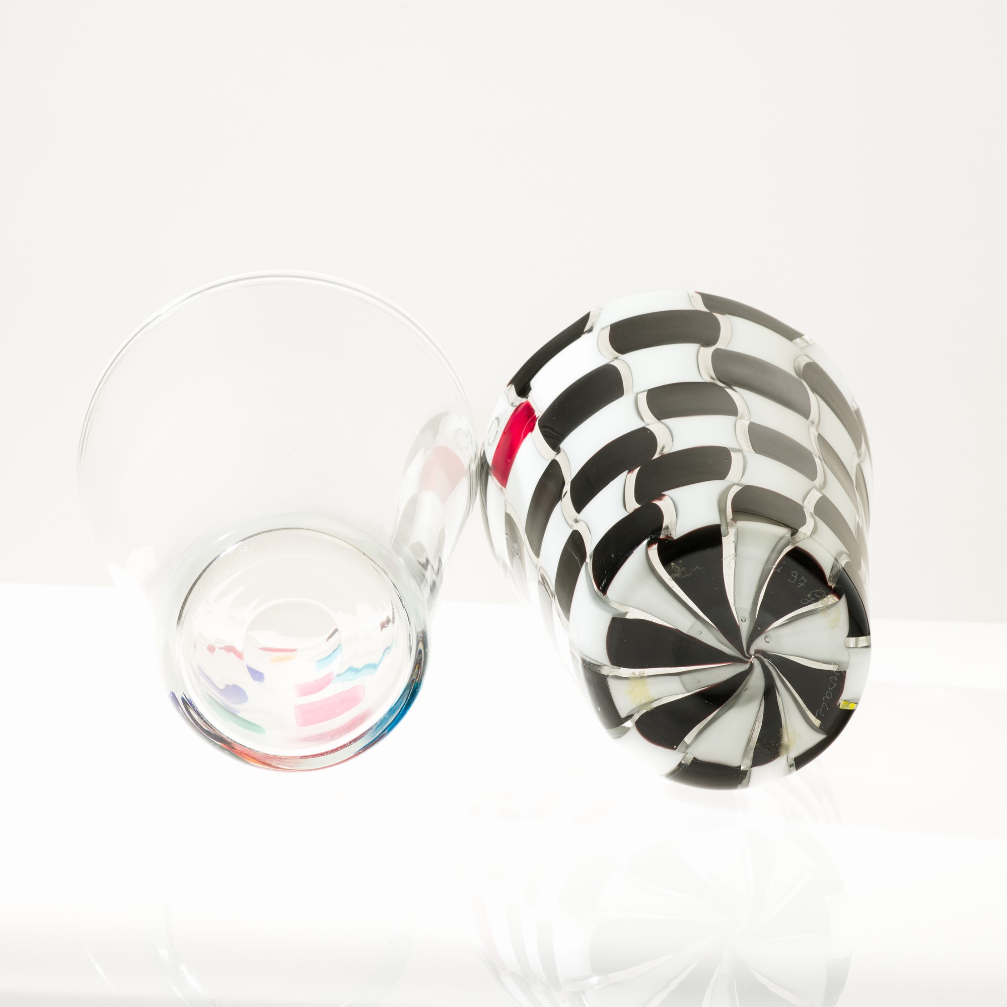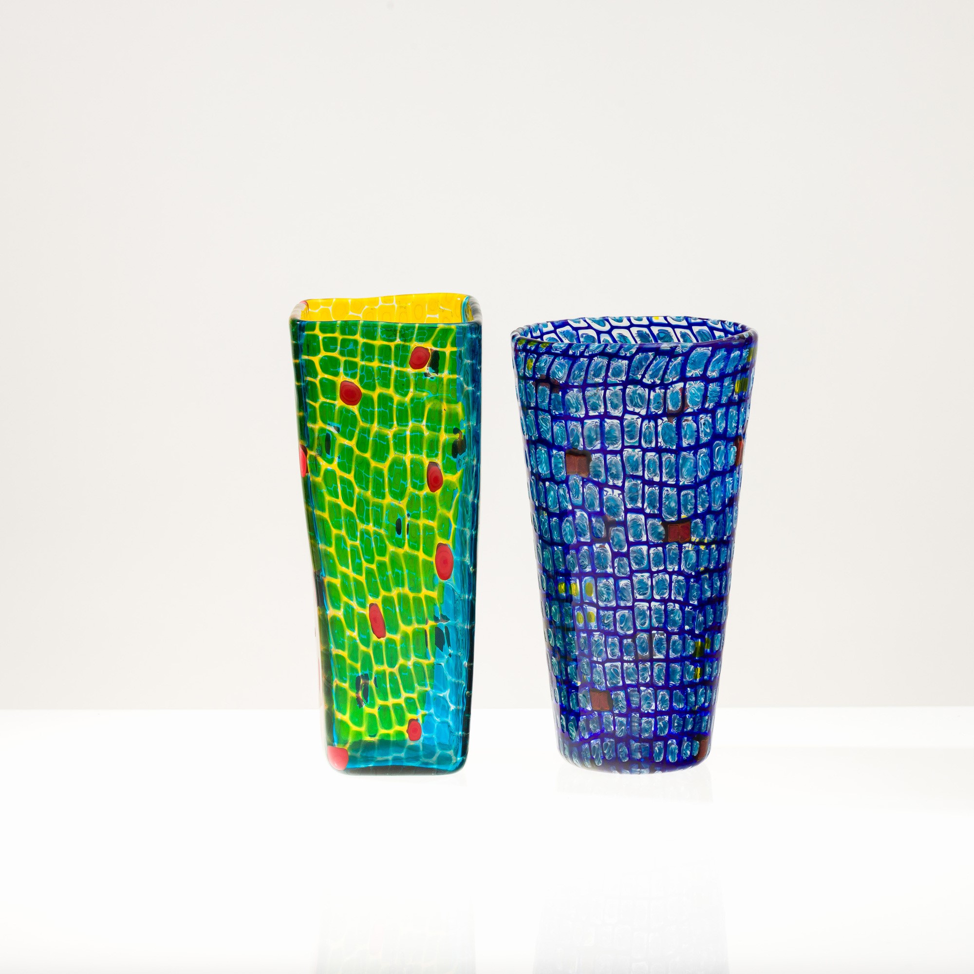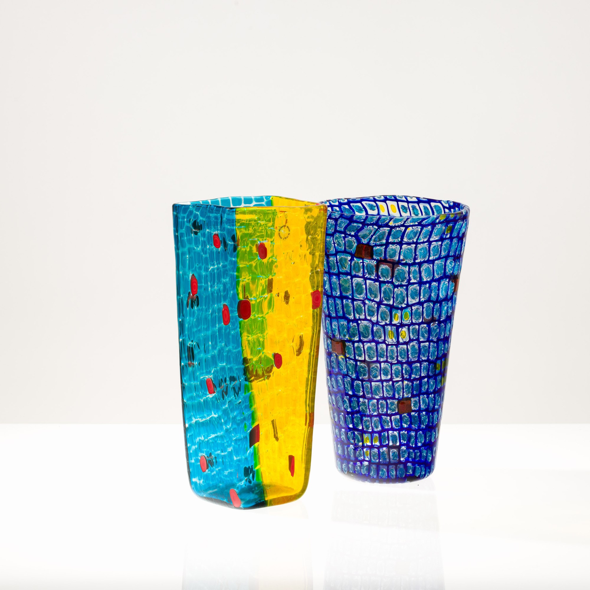 Collezione completa di sette vasi in vetro soffiato policromo: Smoking, Asimmetrico, Gessato, Post Moderno, V.V.V, Frisage, Grenadine.