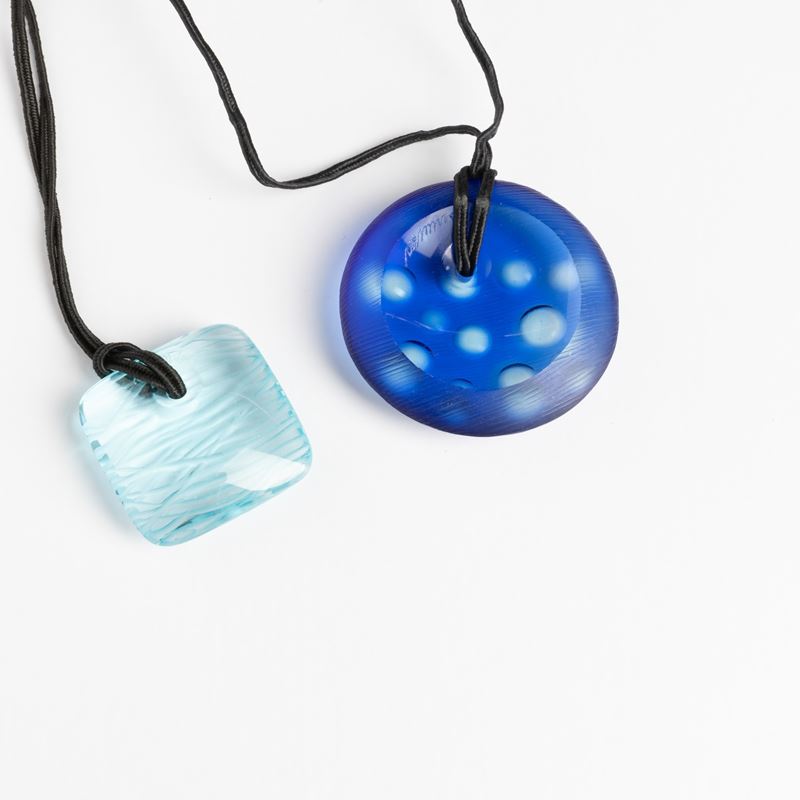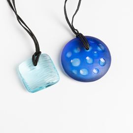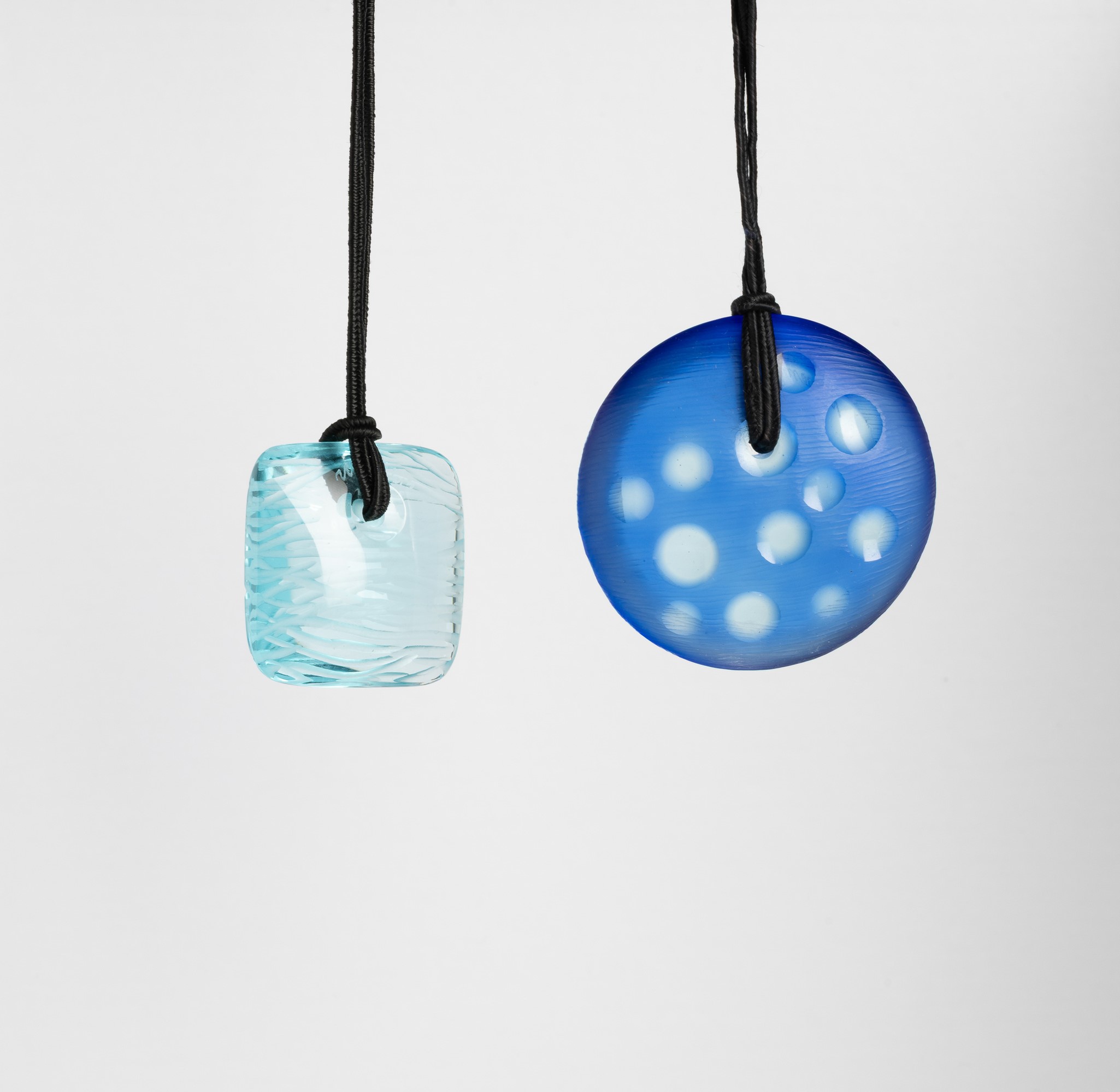 Lotto di due Talismani in vetro soffiato policromo con superficie incisa.