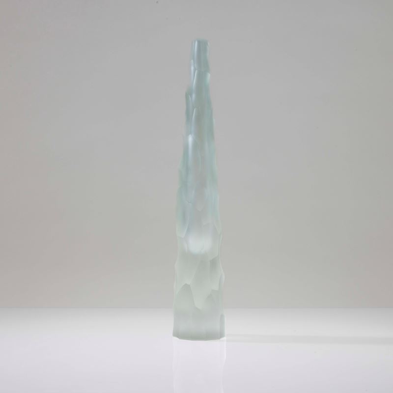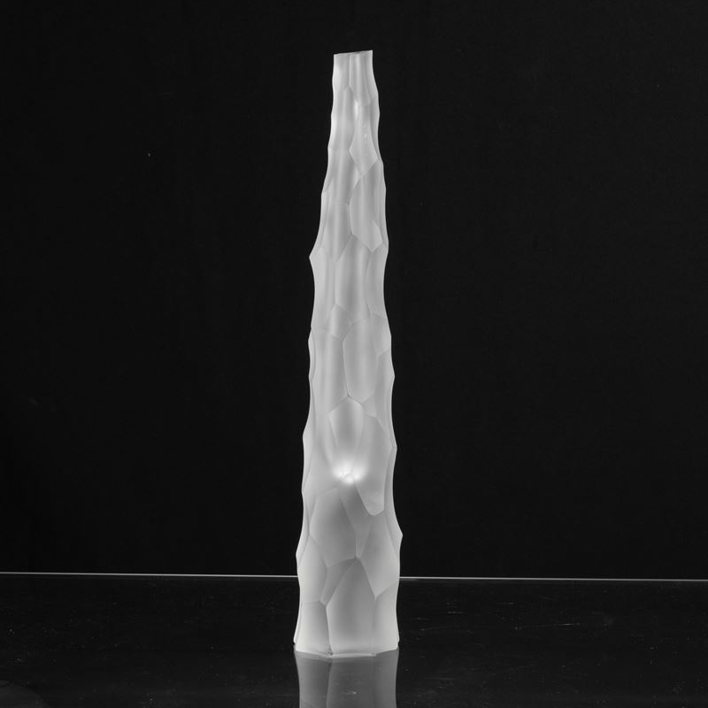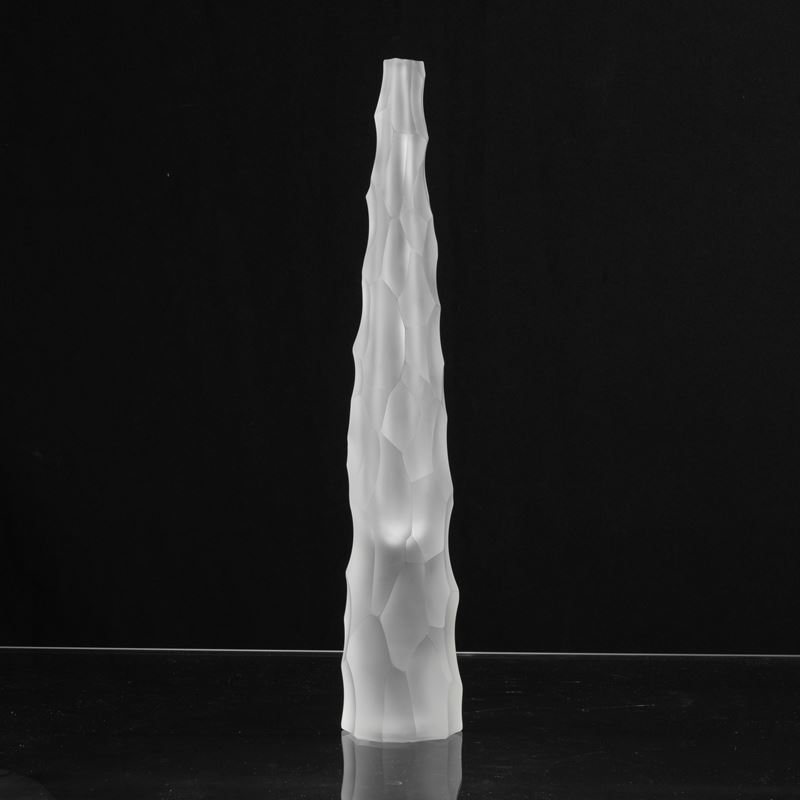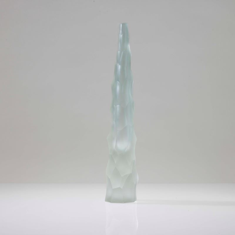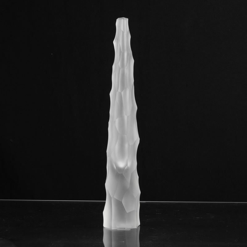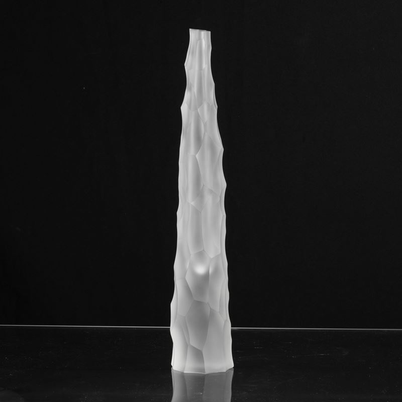 Vaso Siderale in vetro pesante sommerso con superficie scalpellata e sabbiata.