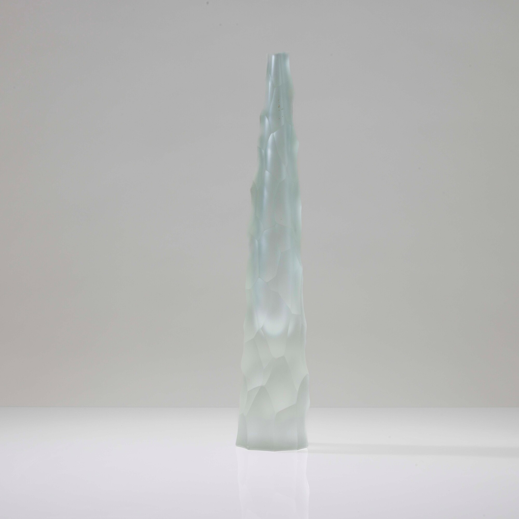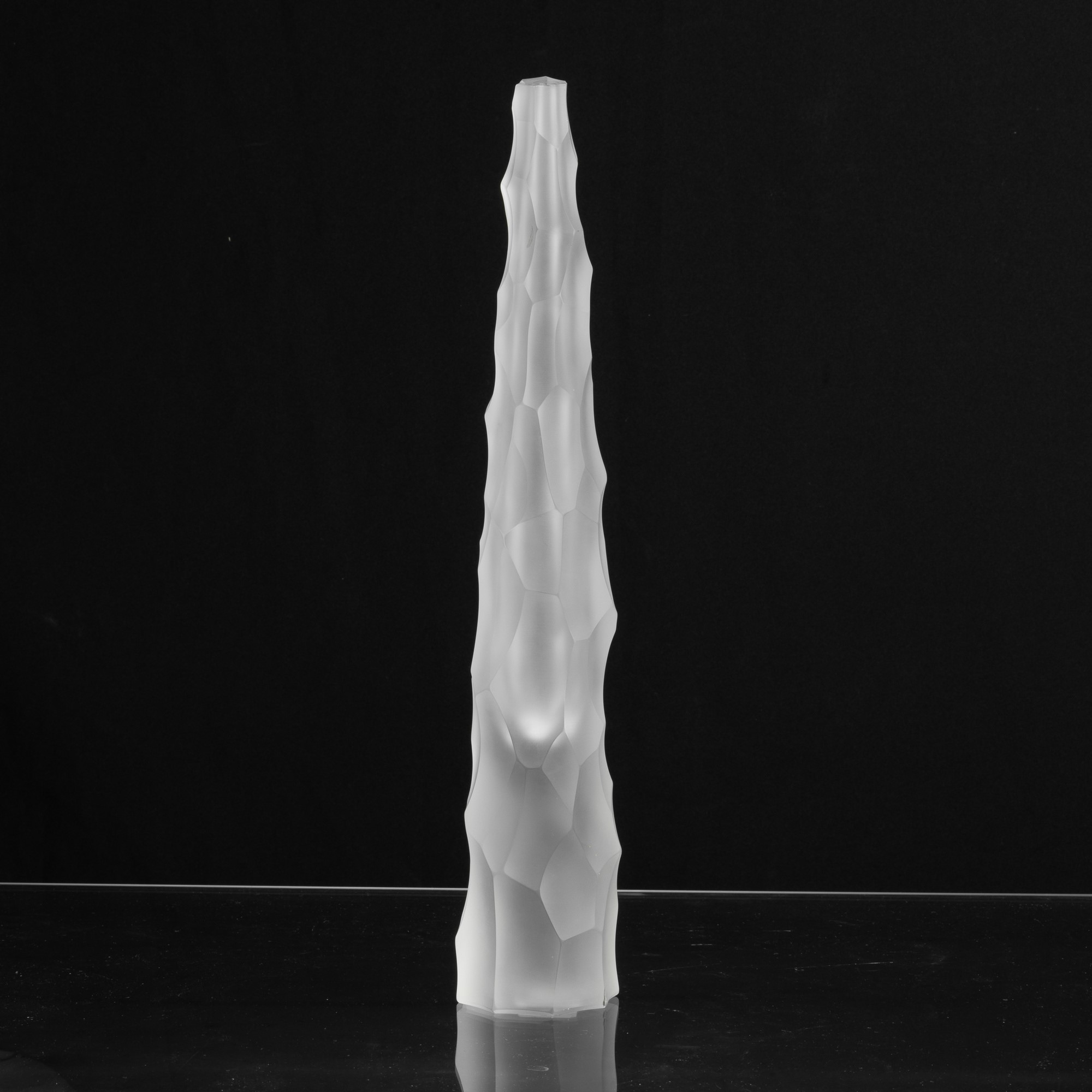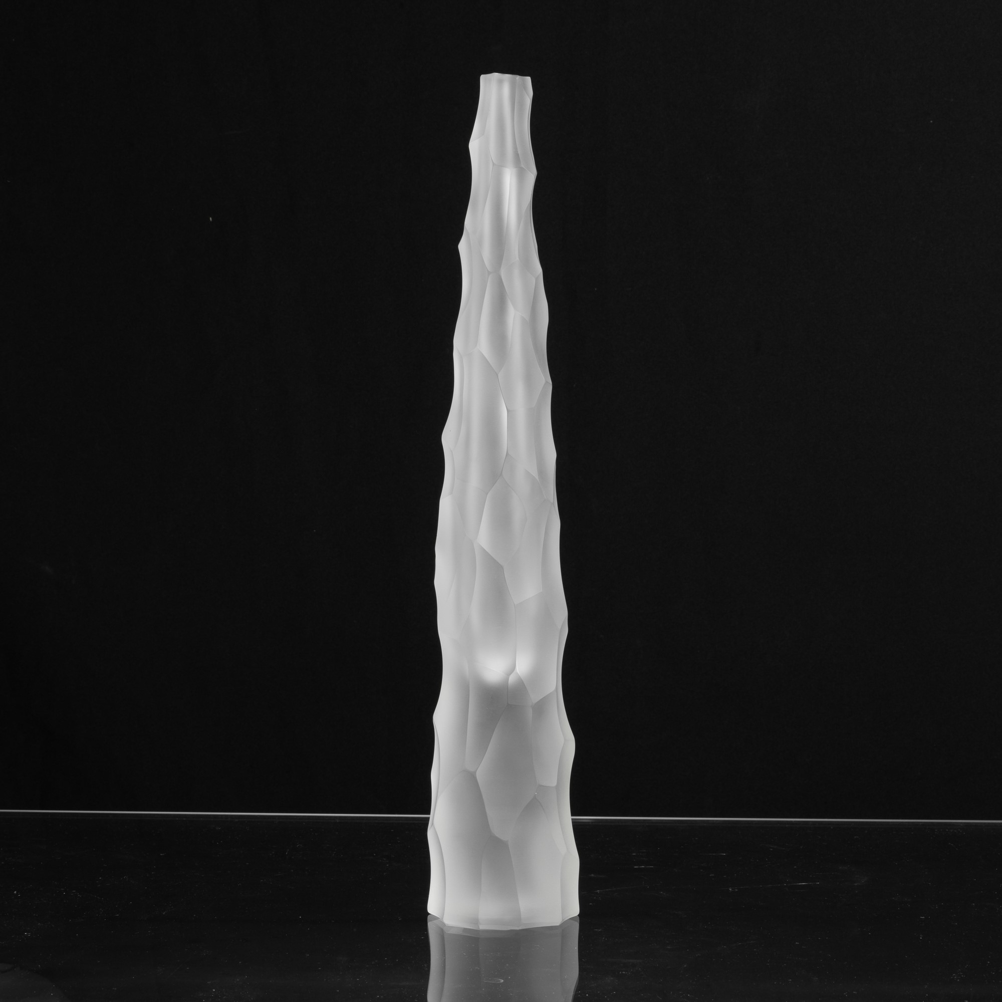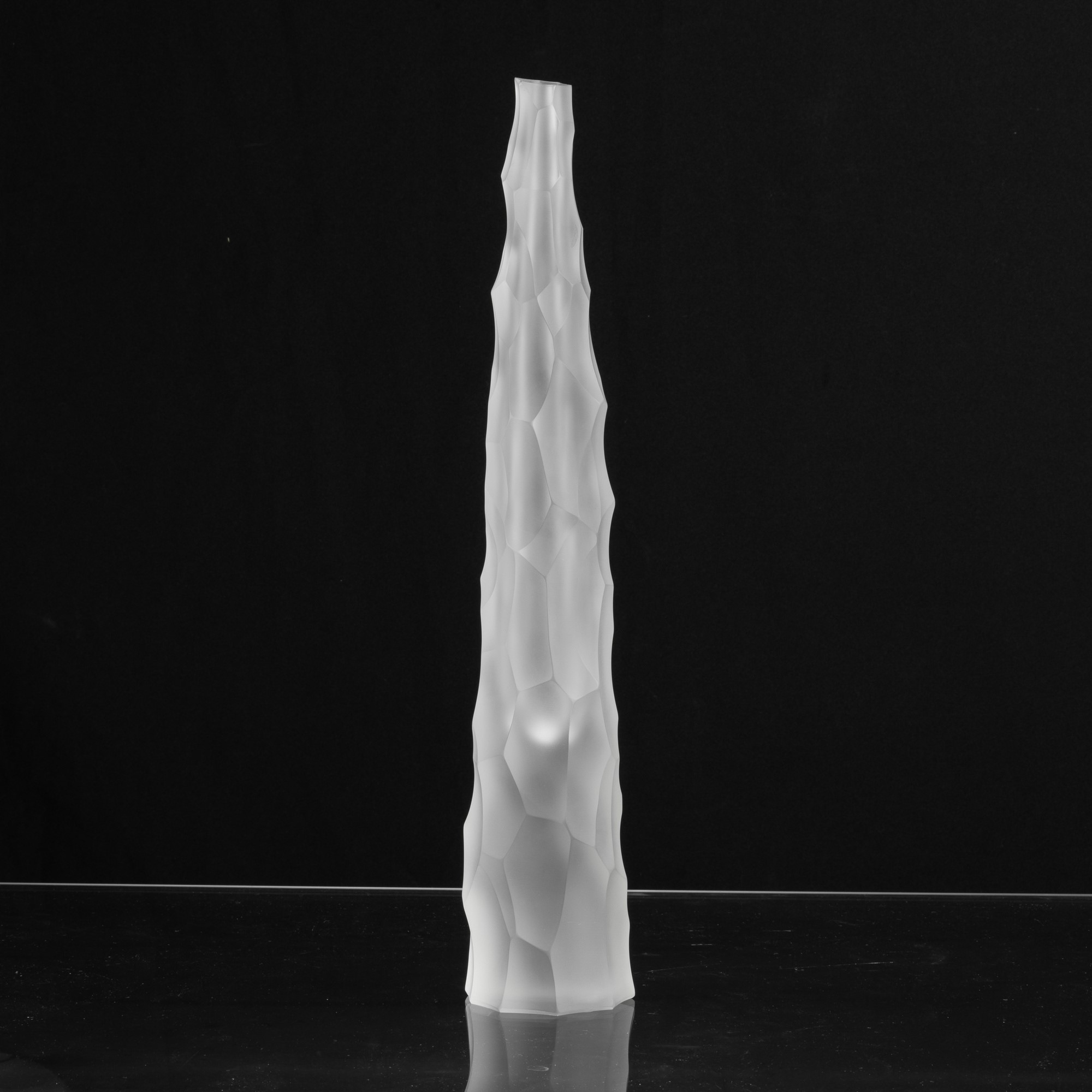 Vaso Siderale in vetro pesante sommerso con superficie scalpellata e sabbiata.