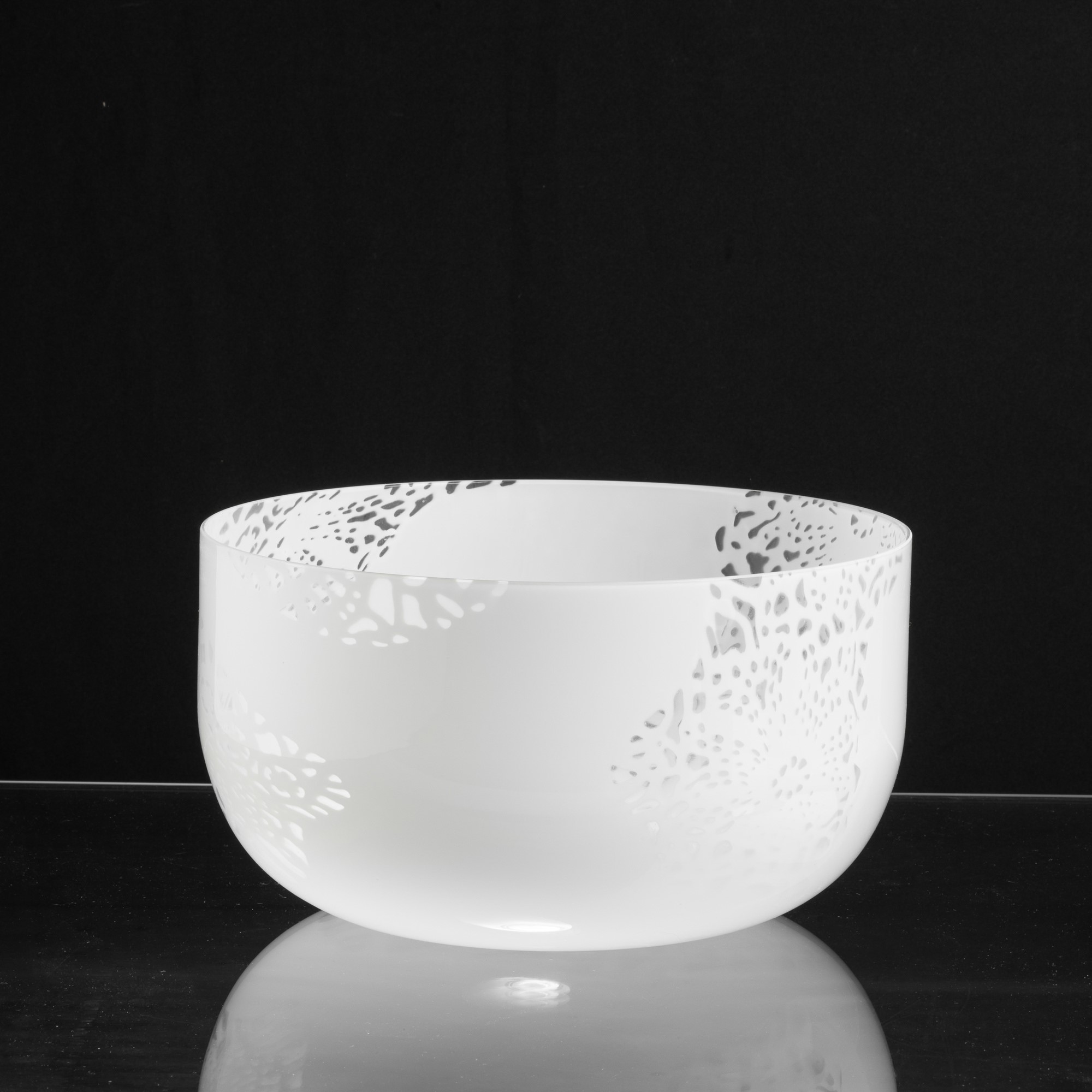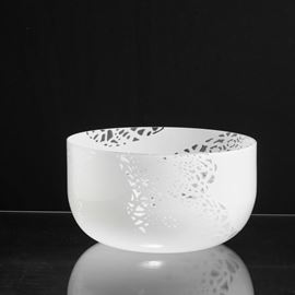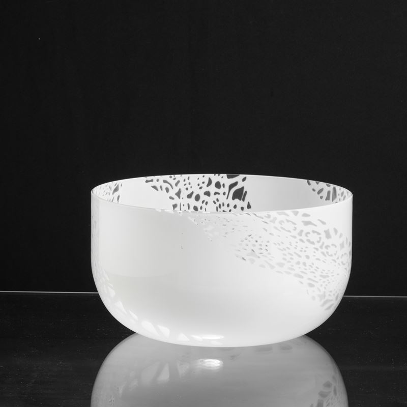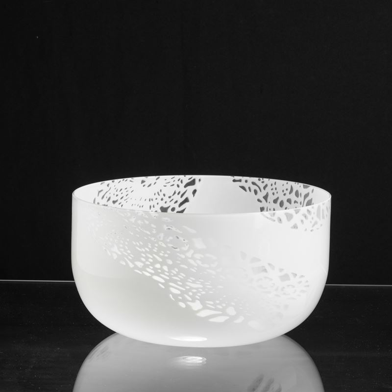 Grande coppa serie Merletti in vetro soffiato lattimo con decoro a grandi murrine.