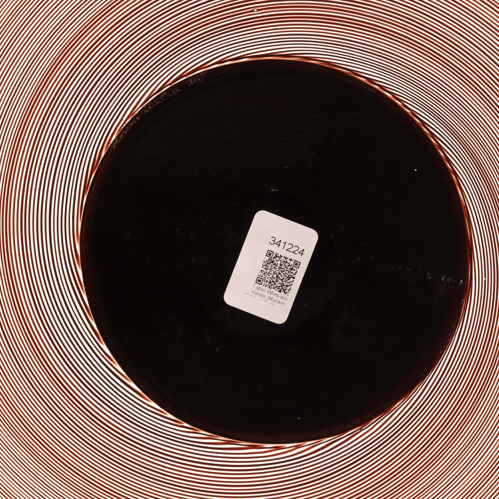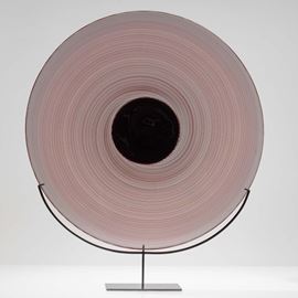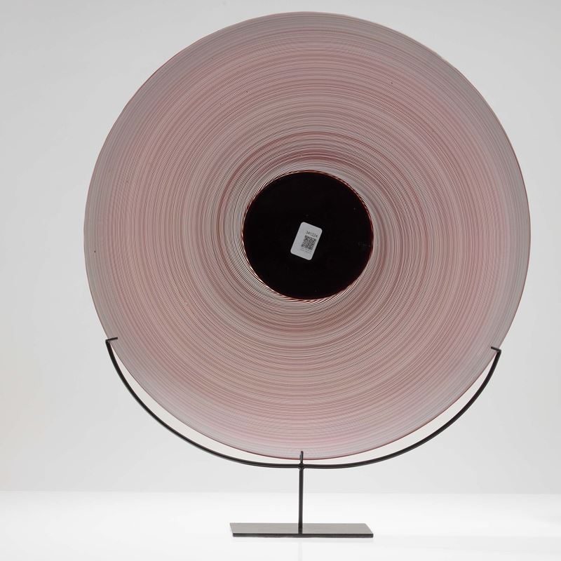 Piatto serie Filigrane di Tapio in vetro soffiato a incalmo con decoro di mezza filigrana ciclamino.