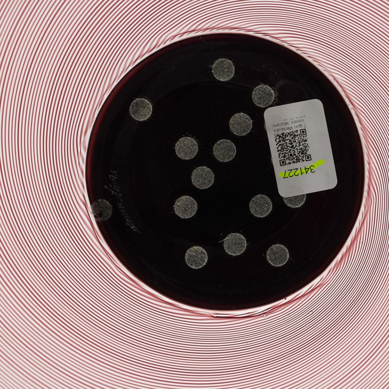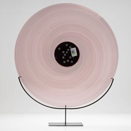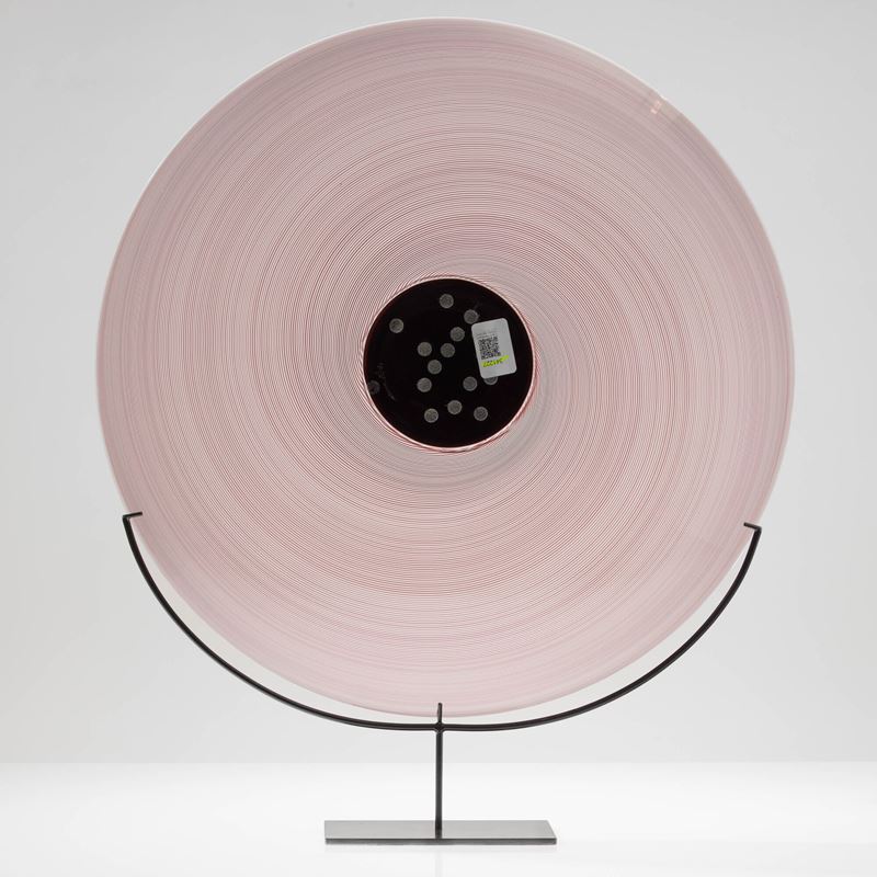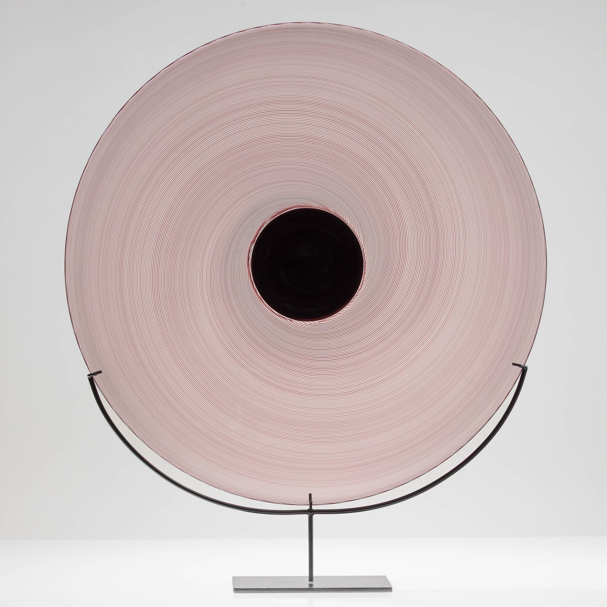 Piatto serie Filigrane di Tapio in vetro soffiato a incalmo con decoro di mezza filigrana ciclamino.