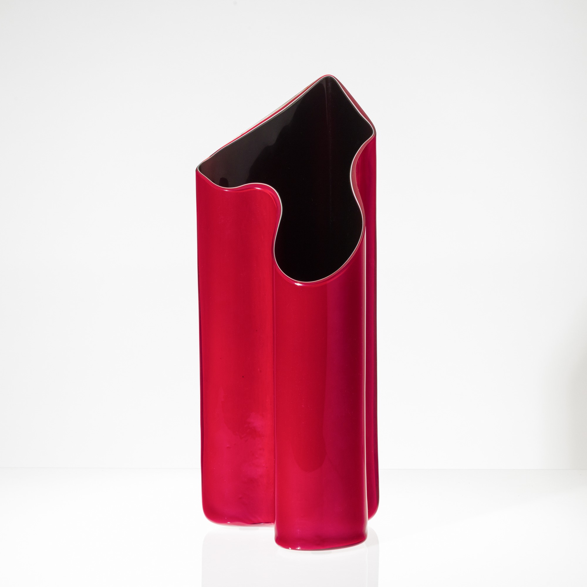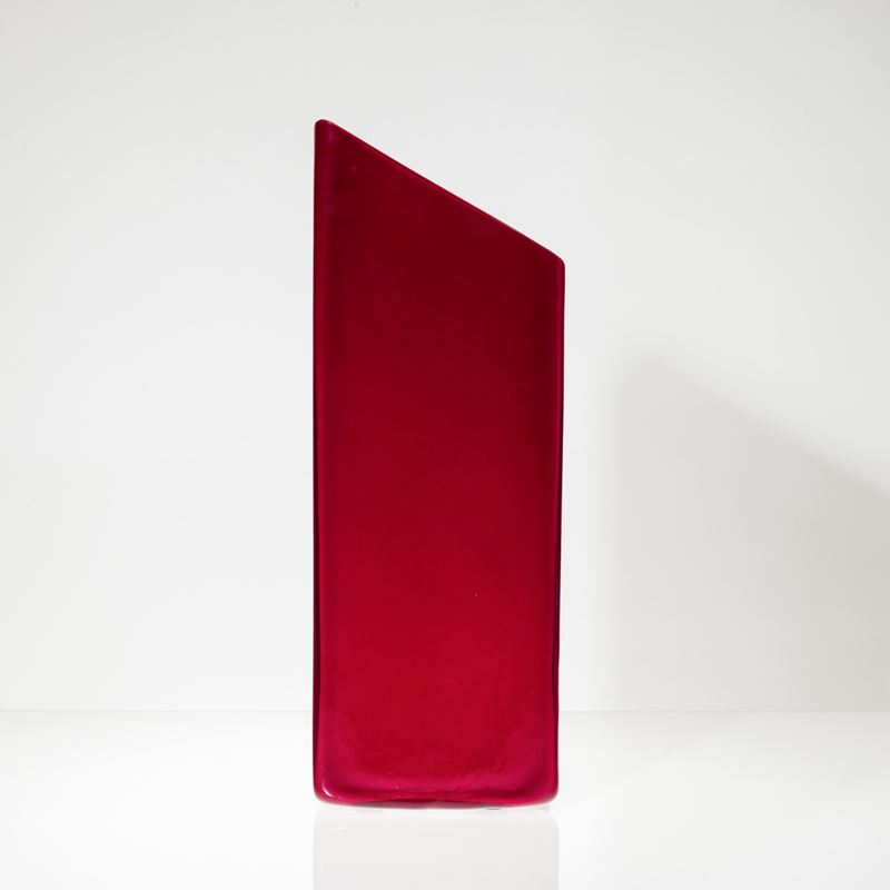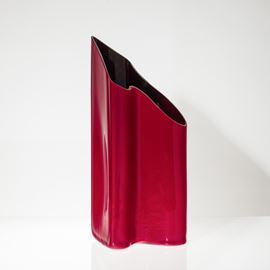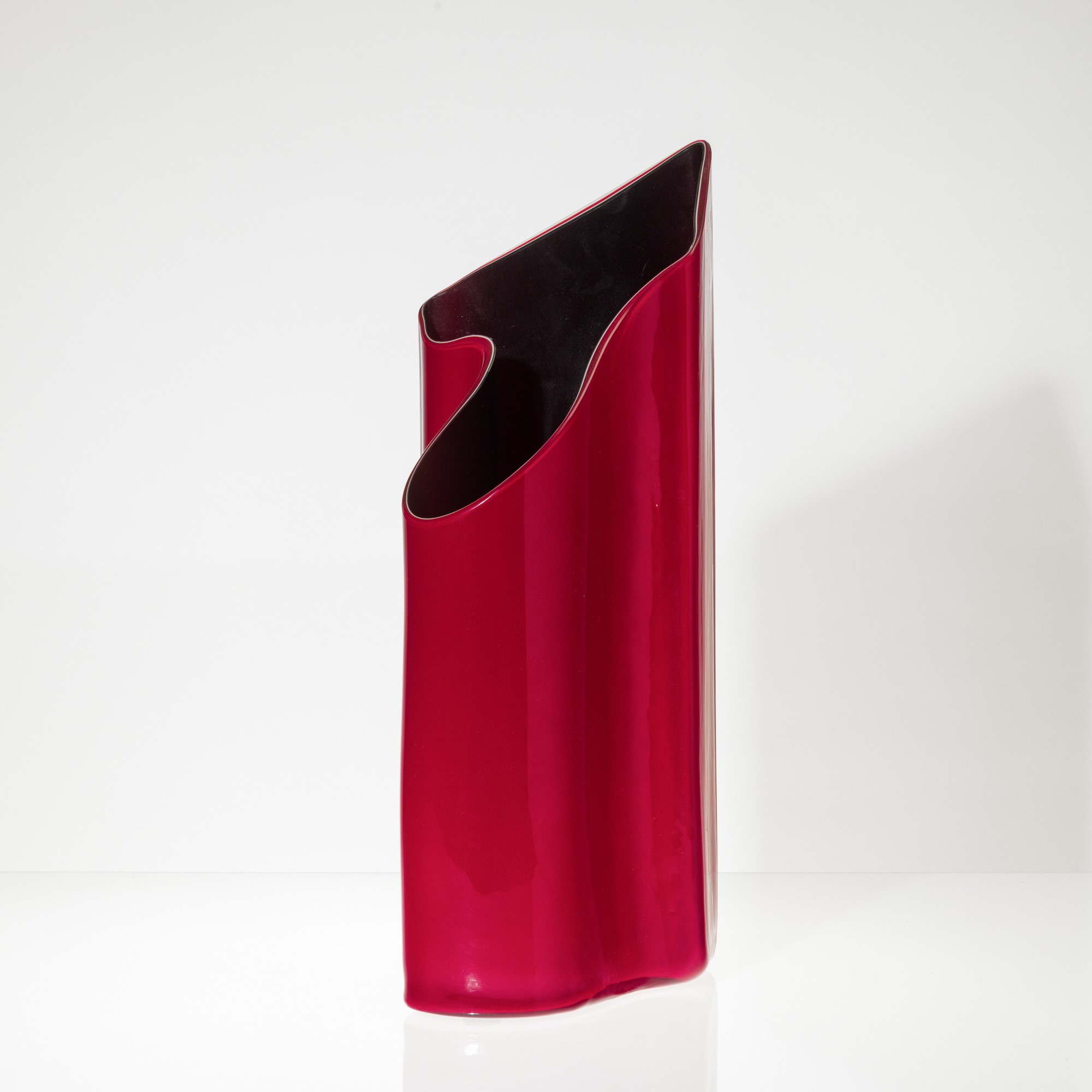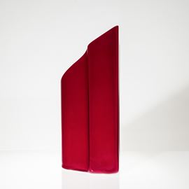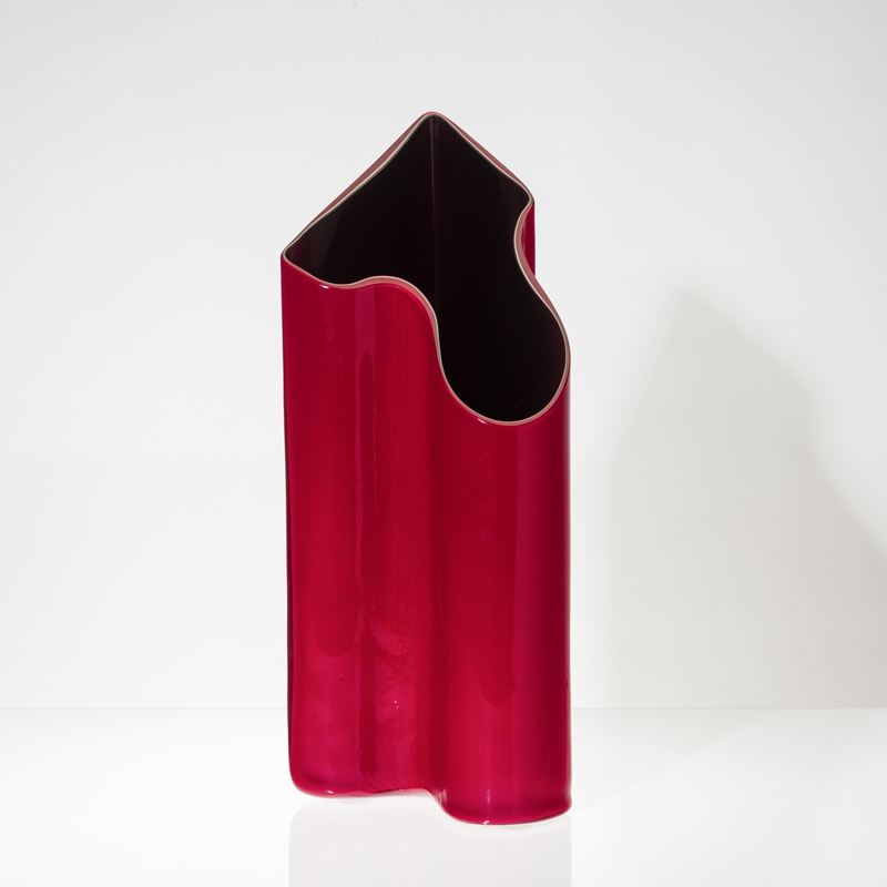 Vaso Kelo in vetro incamiciato soffiato a stampo in forma di onda con bocca tagliata in diagonale.