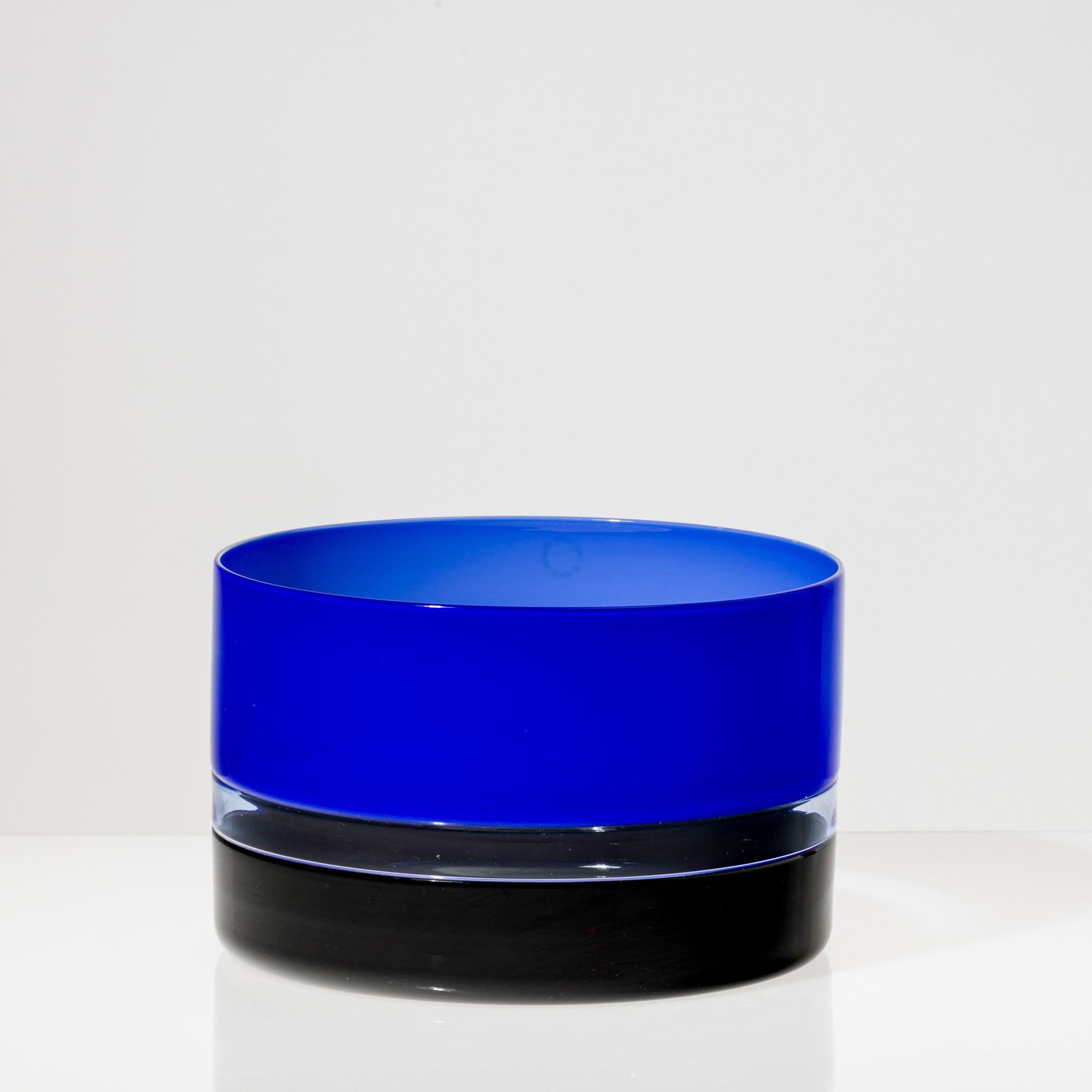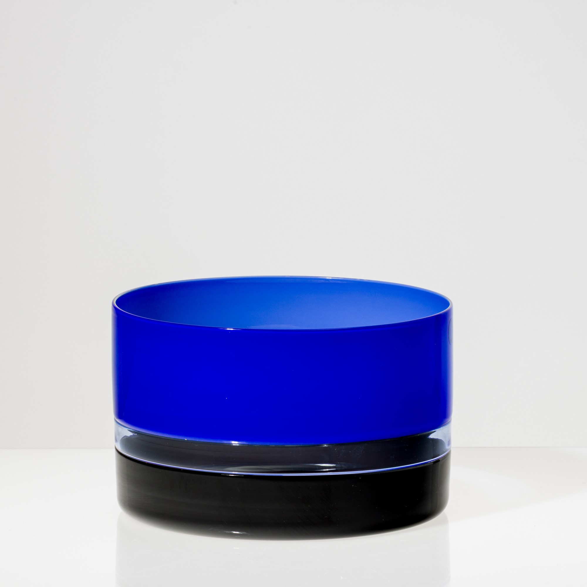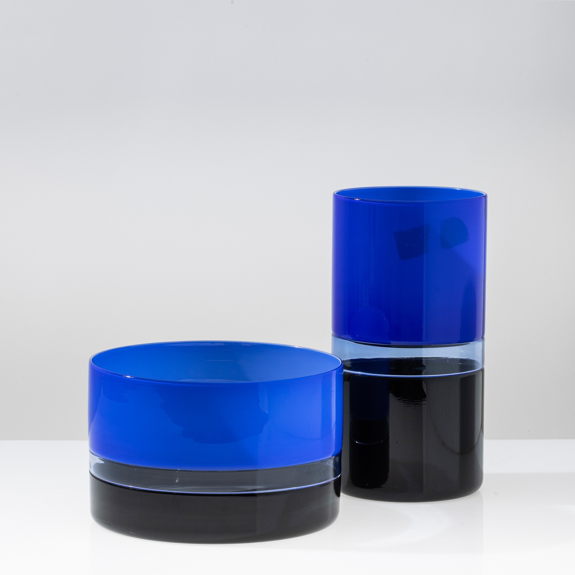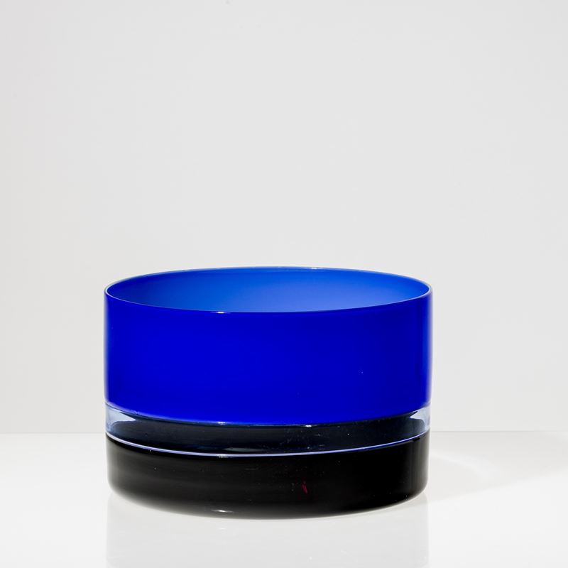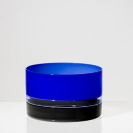 Coppa Tuuli a sezione cilindrica in vetro soffiato a duplice incalmo nei colori nero, bluino e zaffiro.