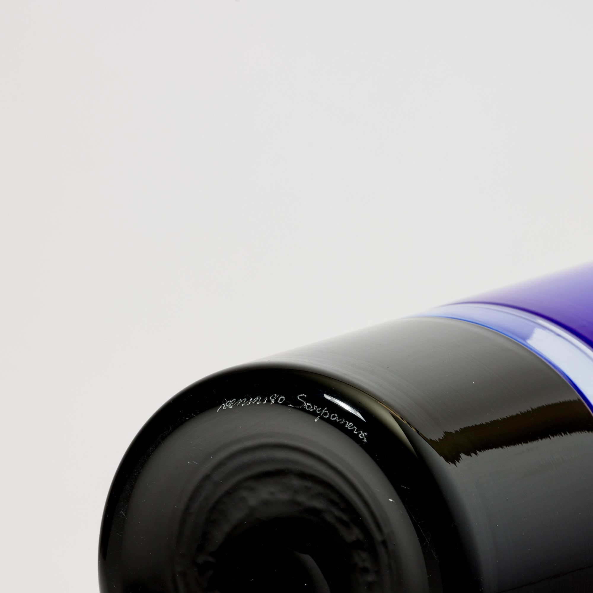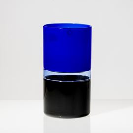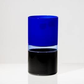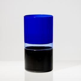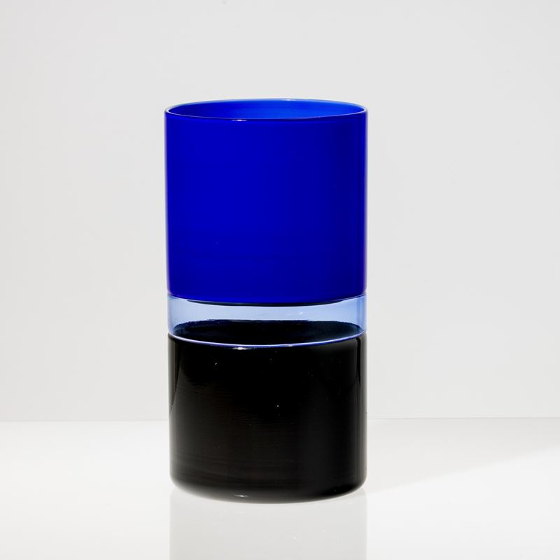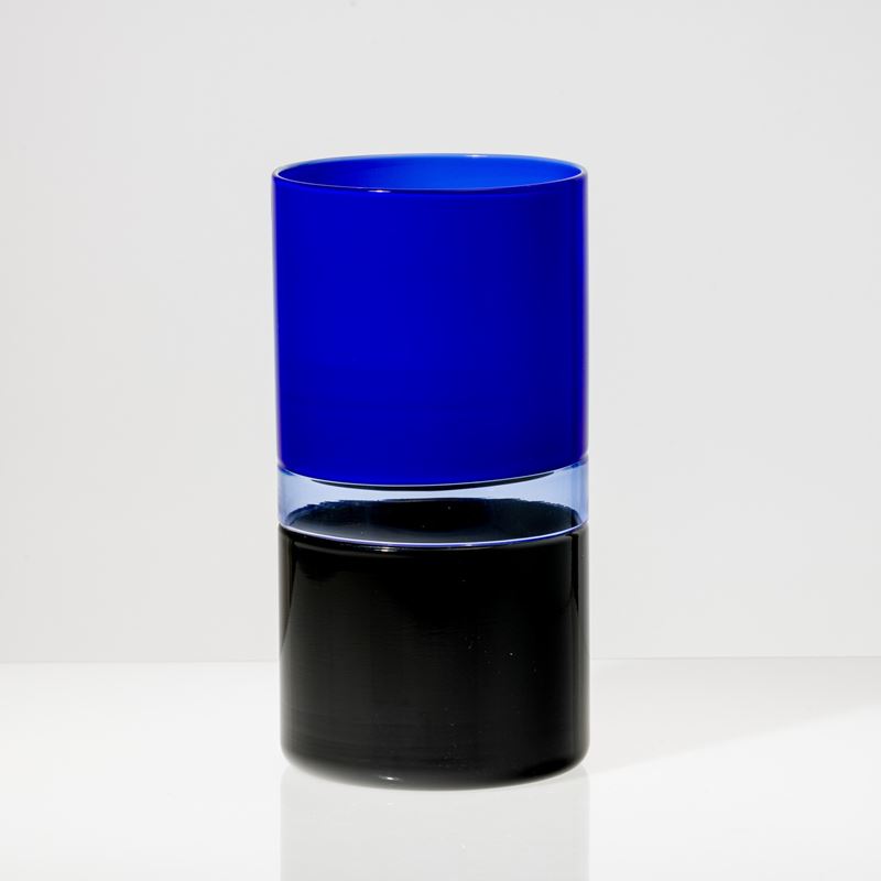 Vaso Tuuli a sezione cilindrica in vetro soffiato a duplice incalmo nei colori nero, bluino e zaffiro.