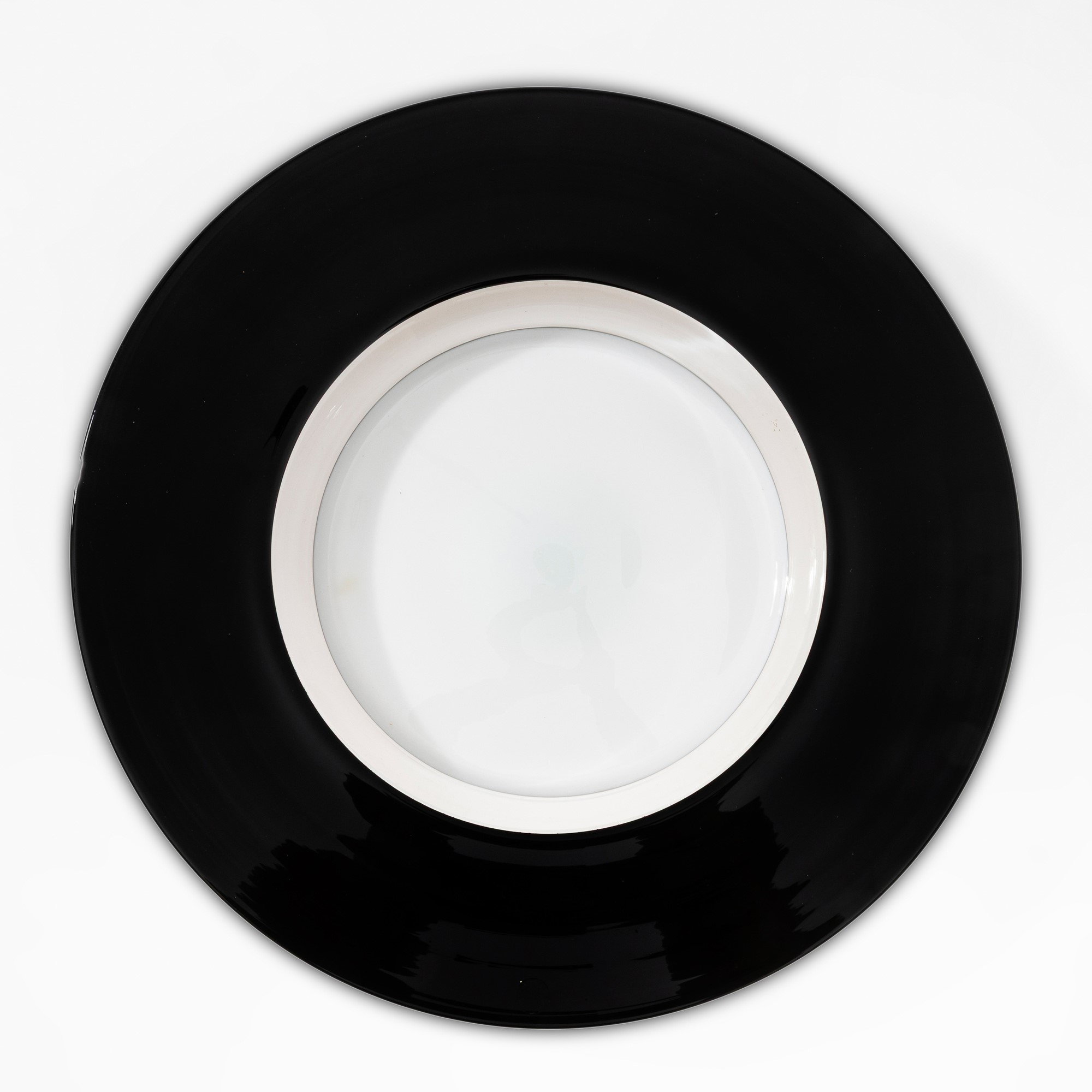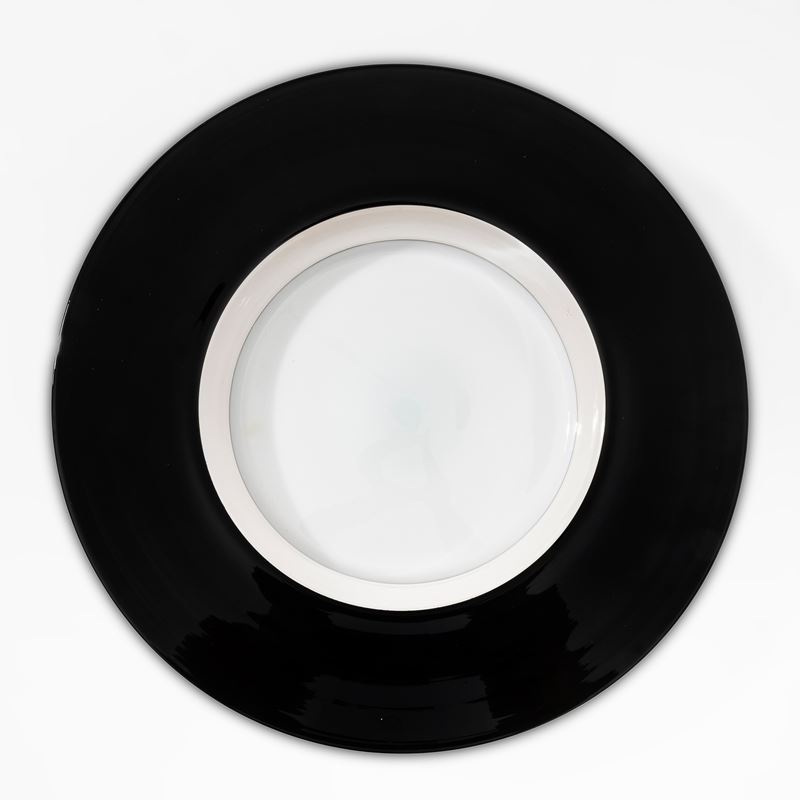 Grande piatto serie Tuuli in vetro soffiato a incalmo con fondo lattimo.