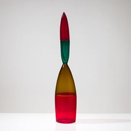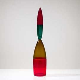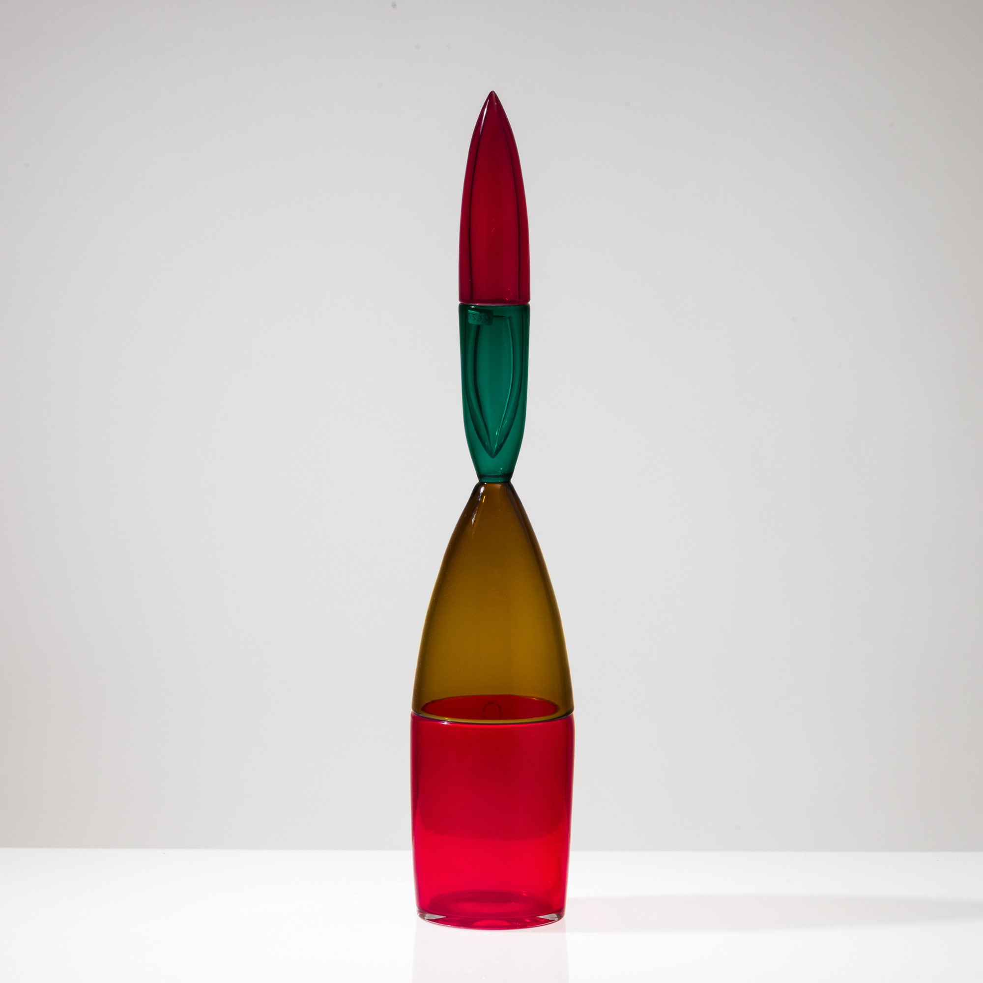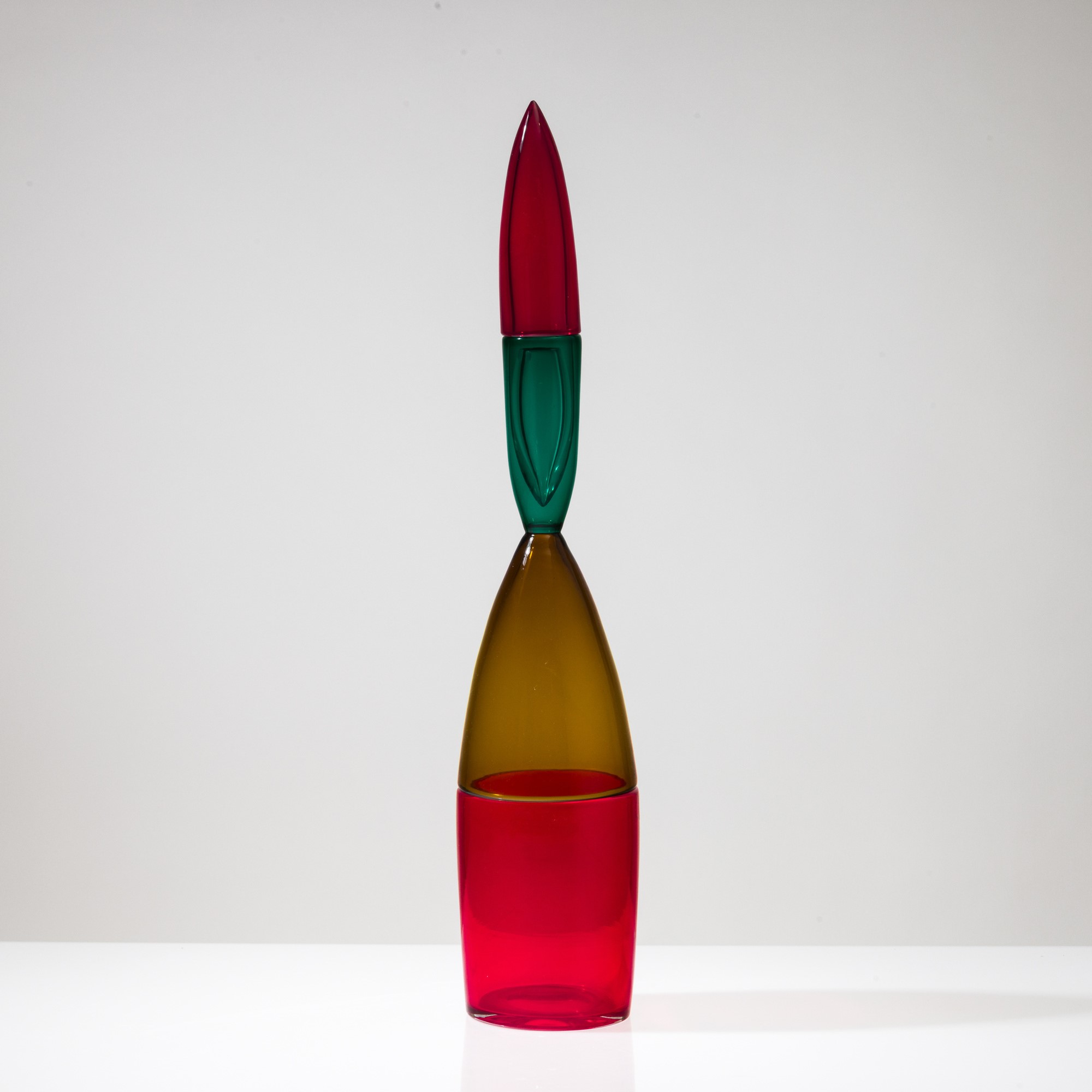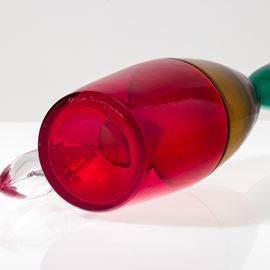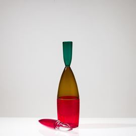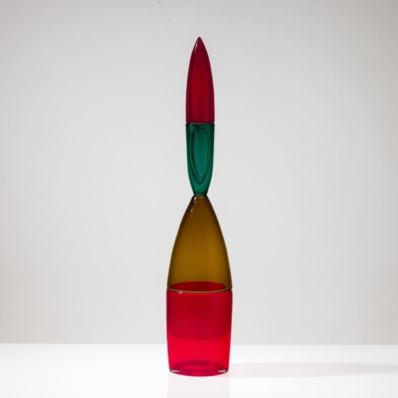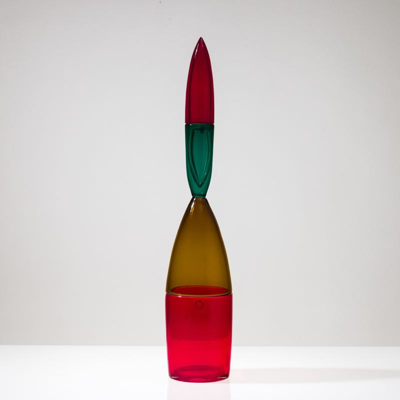 Bottiglia Pilari in vetro soffiato multicolore a doppio incalmo con tappo a ogiva.