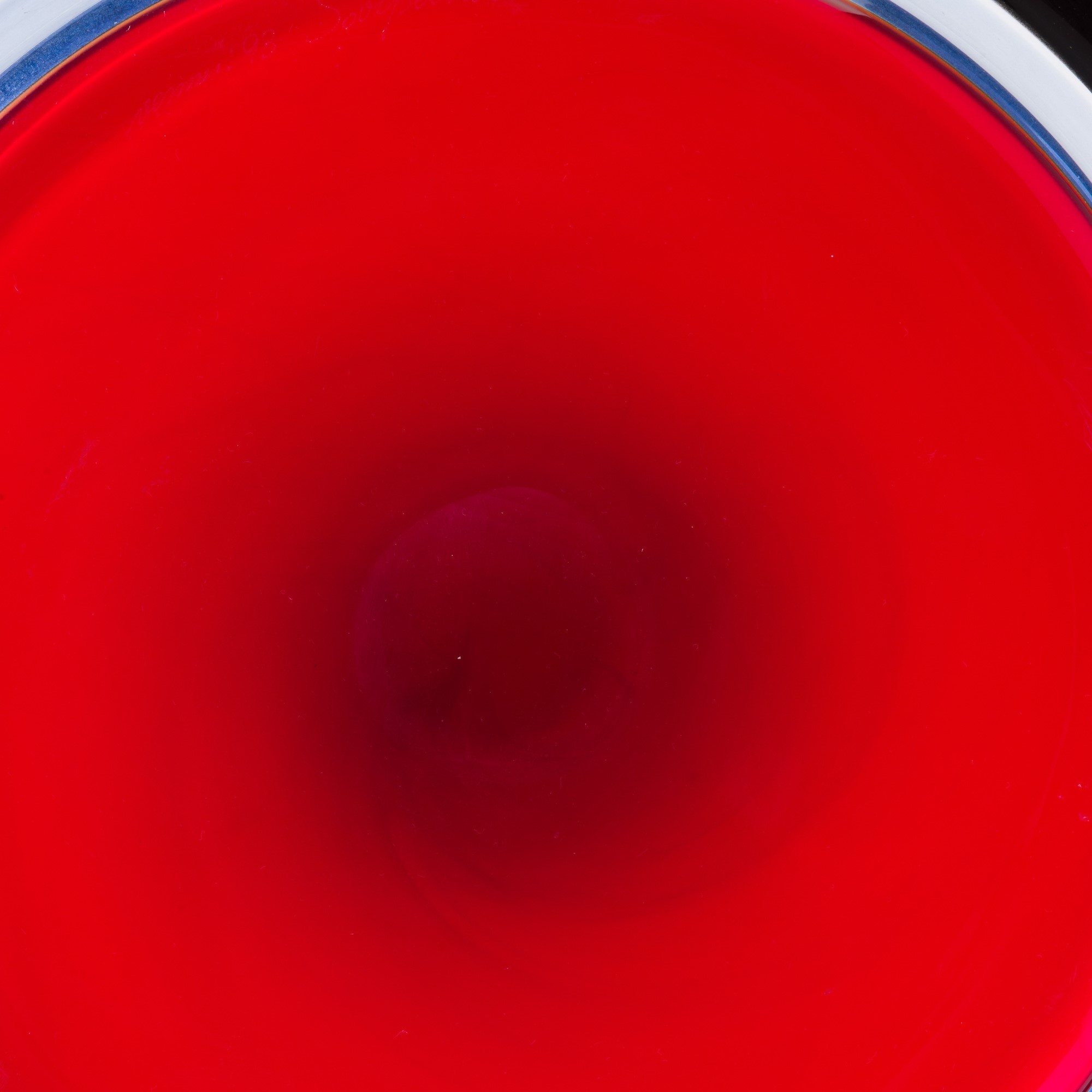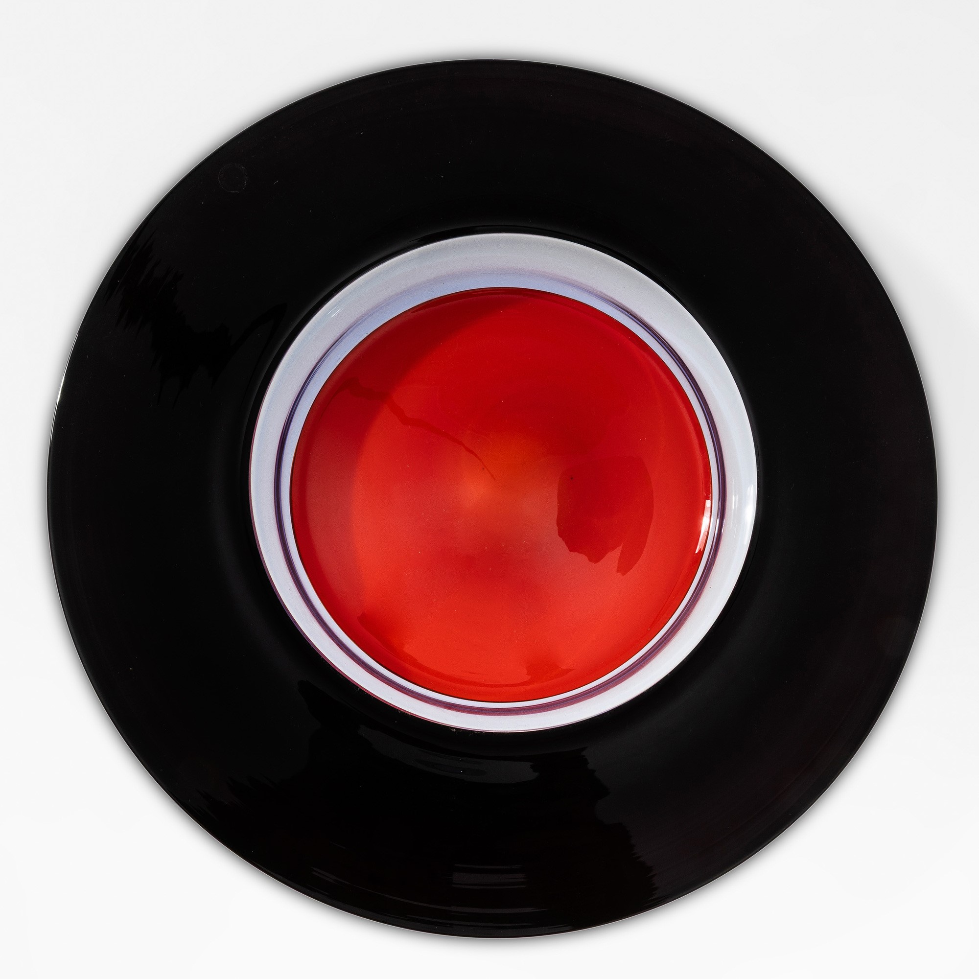 Grande piatto serie Tuuli in vetro soffiato a incalmo con fondo rosso.