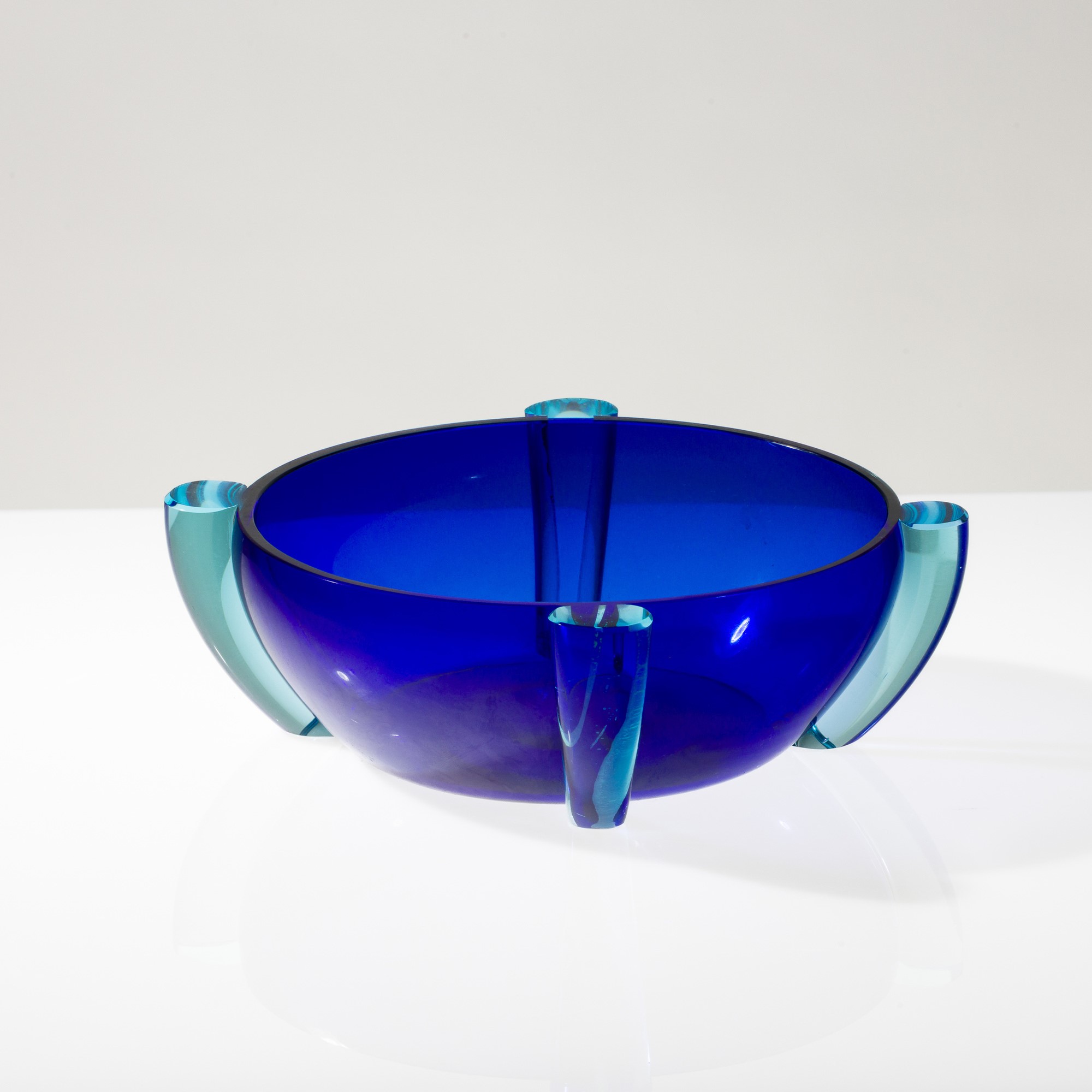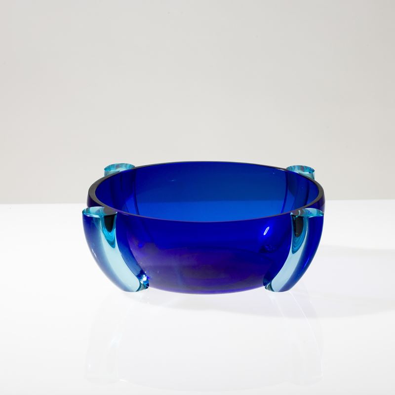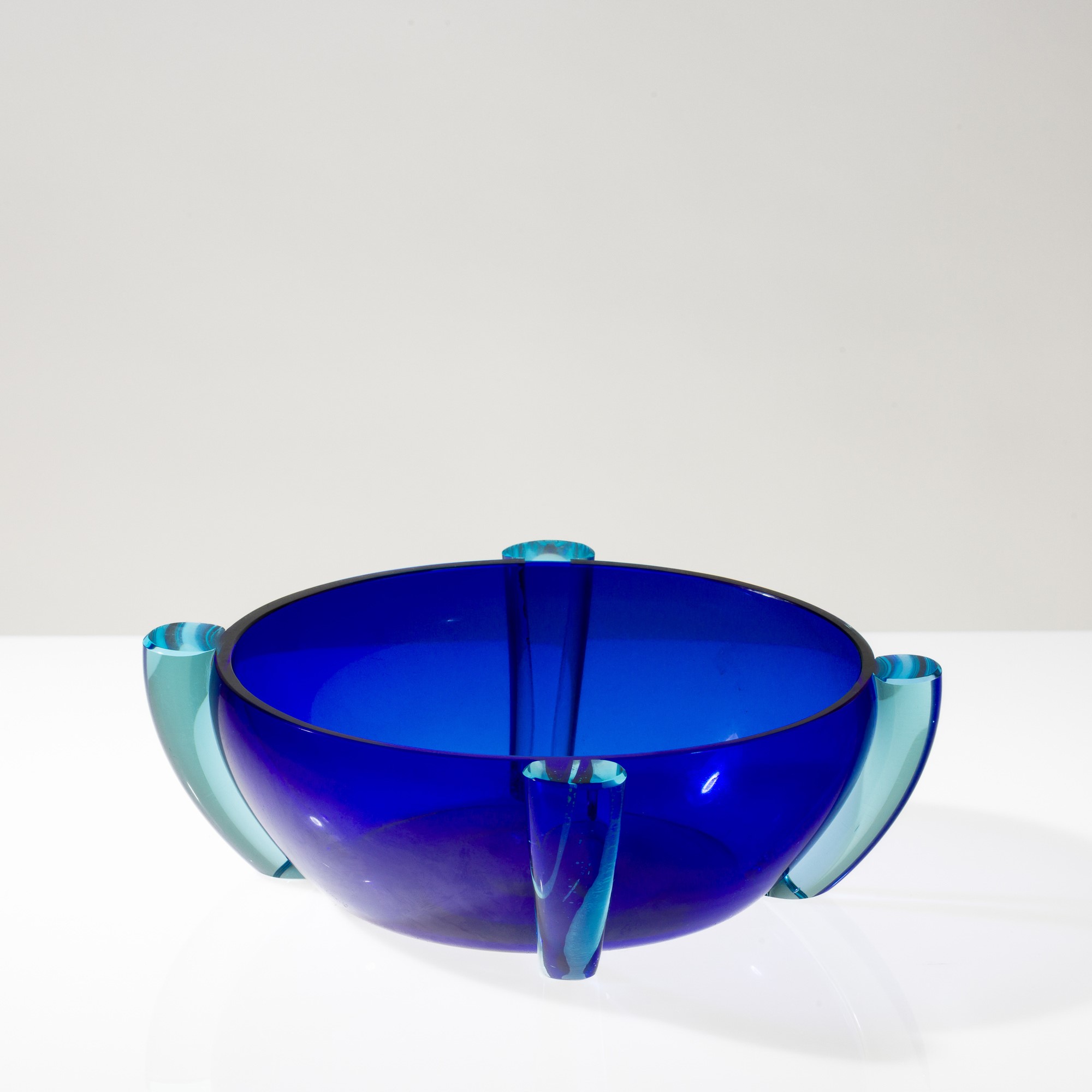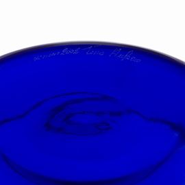 Coppa Rosmunda in vetro soffiato zaffiro con manici applicati acquamare.