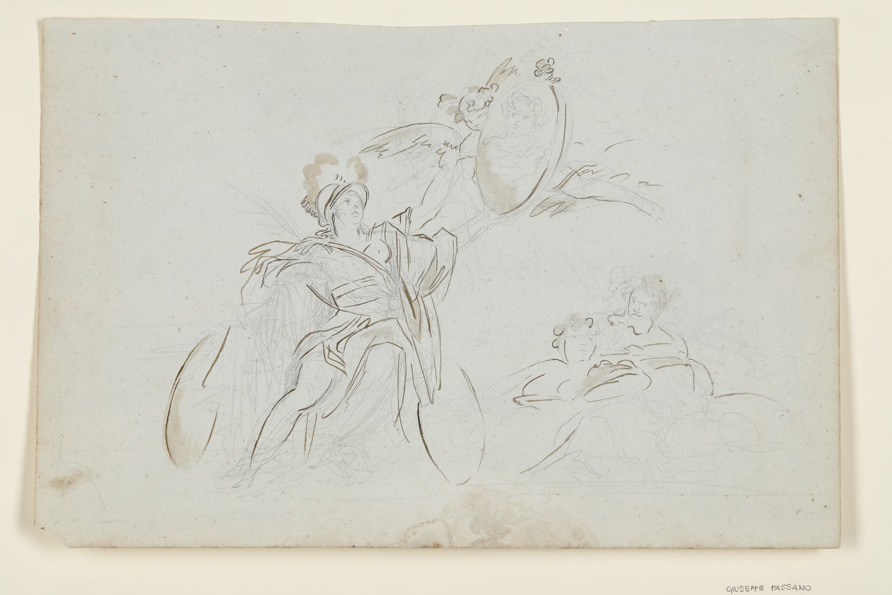 matita nera, penna, inchiostro bruno e acquerello su carta