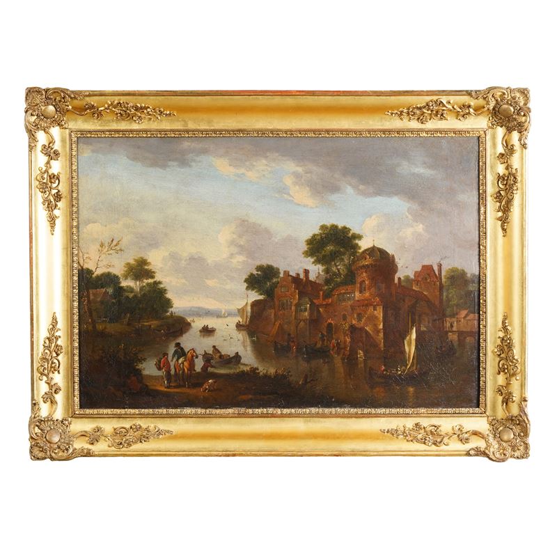 Paesaggio fluviale con contadini