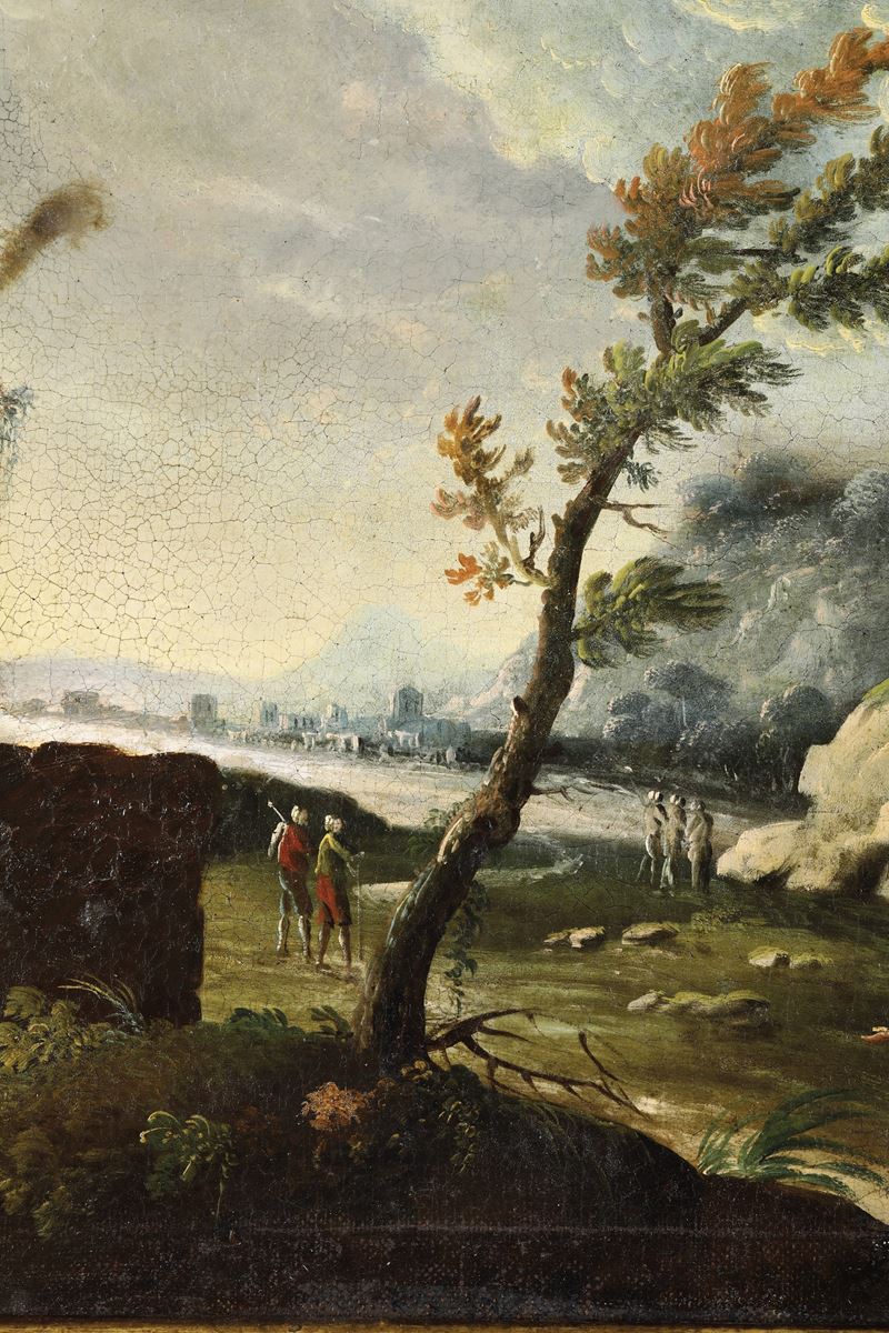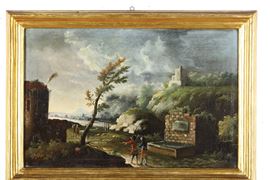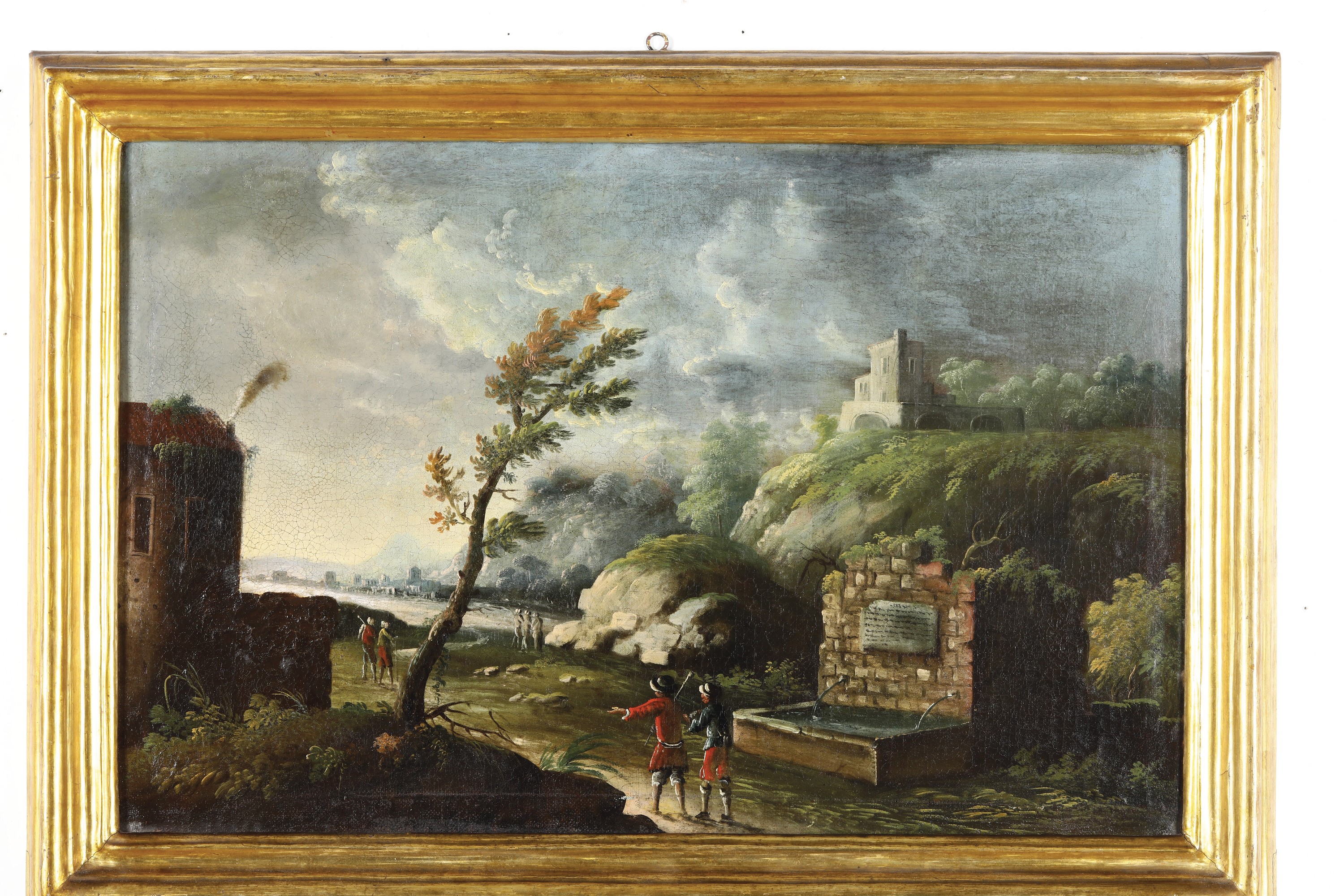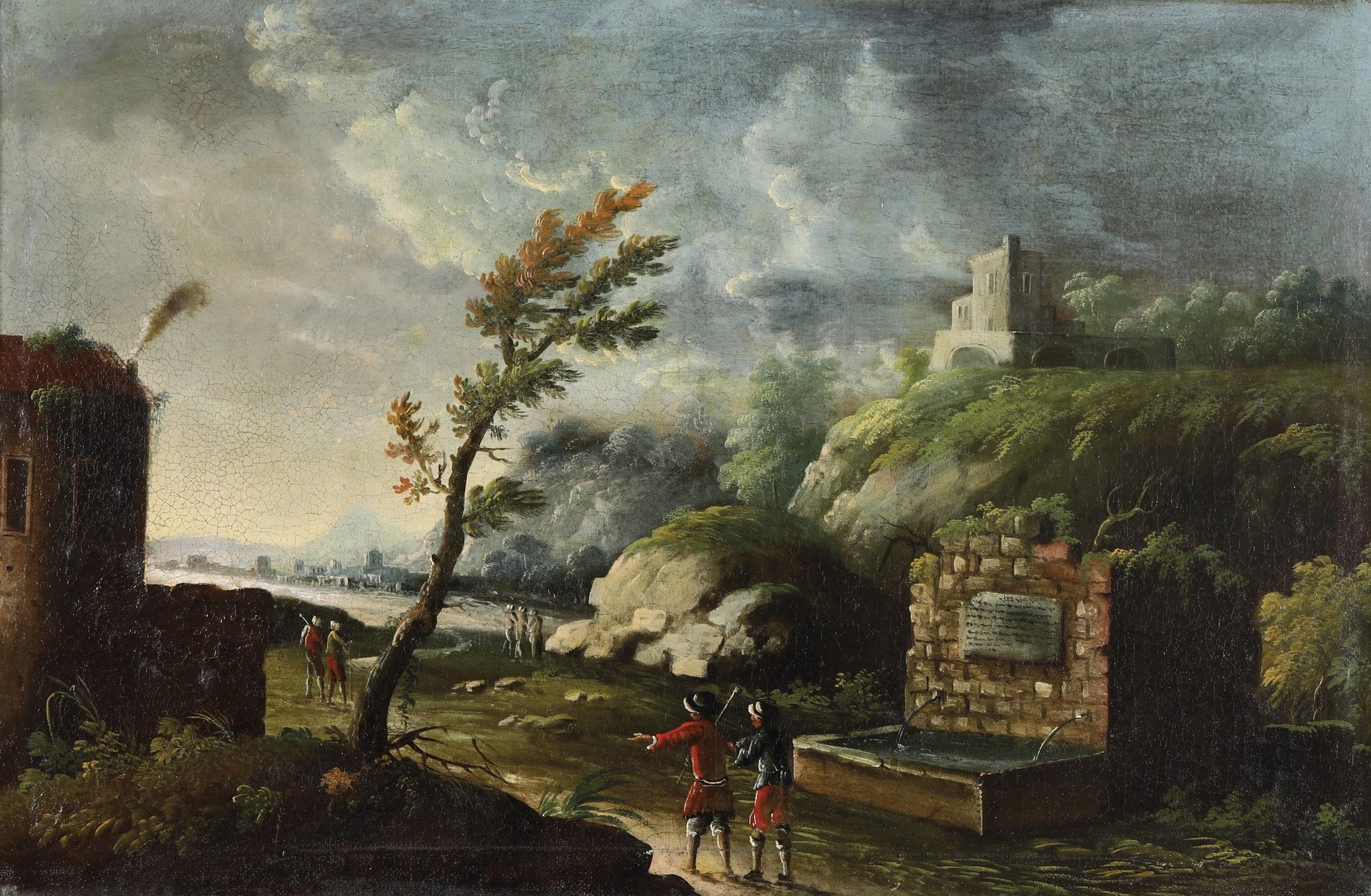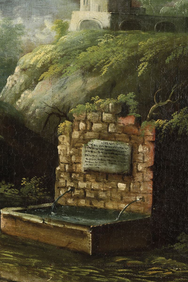 Scuola del XVIII secolo Paesaggio con viandanti alla fonte