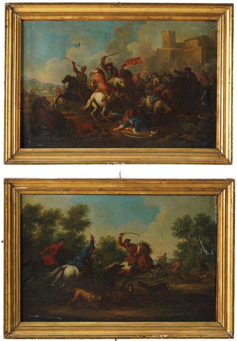 Scuola del XVIII secolo Scontro di cavalleria