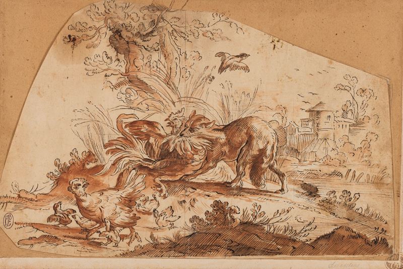 Scuola lombarda del XVII secolo Volpe e gallina