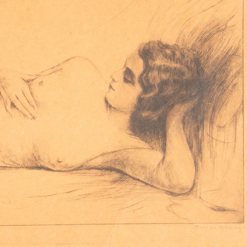 Enrico Arcioni. Acquaforte Figura femminile distesa