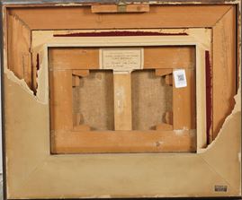 Etichetta della mostra bolognese del 1946 incollata sul retro del telaio