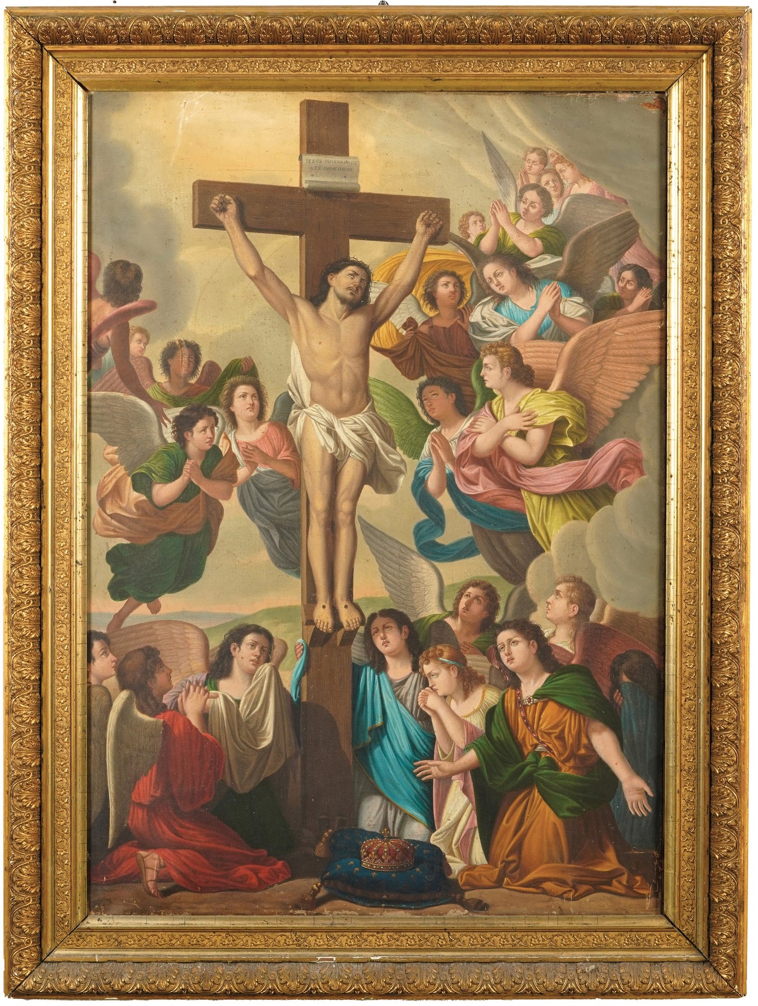 Pittore del XIX secolo Cristo Crocifisso vegliato dagli angeli
