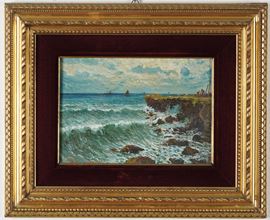 Pittore del XIX secolo Marina con veliero all’orizzonte
