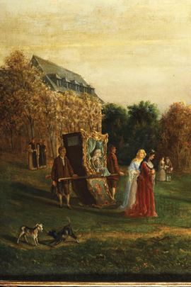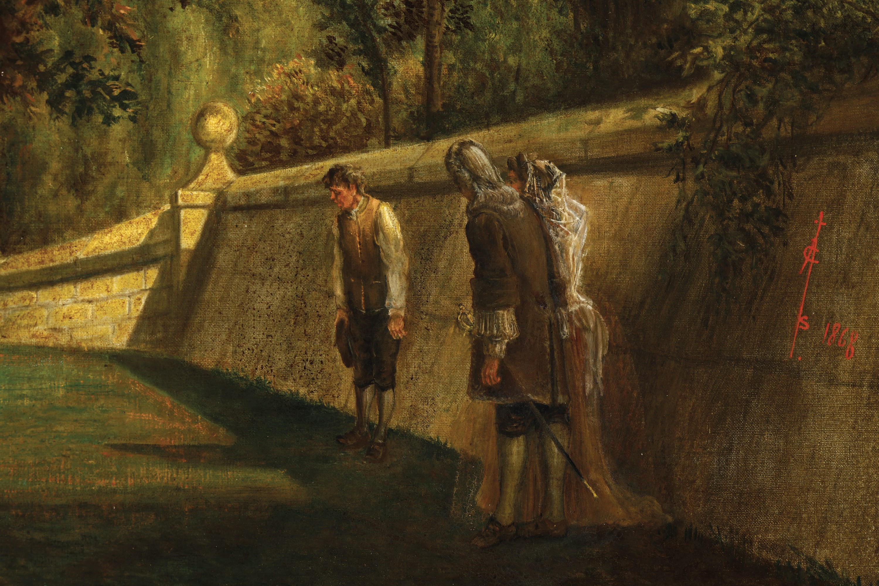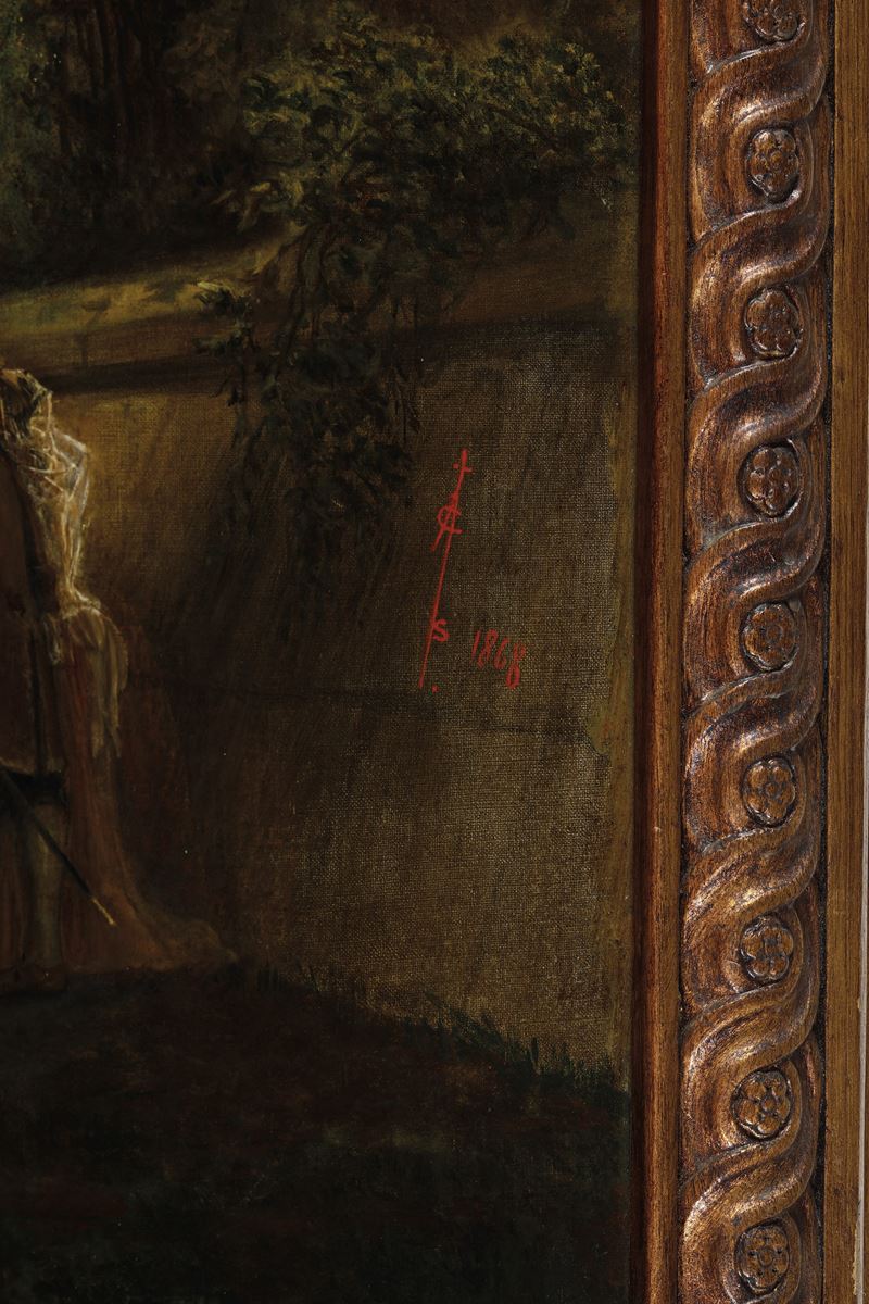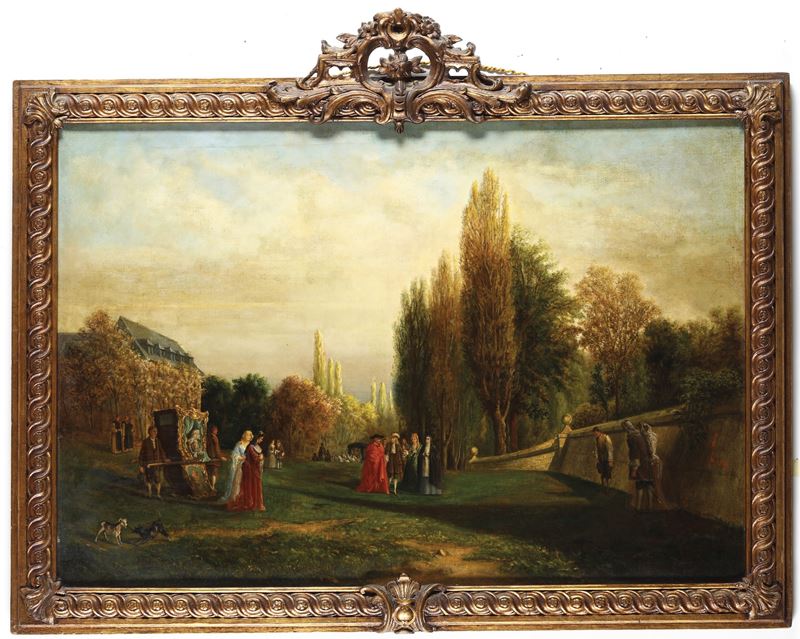 Pittore del XIX secolo Paesaggio con personaggi e cardinale