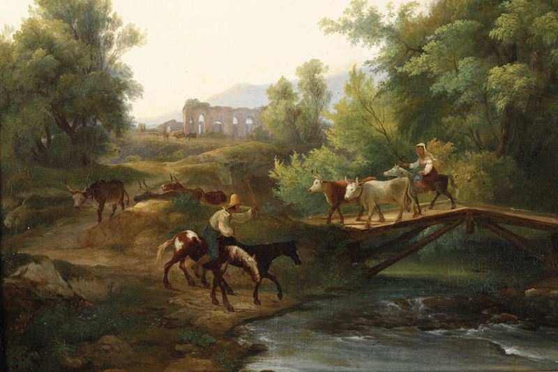 Pittore nordico attivo a Roma tra la fine del XVIII secolo e l'inizio del XIX secolo Paesaggio con rovine e architetture