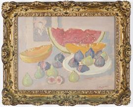 S. Portazzeri (?) Natura morta con anguria e fichi