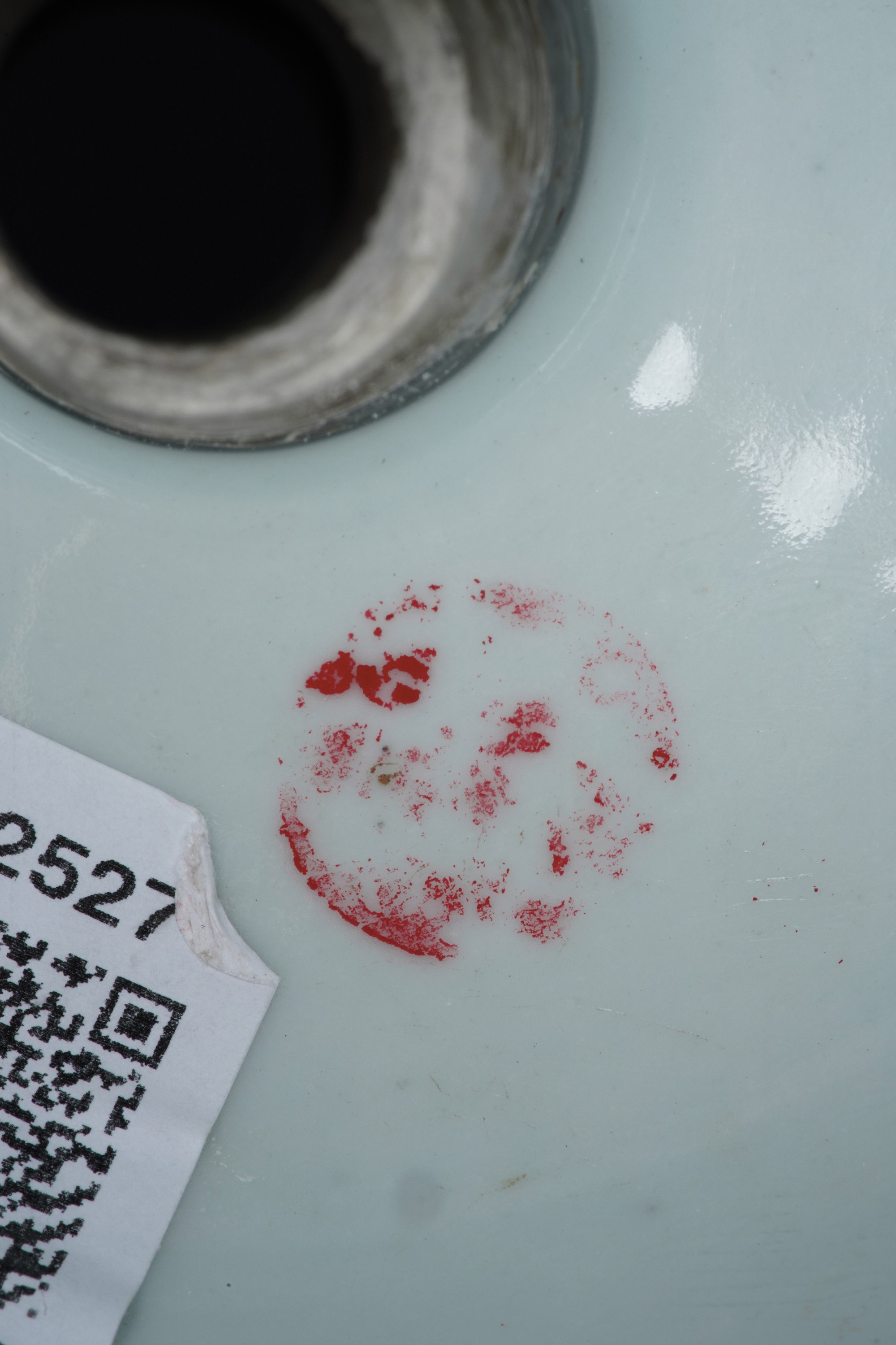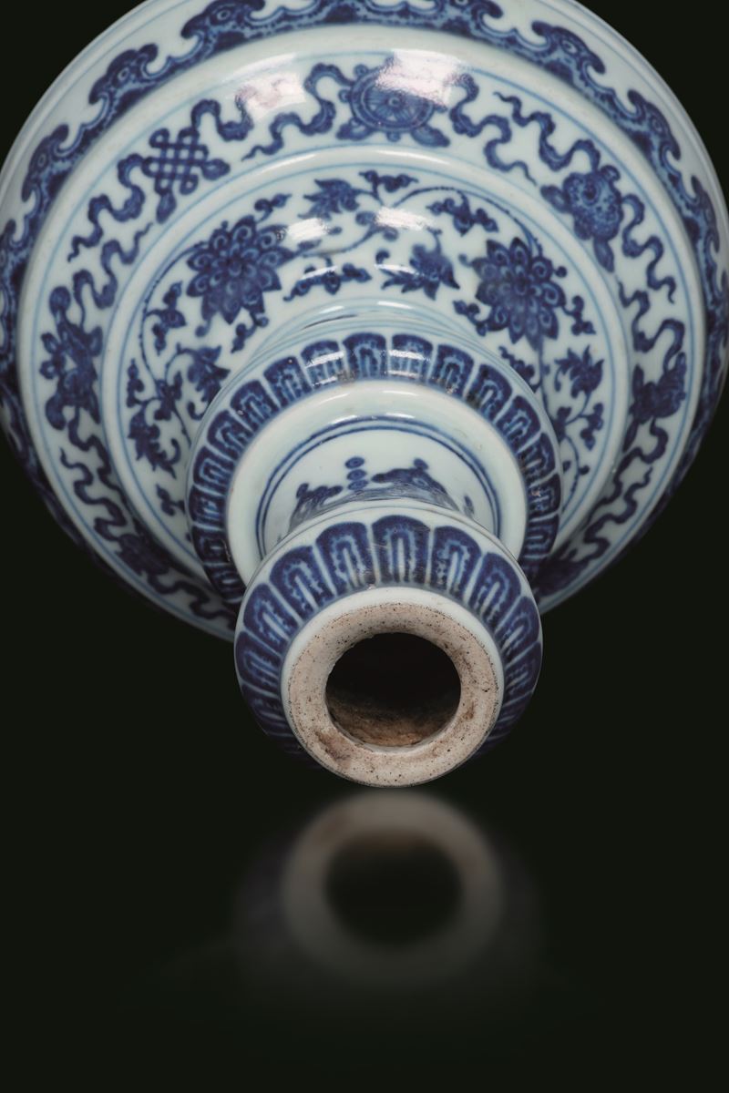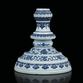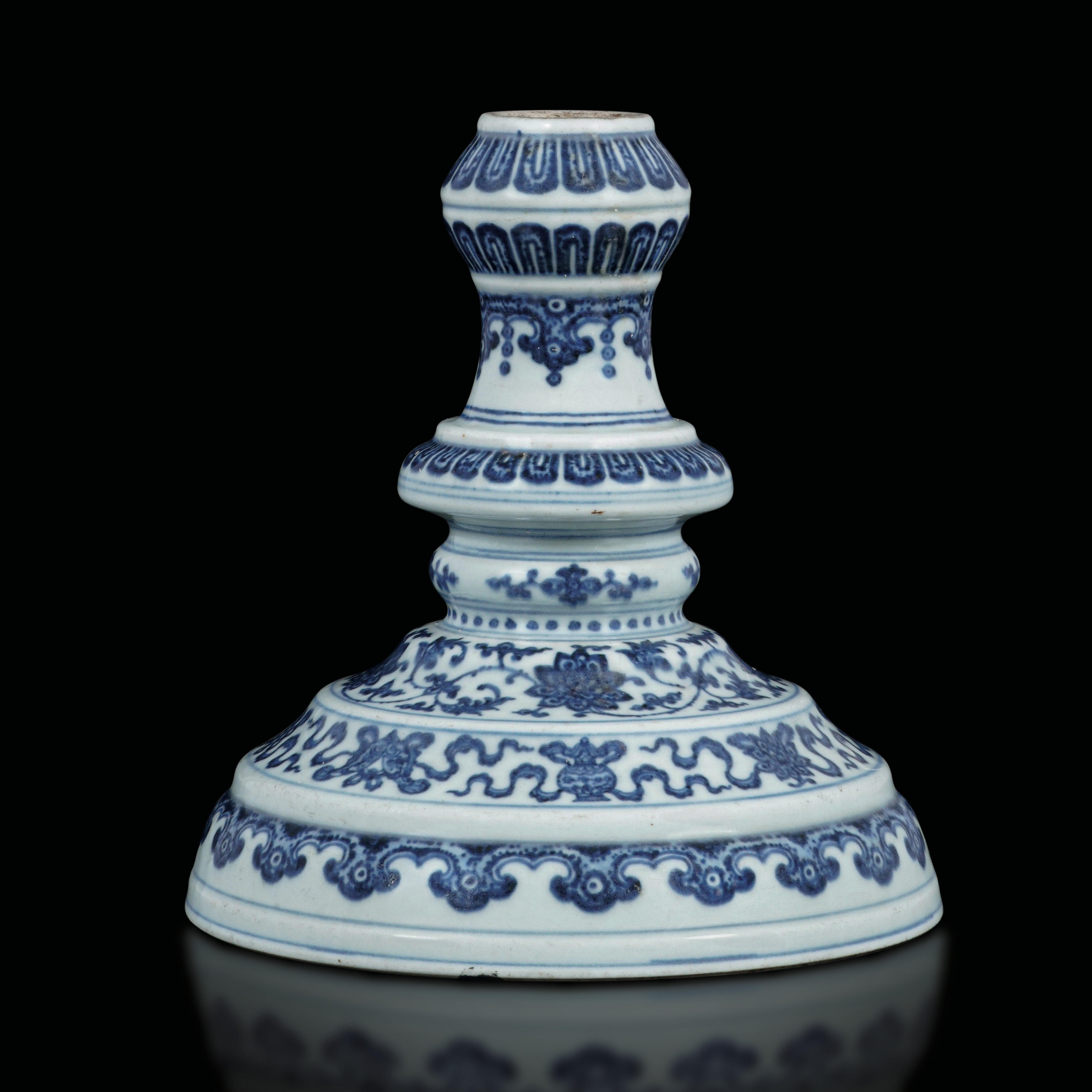 Candeliere in porcellana bianca e blu a motivi floreali, Cina, Dinastia Qing, epoca Qianlong (1736-1796)