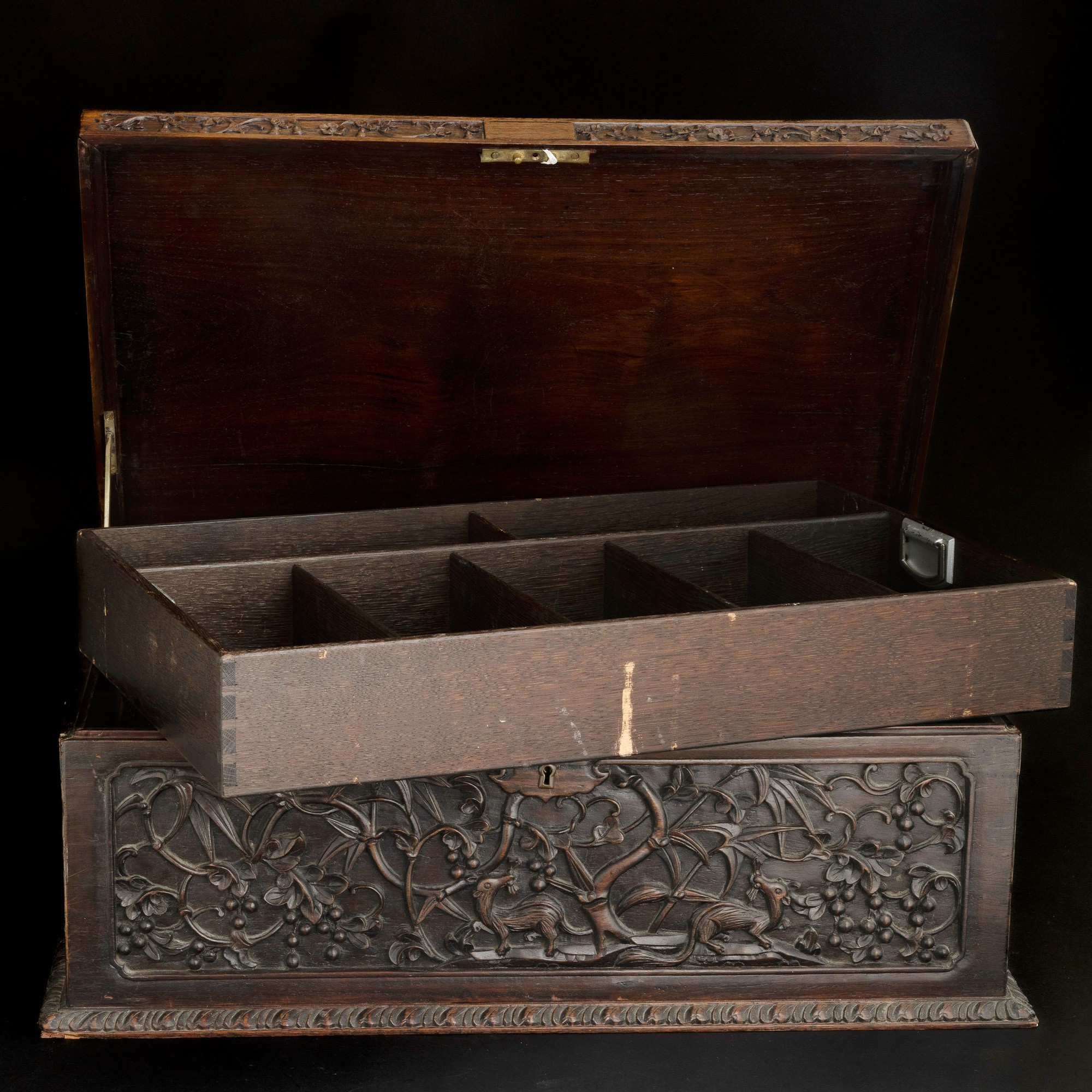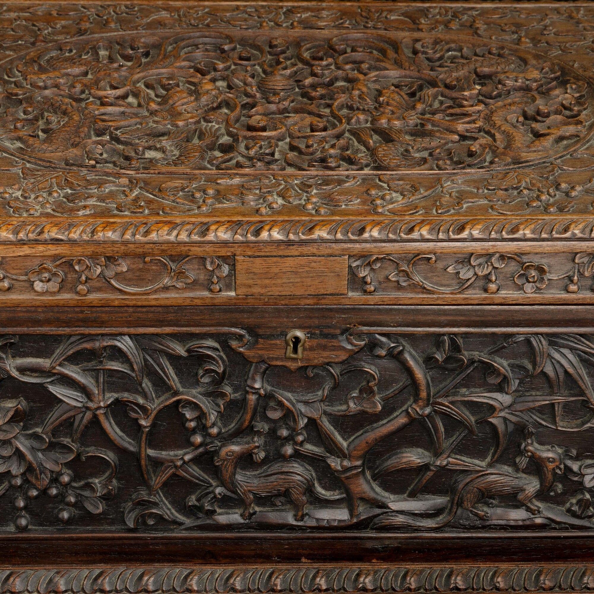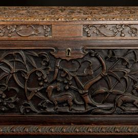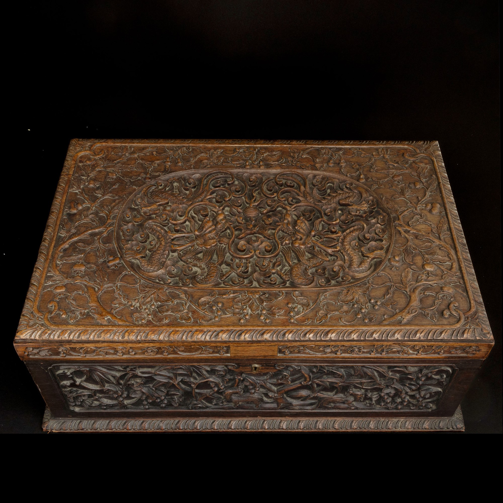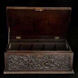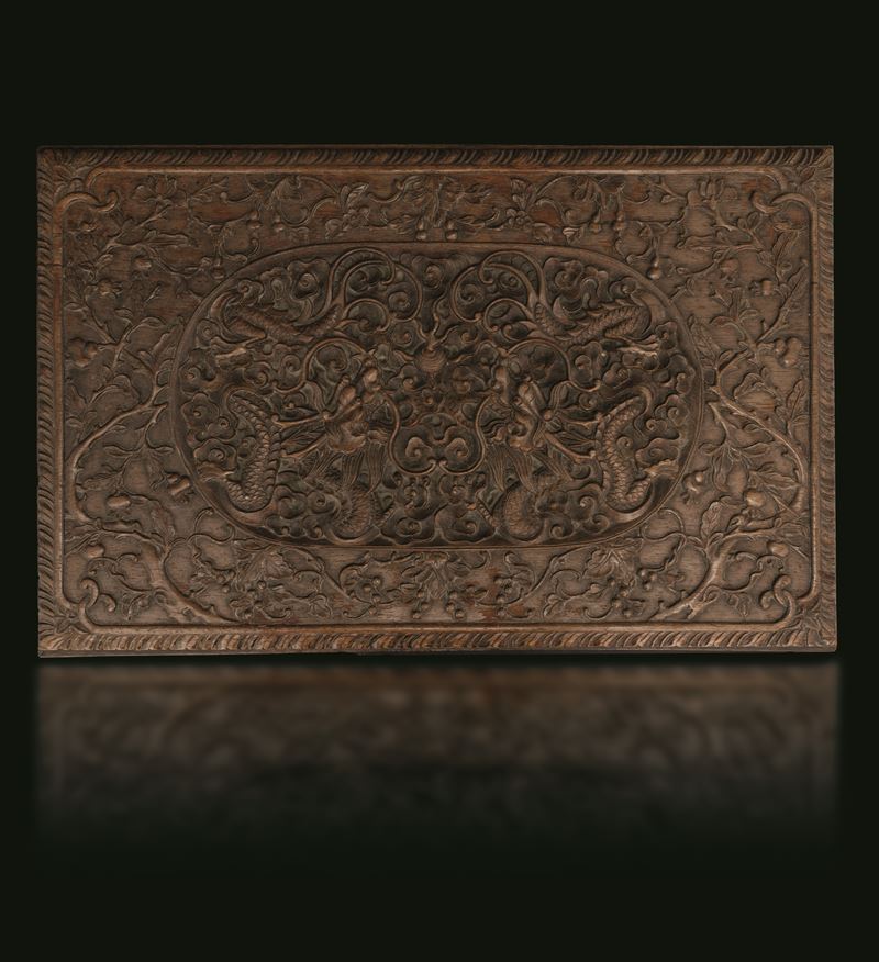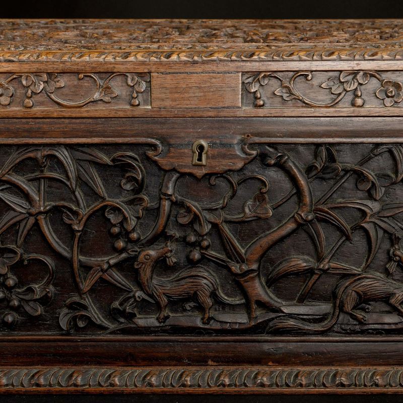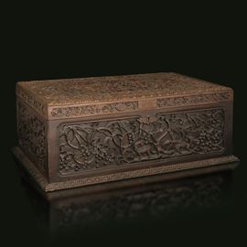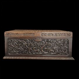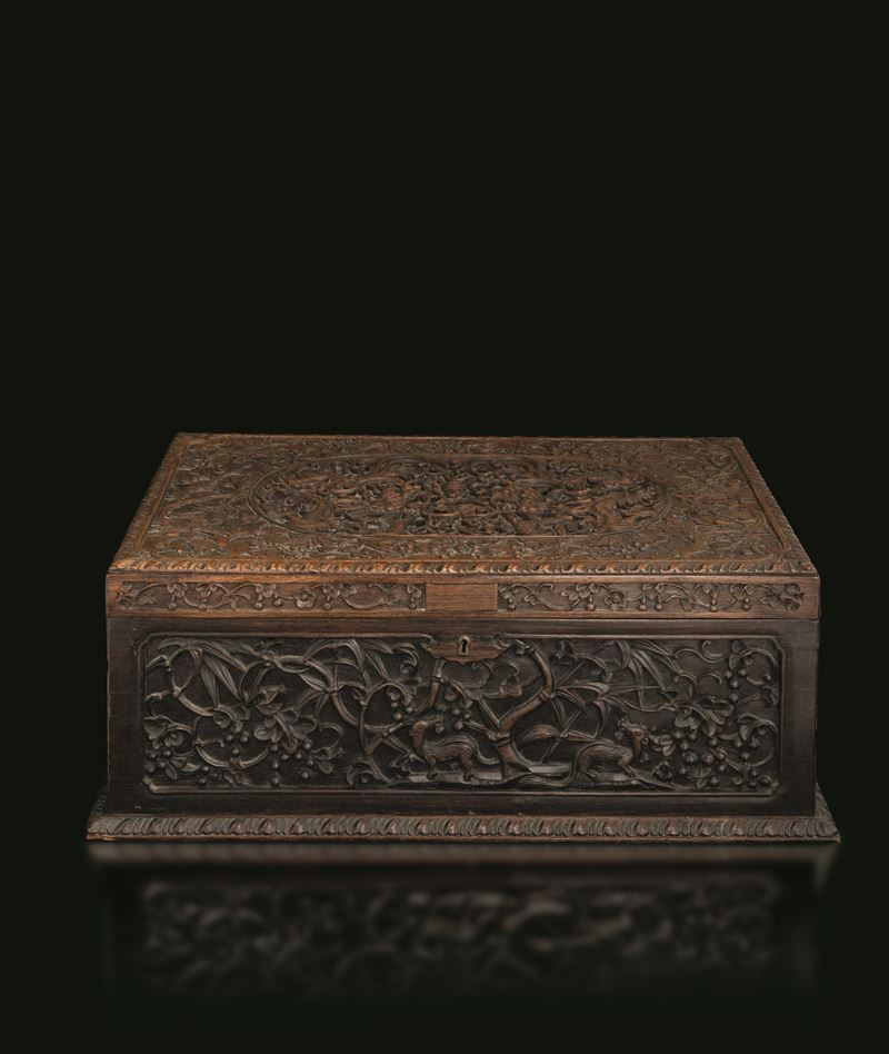 Cofanetto in legno intagliato con motivi naturalistici, Cina, inizio XIX secolo