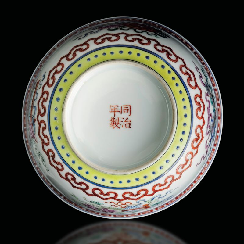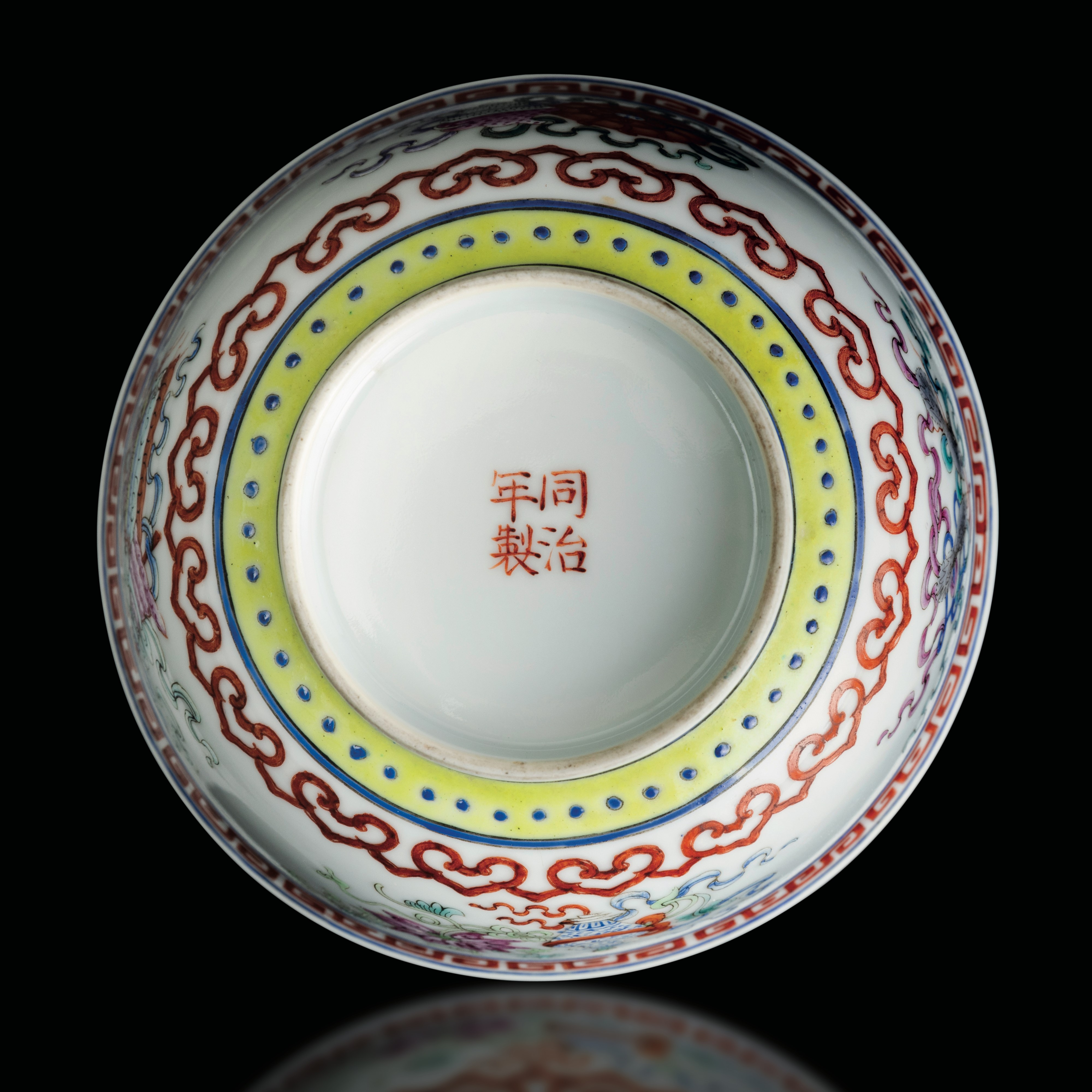 Coppa in porcellana Famiglia Rosa, Cina, Dinastia Qing, marca e del periodo Tongzhi Nianzhi (1862-1874)