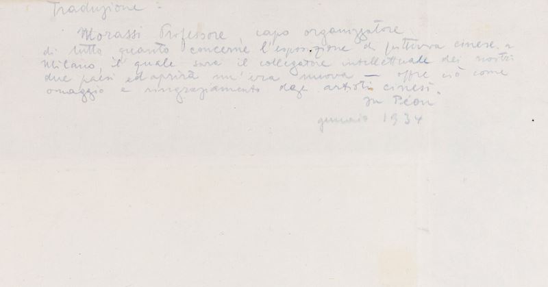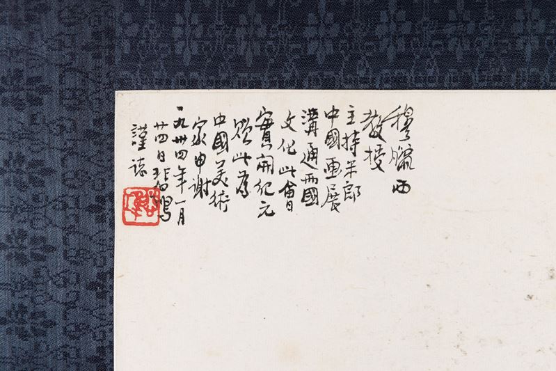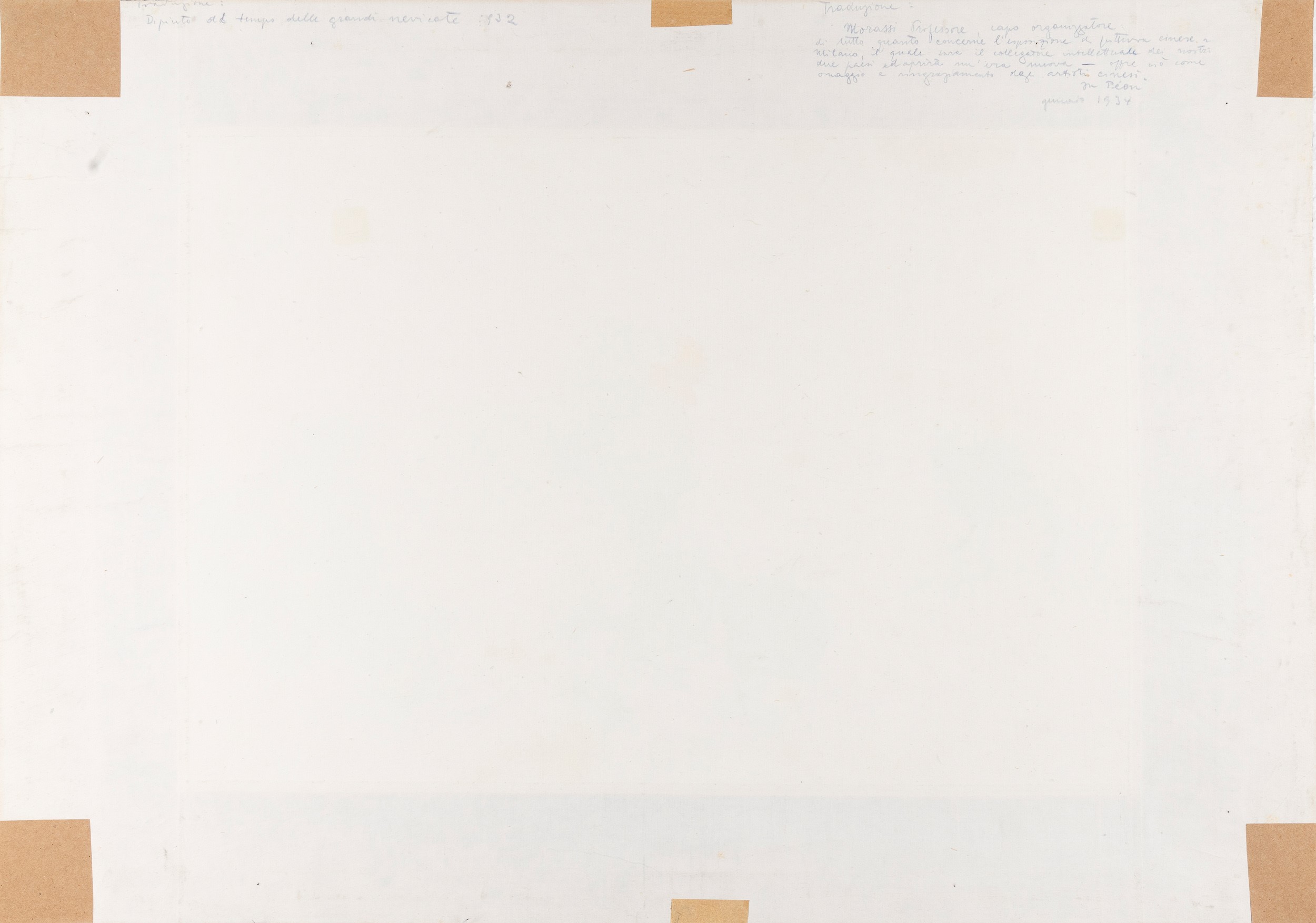 Opera donata da Xu Beihong al Prof. Antonio Morassi, illustre critico e storico dell'arte, come ricordo della collaborazione tra lui ed il Morassi alla realizzazione della prima mostra di pittura cinese in Italia, tenuta a Milano tra Dicembre 1933 e Gennaio 1934 al Palazzo Reale.
