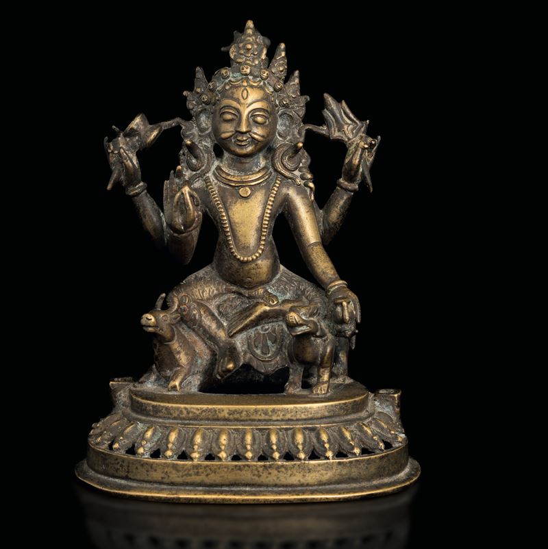 Figura di Bhairava su fiore di loto in bronzo, Cina, Dinastia Qing, epoca Qianlong (1736-1796)