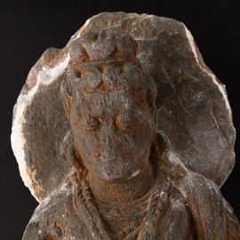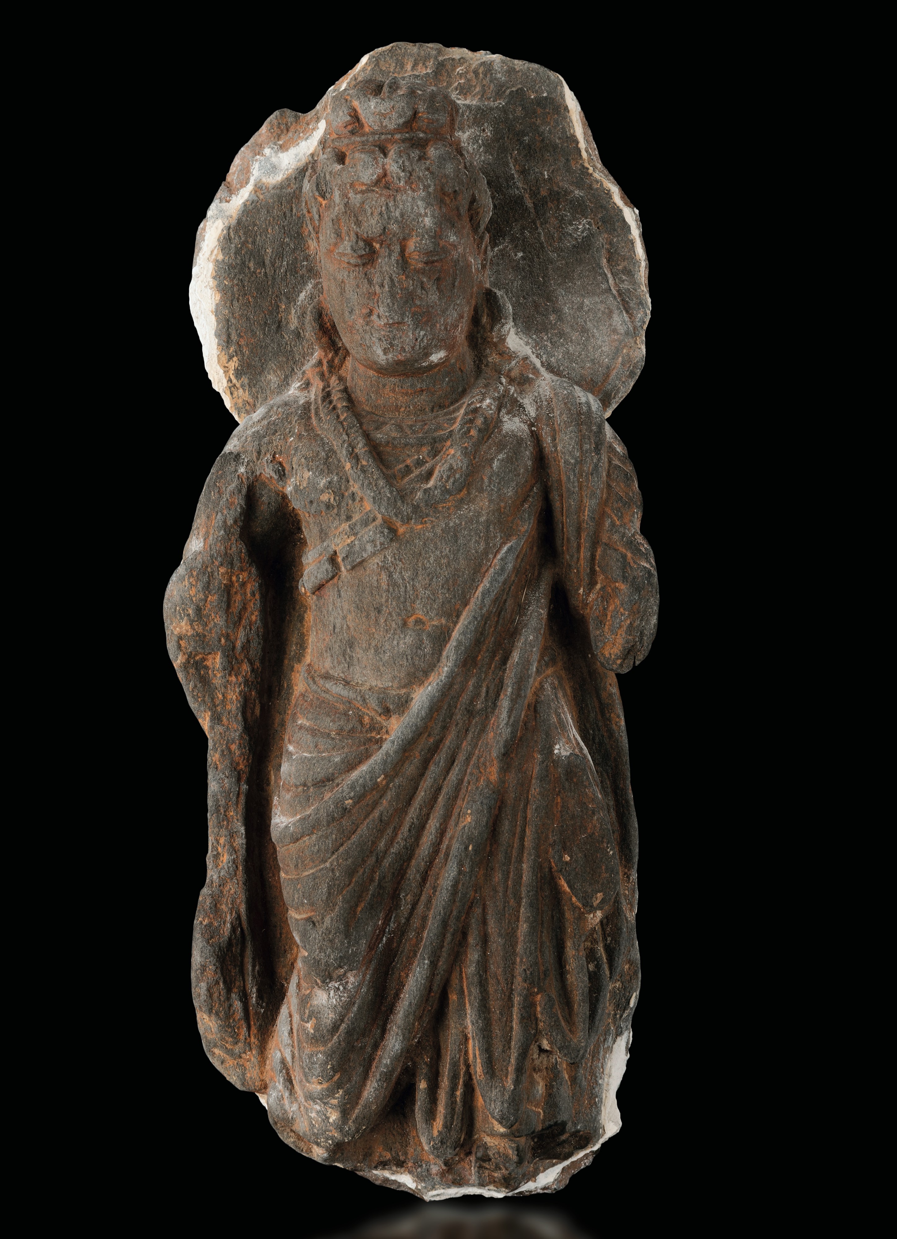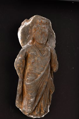 Figura di Buddha scolpita in pietra, Gandhara, IV Secolo