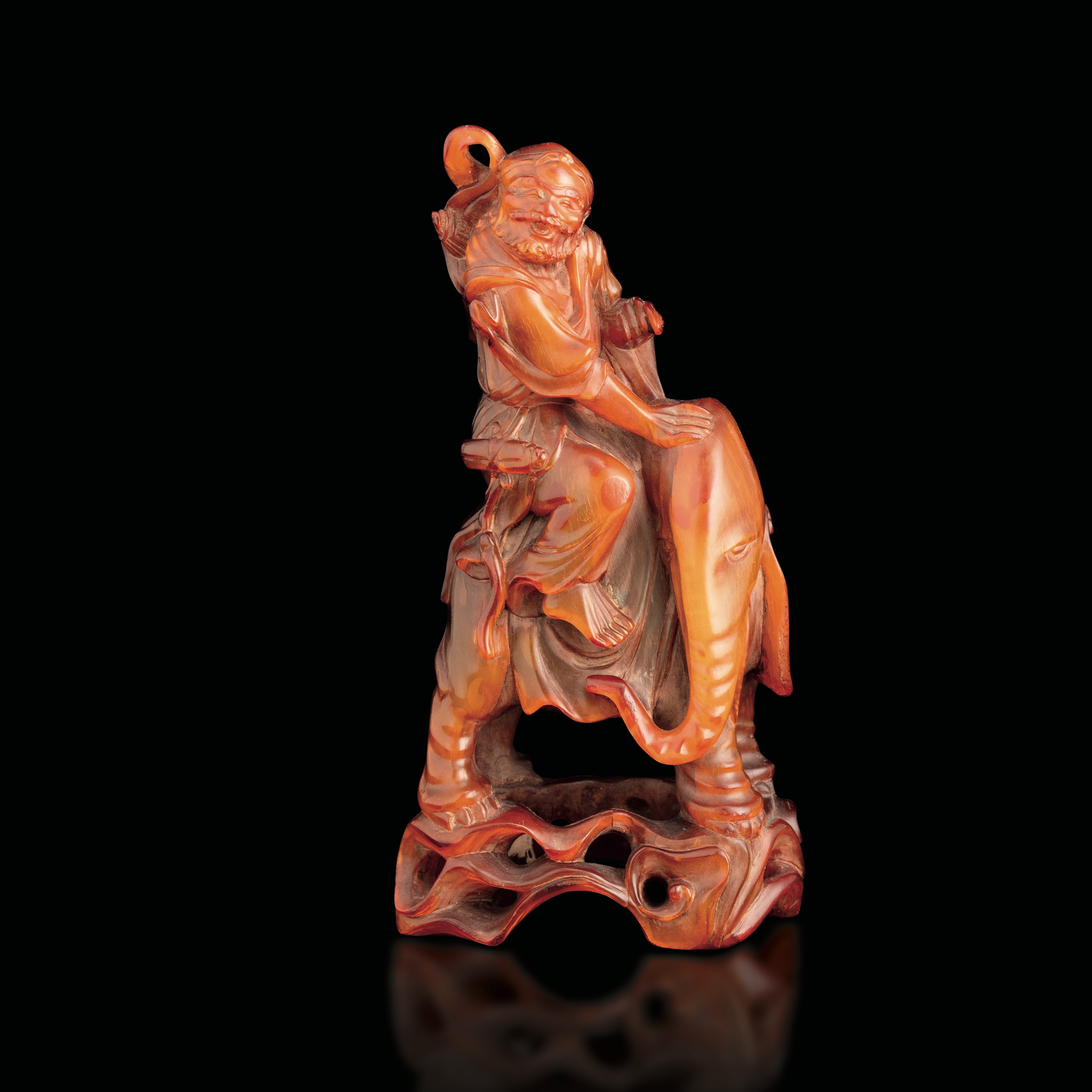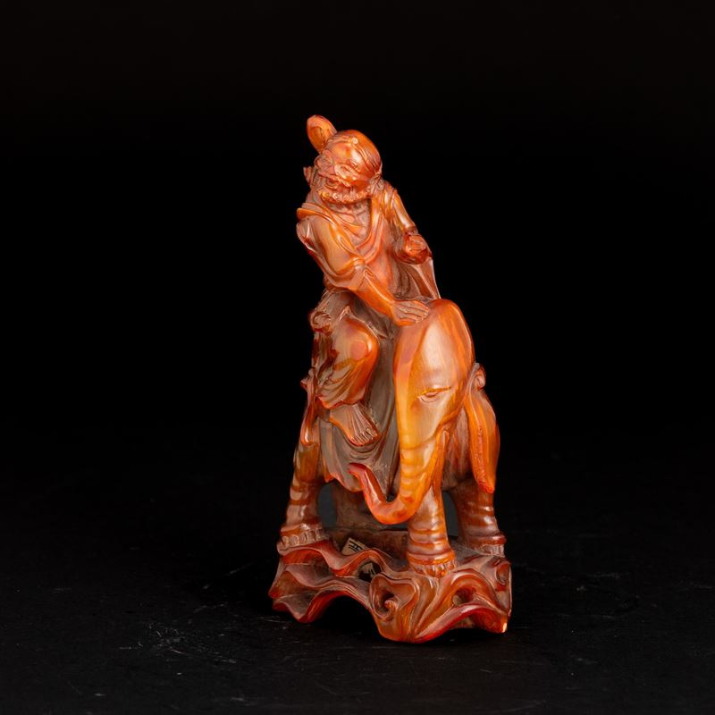 Figura di personaggio ed elefante in ambra, Cina, XIX secolo