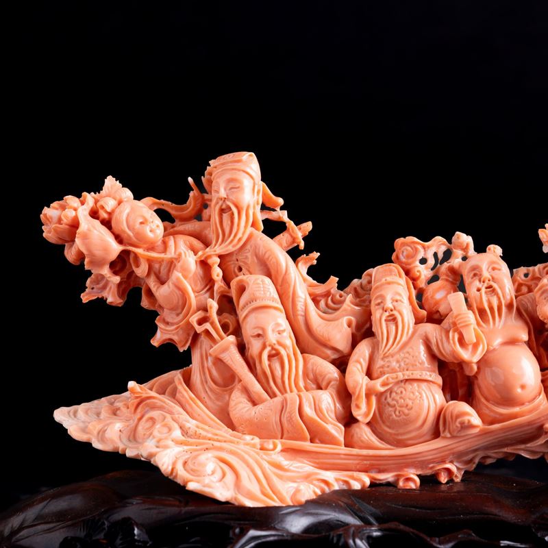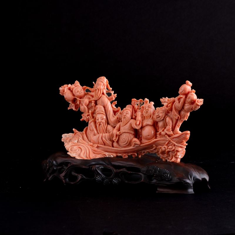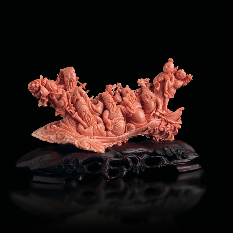 Figura in corallo raffigurante barca con immortali, Cina, XIX secolo
