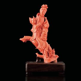 Figura raffigurante Guanyin con bambino scolpita in corallo, Cina, Dinastia Qing, XIX secolo