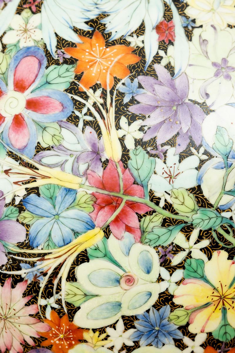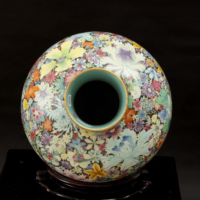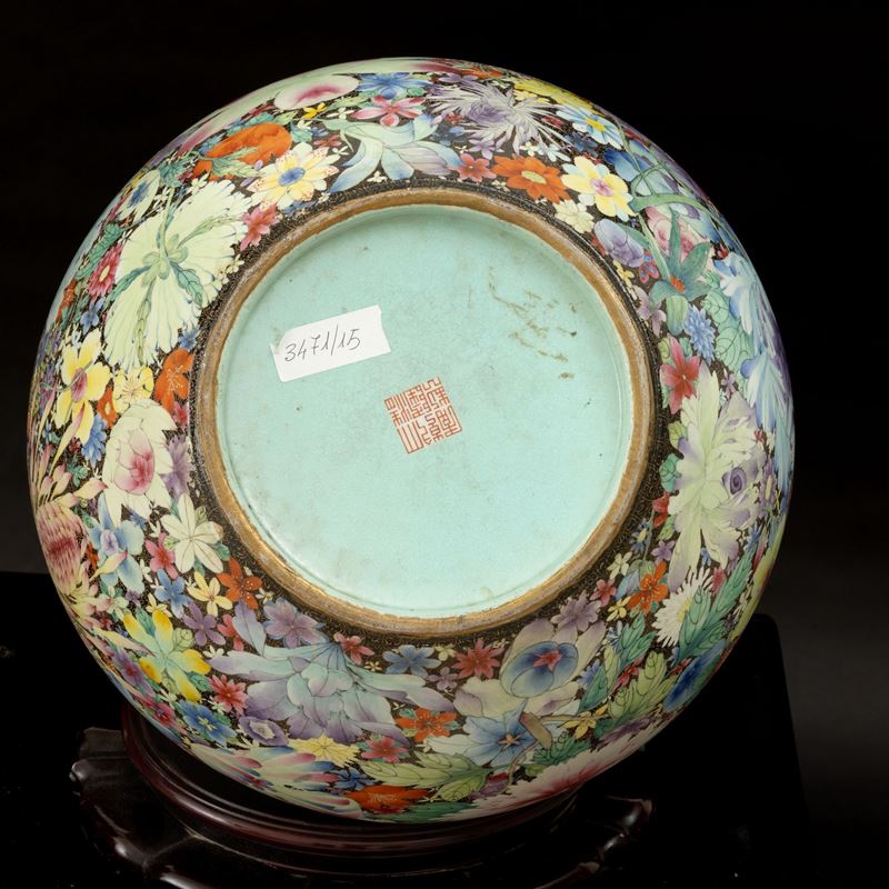 Grande vaso Tianqiuping Famiglia Nera in porcellana con decoro millefleures, Cina, Dinastia Qing, epoca Guangxu (1875-190 [..]