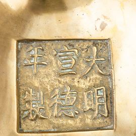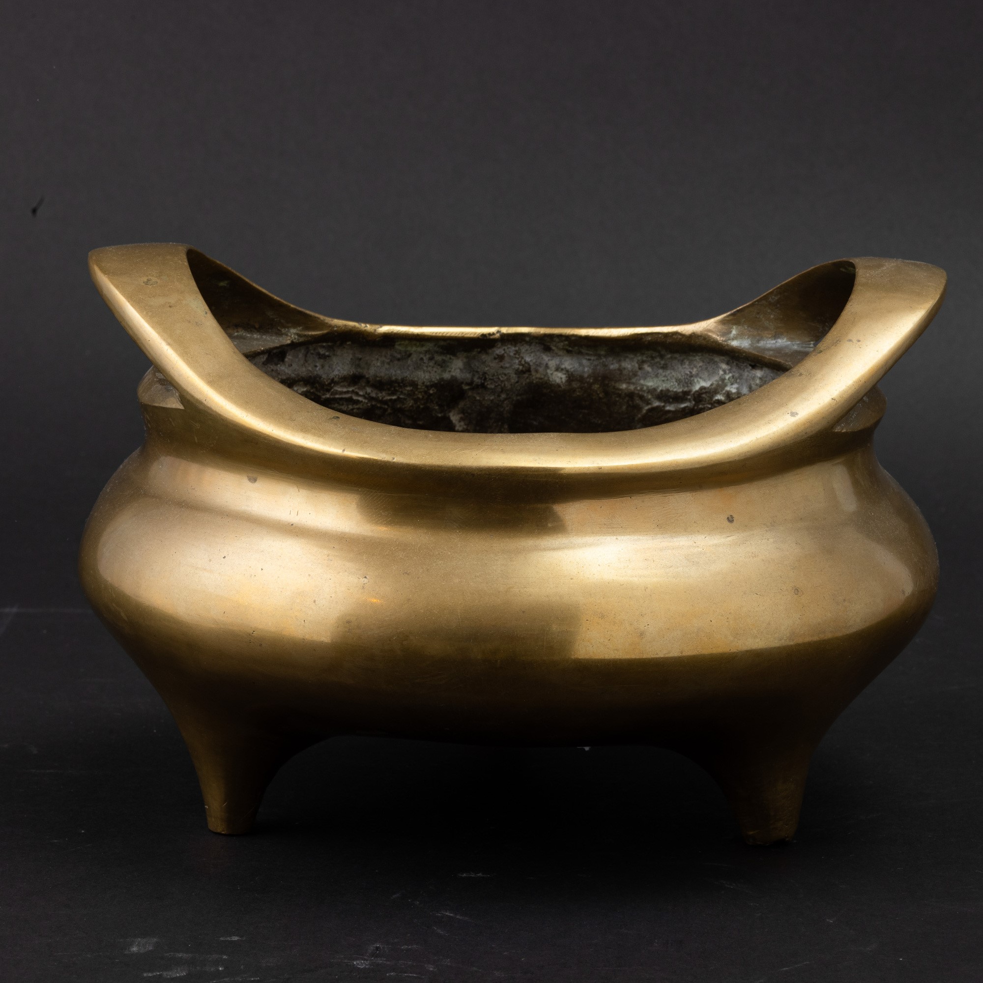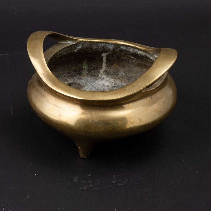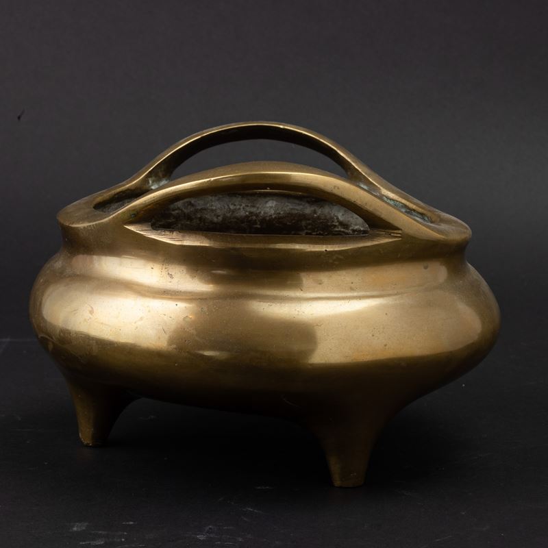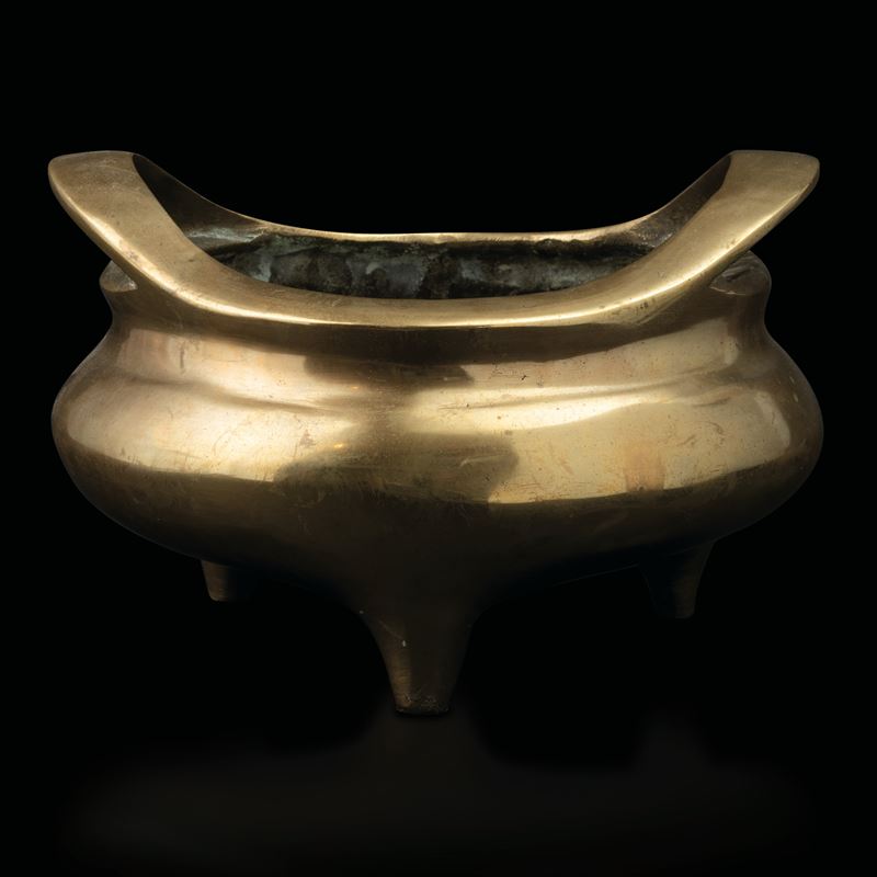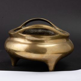Incensiere tripode in bronzo dorato con doppia ansa, Cina, Dinastia Qing, XVIII secolo