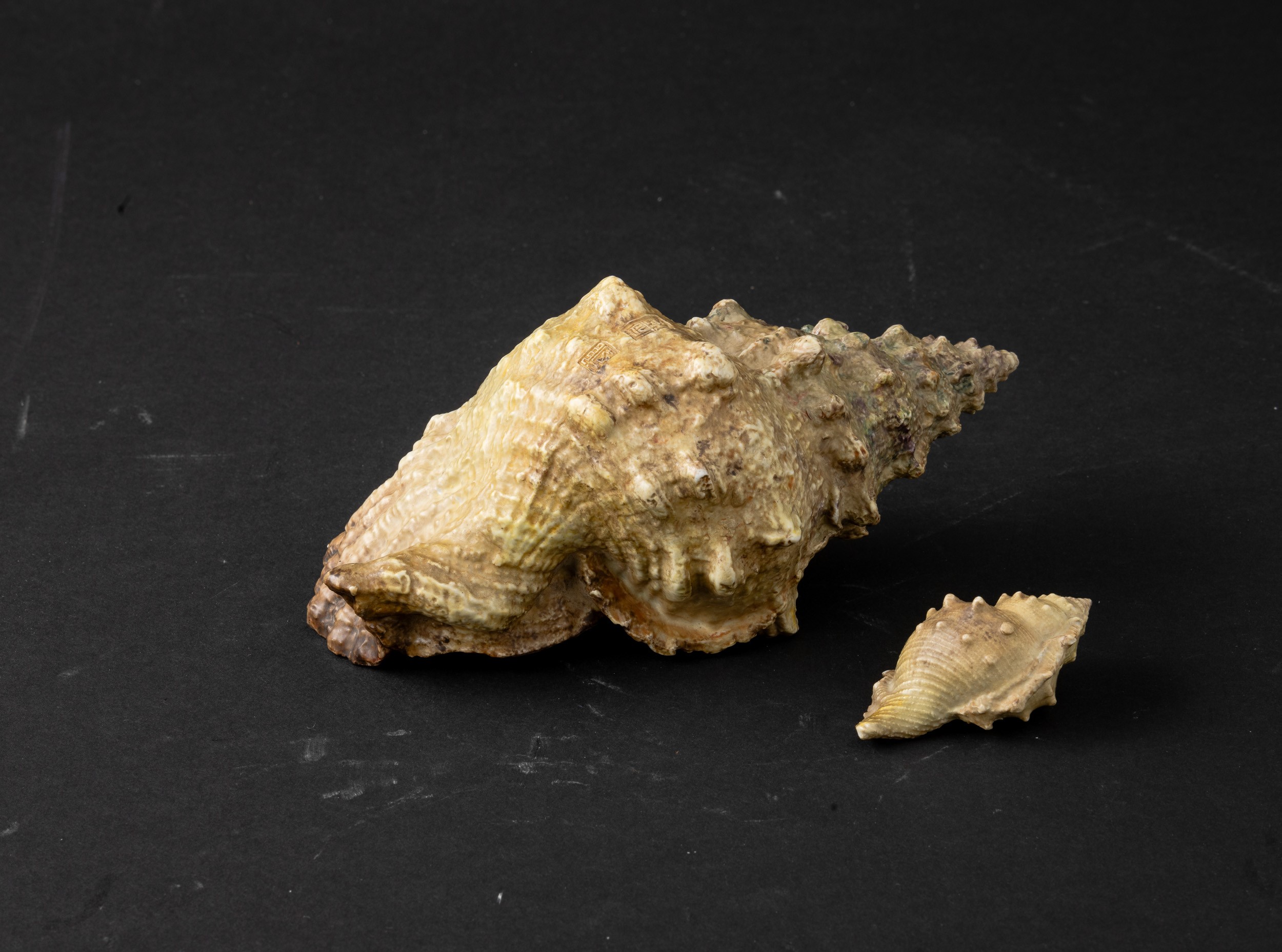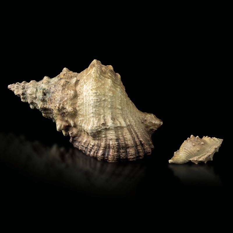 Lotto composto da due rare sculture in porcellana raffiguranti conchiglie, Cina, Dinastia Qing (1644-1912)