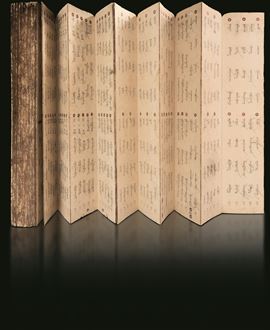 Manoscritti buddhisti in Khmer con disegni di personaggi e divinità, ripiegato su se stesso 51 volte, Cambogia, XIX secol [..]