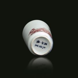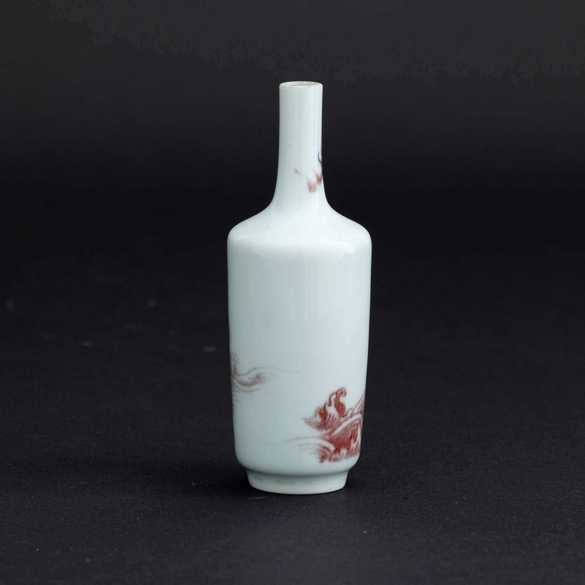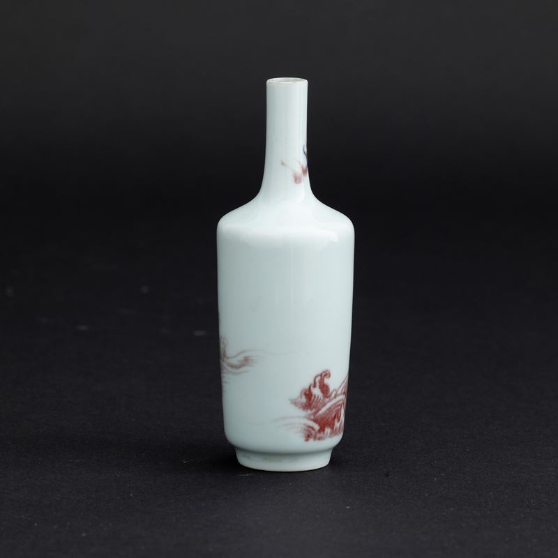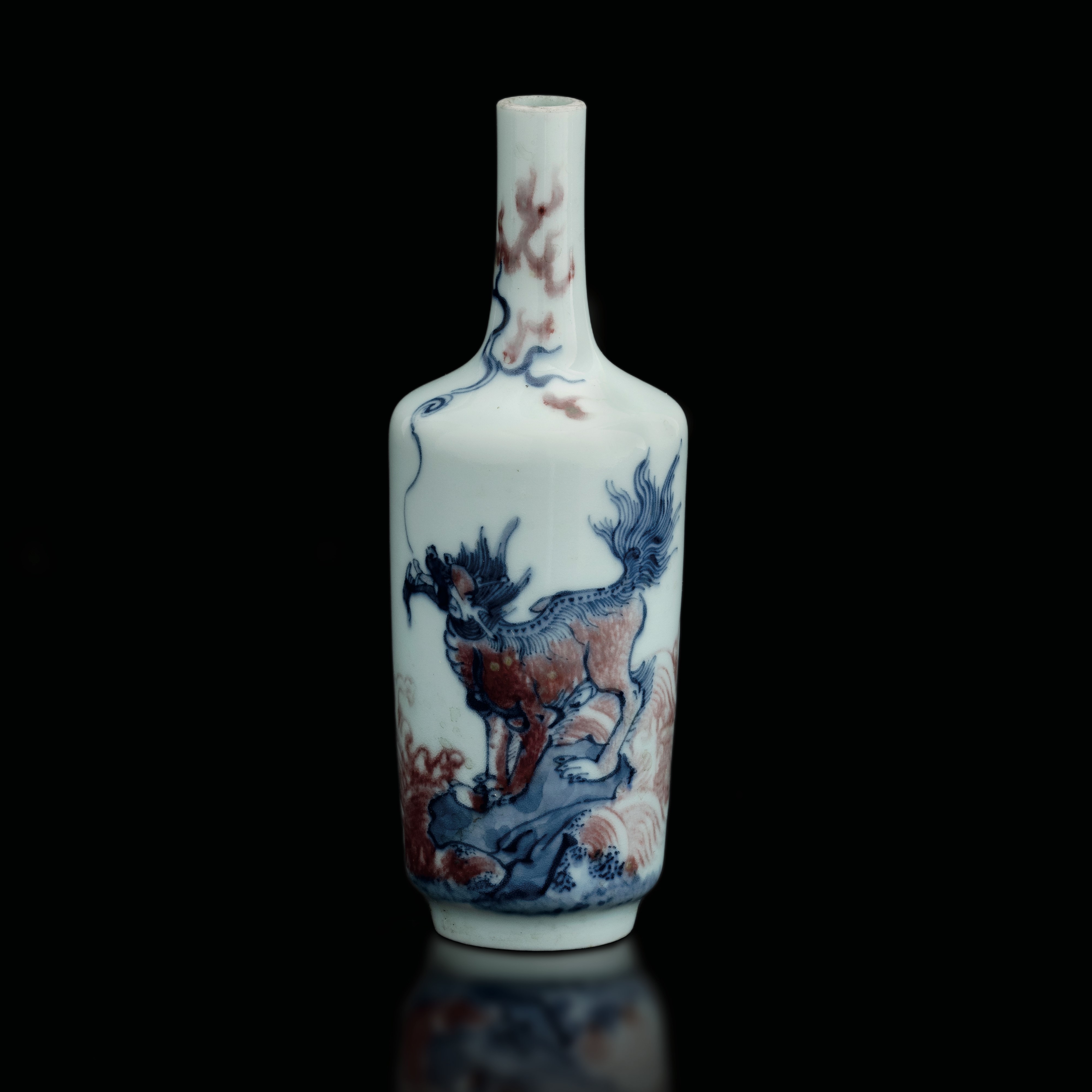 Vaso in porcellana bianca e blu con underglazed red raffigurante Cane di Pho, Cina, Dinastia Qing, epoca Daoguag (1821-18 [..]