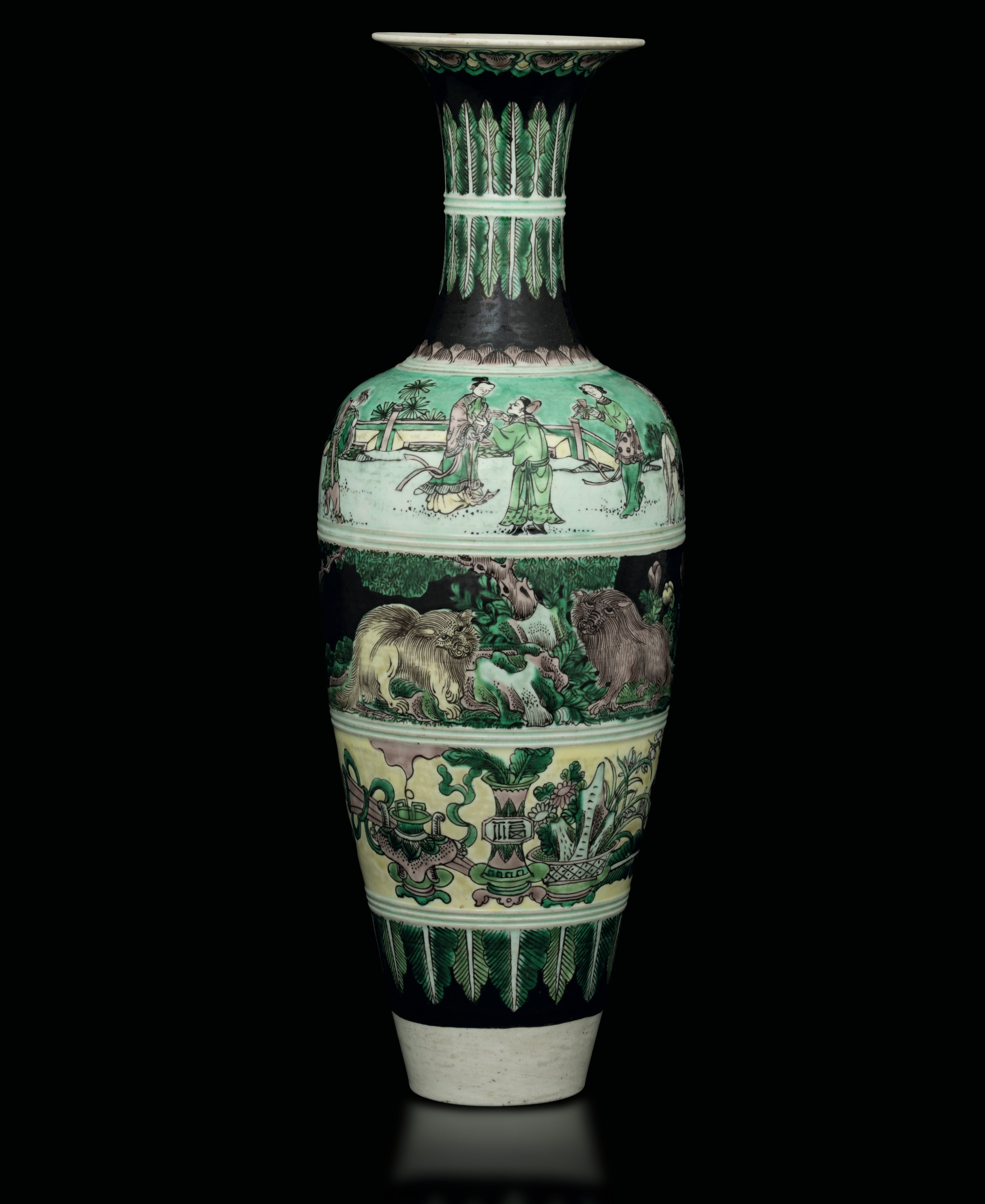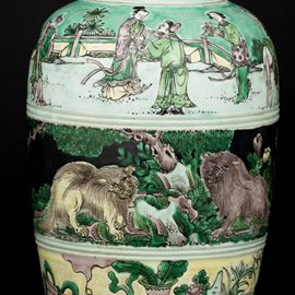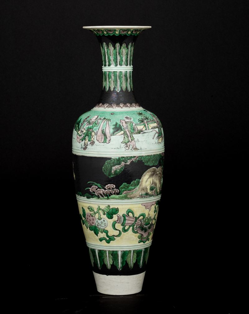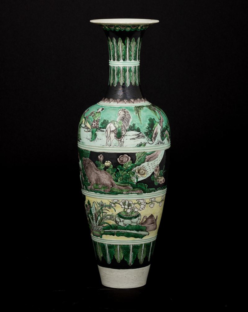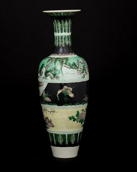 Vaso in porcellana Famiglia noir raffigurante scene vegetali e scene di vita comune, Cina, Dinastia Qing, marchio apocrifo [..]