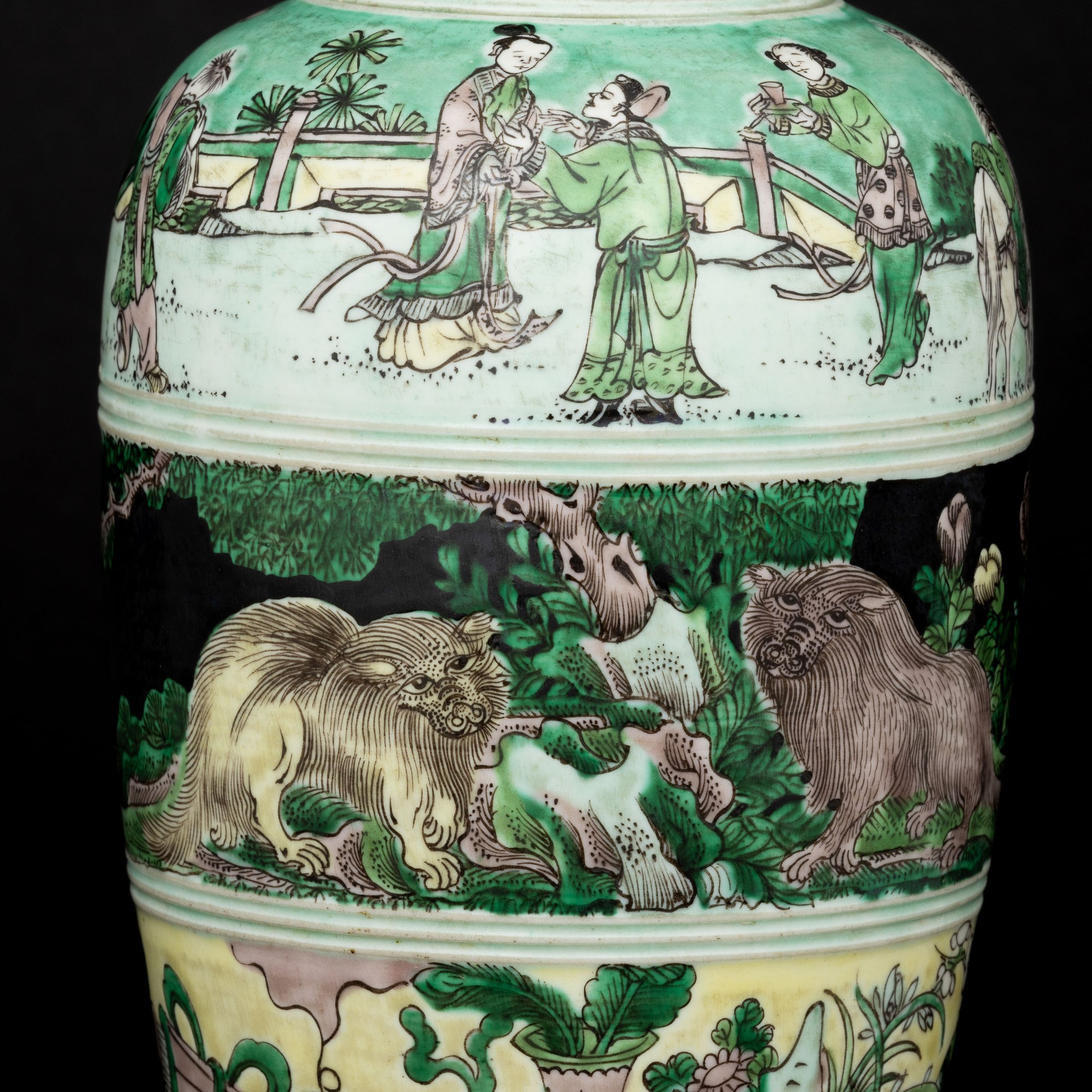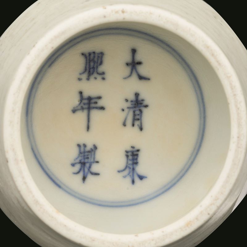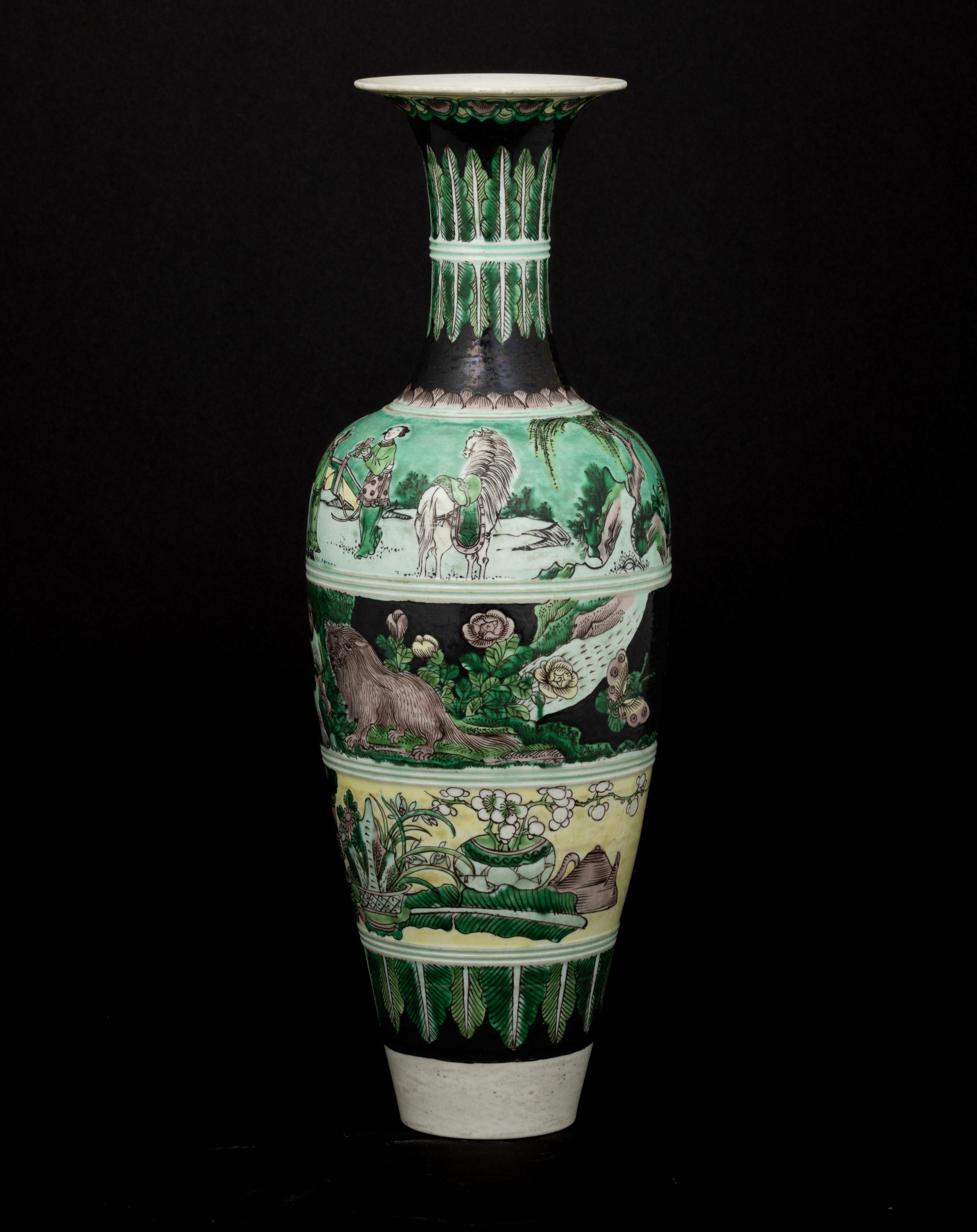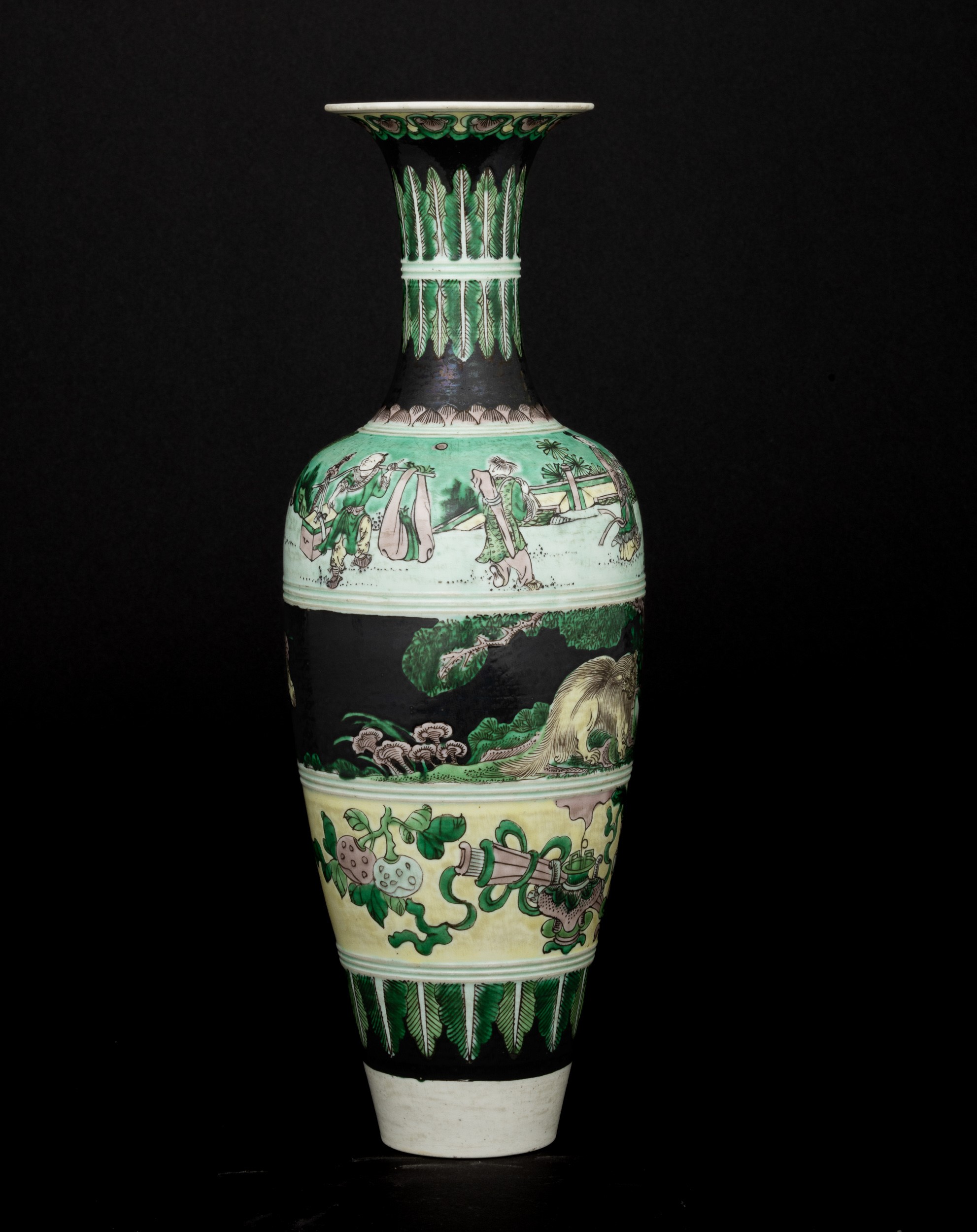 Vaso in porcellana Famiglia noir raffigurante scene vegetali e scene di vita comune, Cina, Dinastia Qing, marchio apocrifo Kangxi, fine XIX secolo