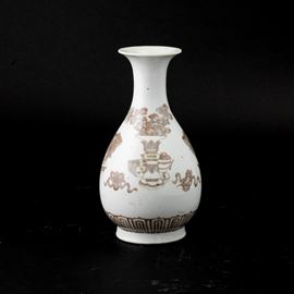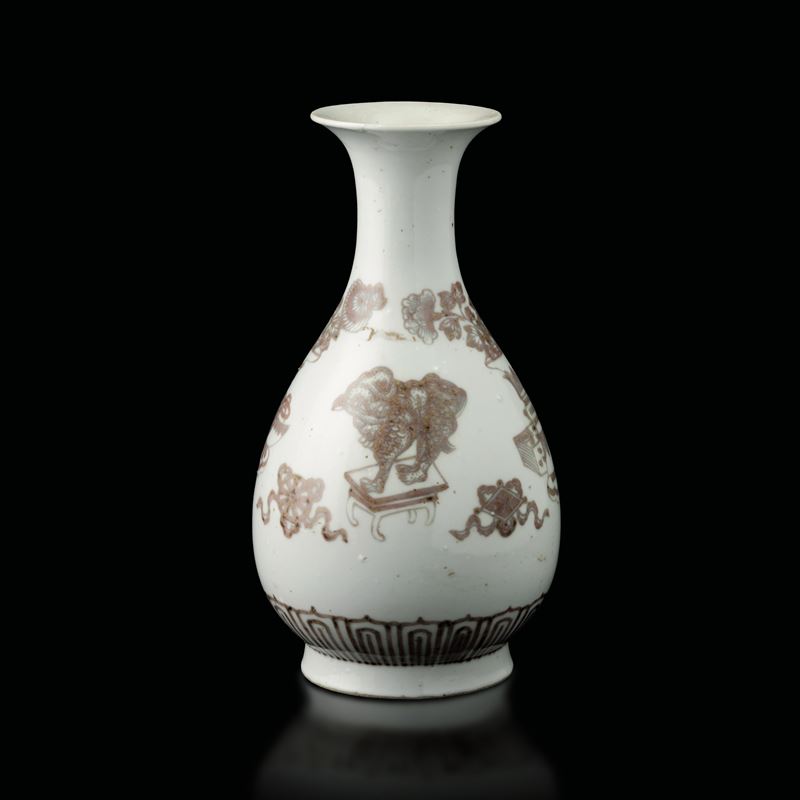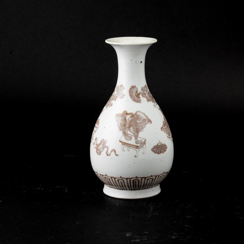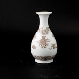 Vaso in porcellana Ming-style underglazed red raffiguranti Cane di Pho e fiori, Cina, Dinastia Qing (1644-1912)